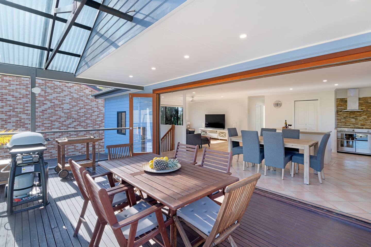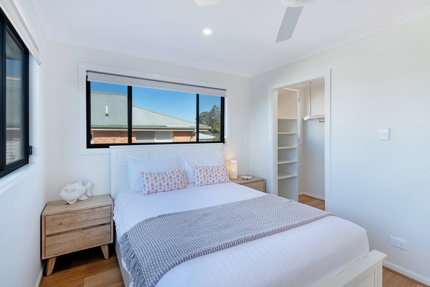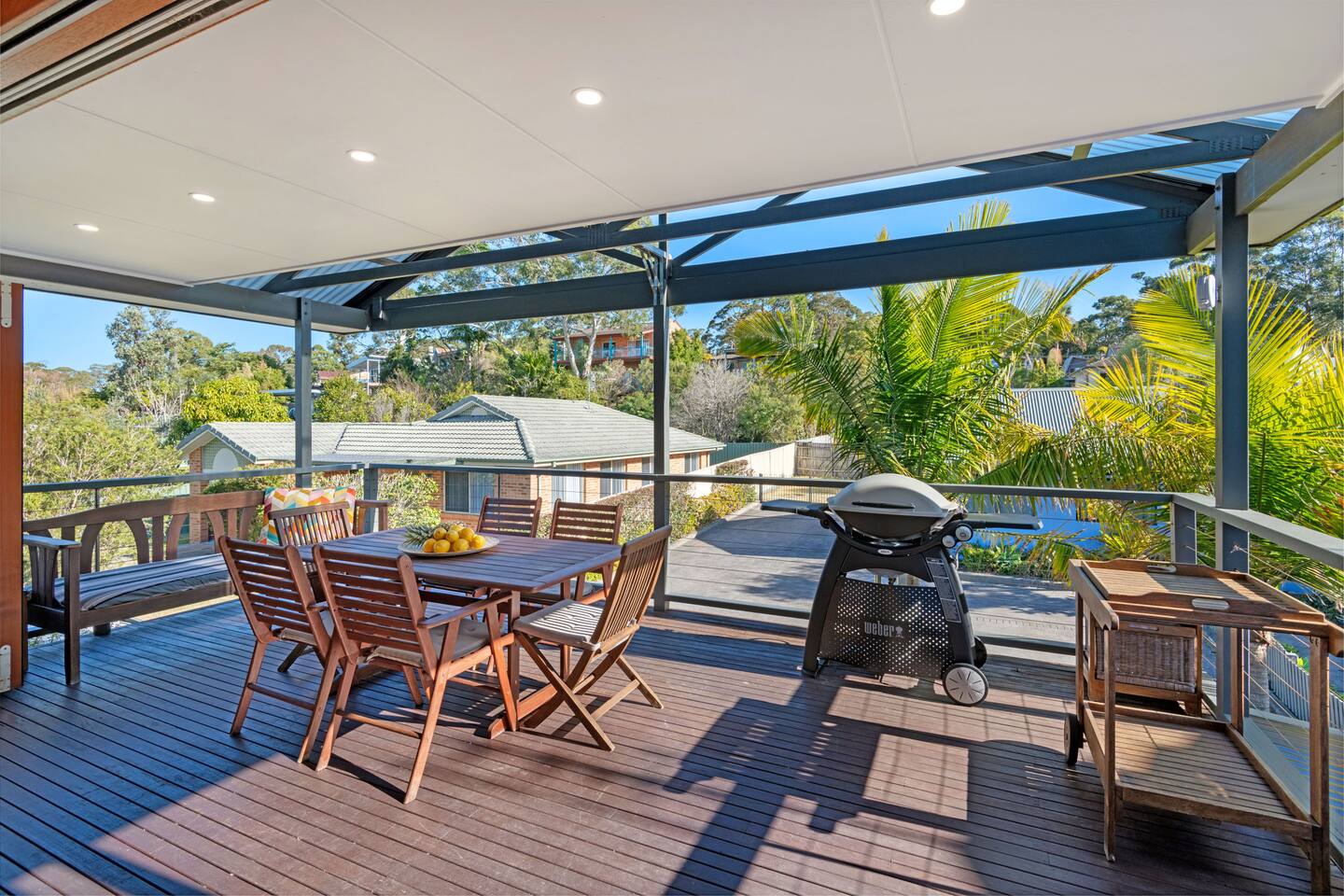 Just a couple of minutes stroll to the best beaches in Jervis Bay & the famous waterside White Sands Walk, you'll find Above by Sanddancers. An elevated oasis with views across the water to Point Perpendicular. Its spacious, open plan living area with concertina doors onto a large deck, complete with dining, lounge & BBQ, offers the best of alfresco living. Whilst the sea breeze, bay views & comfy queen beds promise a good night's sleep in two bedrooms. Just 5 minutes to Huskisson & Hyams Beach.