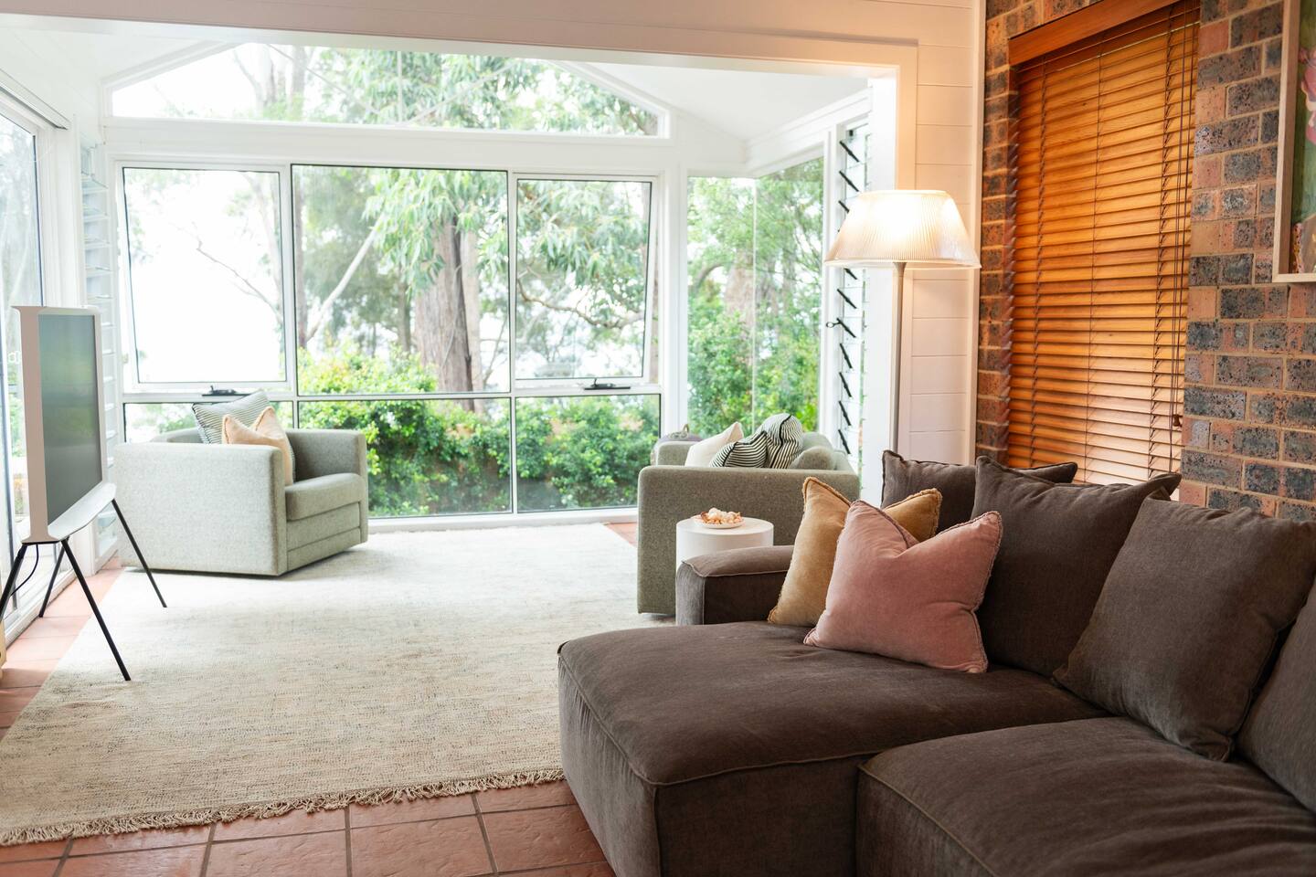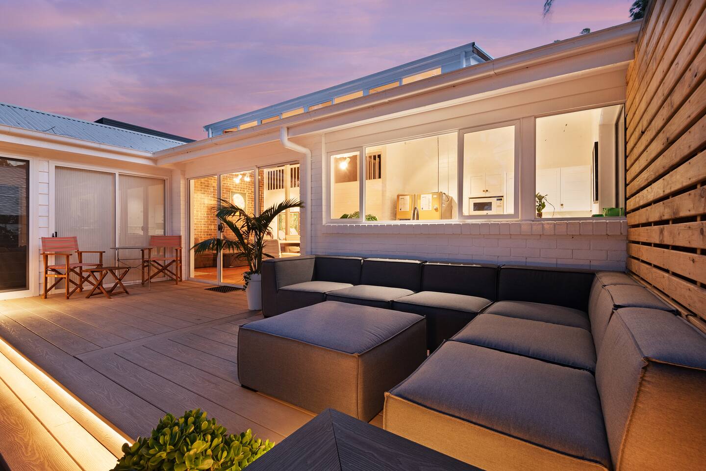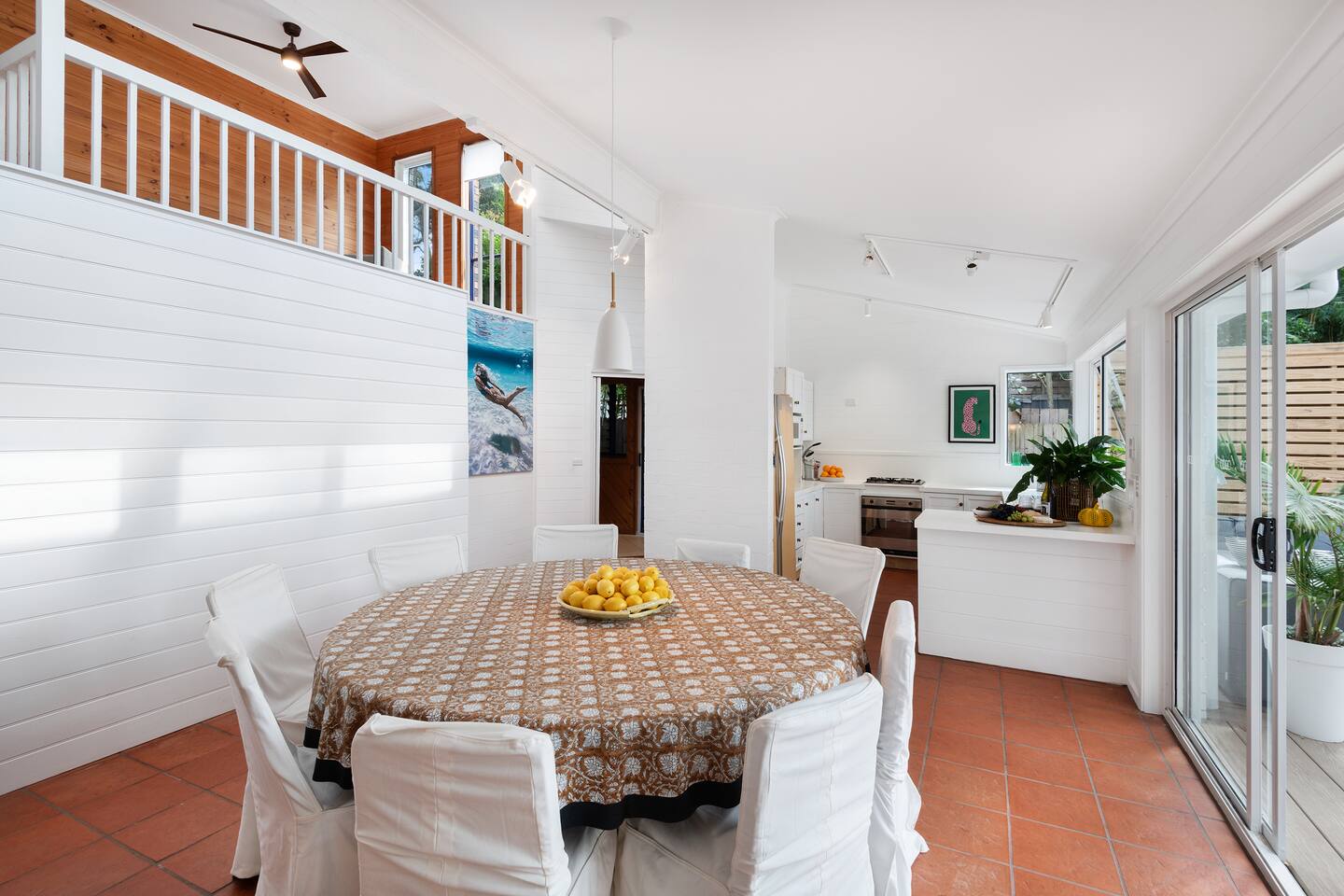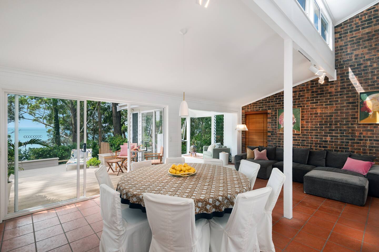 A true beachfront gem, Amethyst boasts some of the best views in Jervis Bay with an incredible outlook over Orion Beach. Enjoy its huge outdoor deck & leafy garden complete with fire pit, extremely comfortable lounge, dining area & more spaces to soak up the sea air & peaceful views. Inside, this charming retro house is brimming with character. It has been curated with creative flair, celebrating its 70s roots yet bringing a modern, comfortable & artistic feel to this relaxed 5 bedroom home