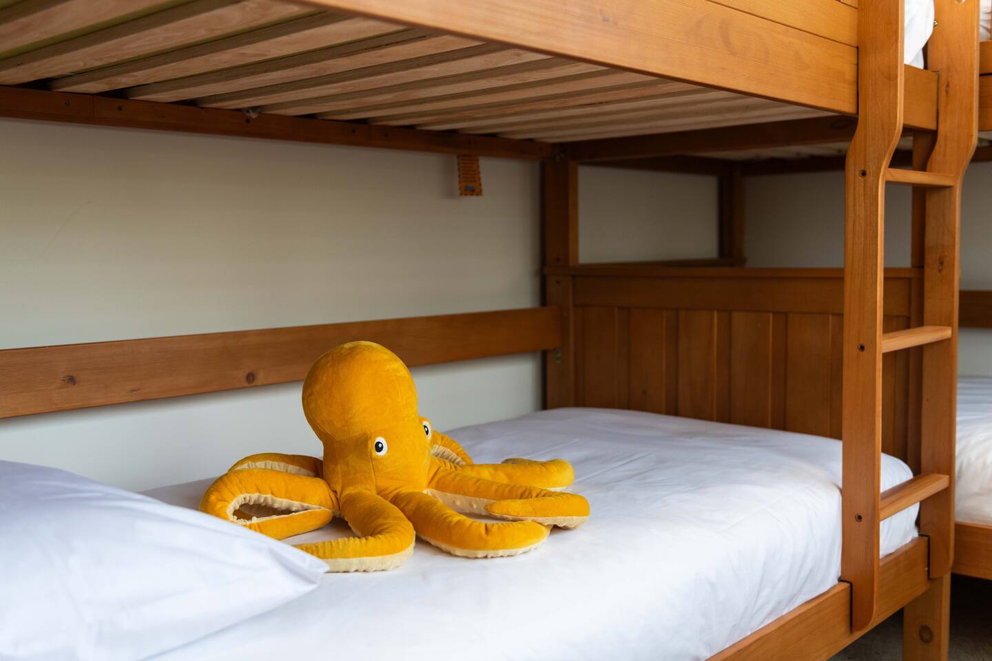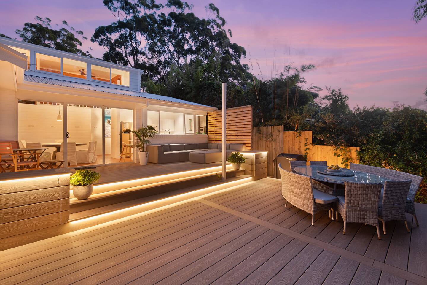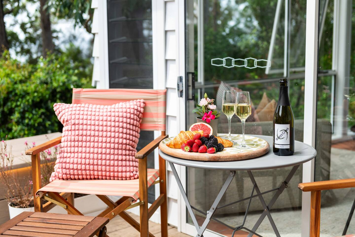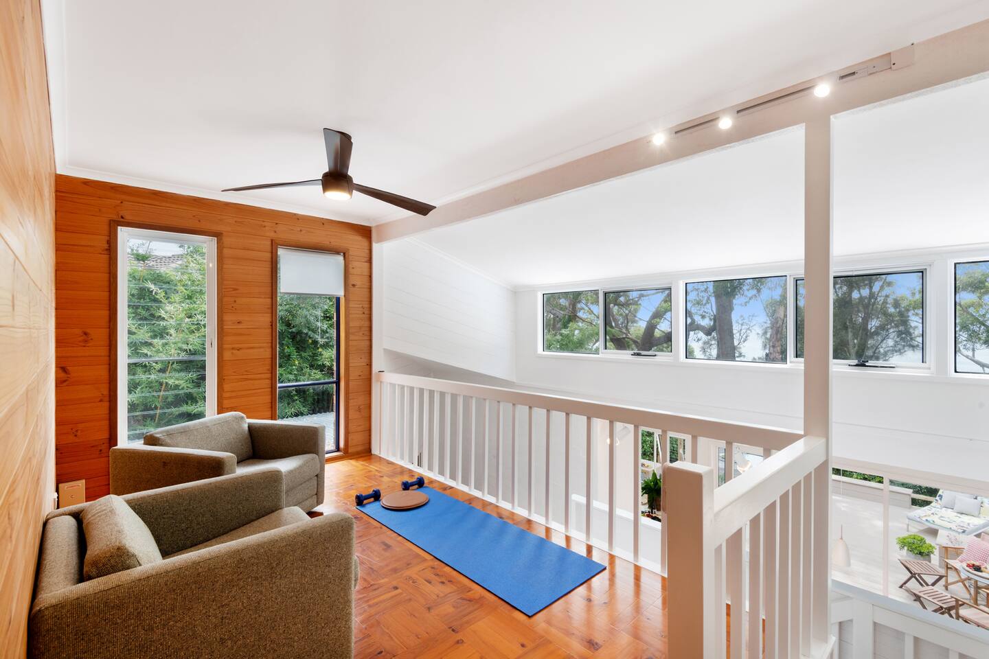 A true beachfront gem, Amethyst boasts some of the best views in Jervis Bay with an incredible outlook over Orion Beach. Enjoy its huge outdoor deck & leafy garden complete with fire pit, extremely comfortable lounge, dining area & more spaces to soak up the sea air & peaceful views. Inside, this charming retro house is brimming with character. It has been curated with creative flair, celebrating its 70s roots yet bringing a modern, comfortable & artistic feel to this relaxed 5 bedroom home