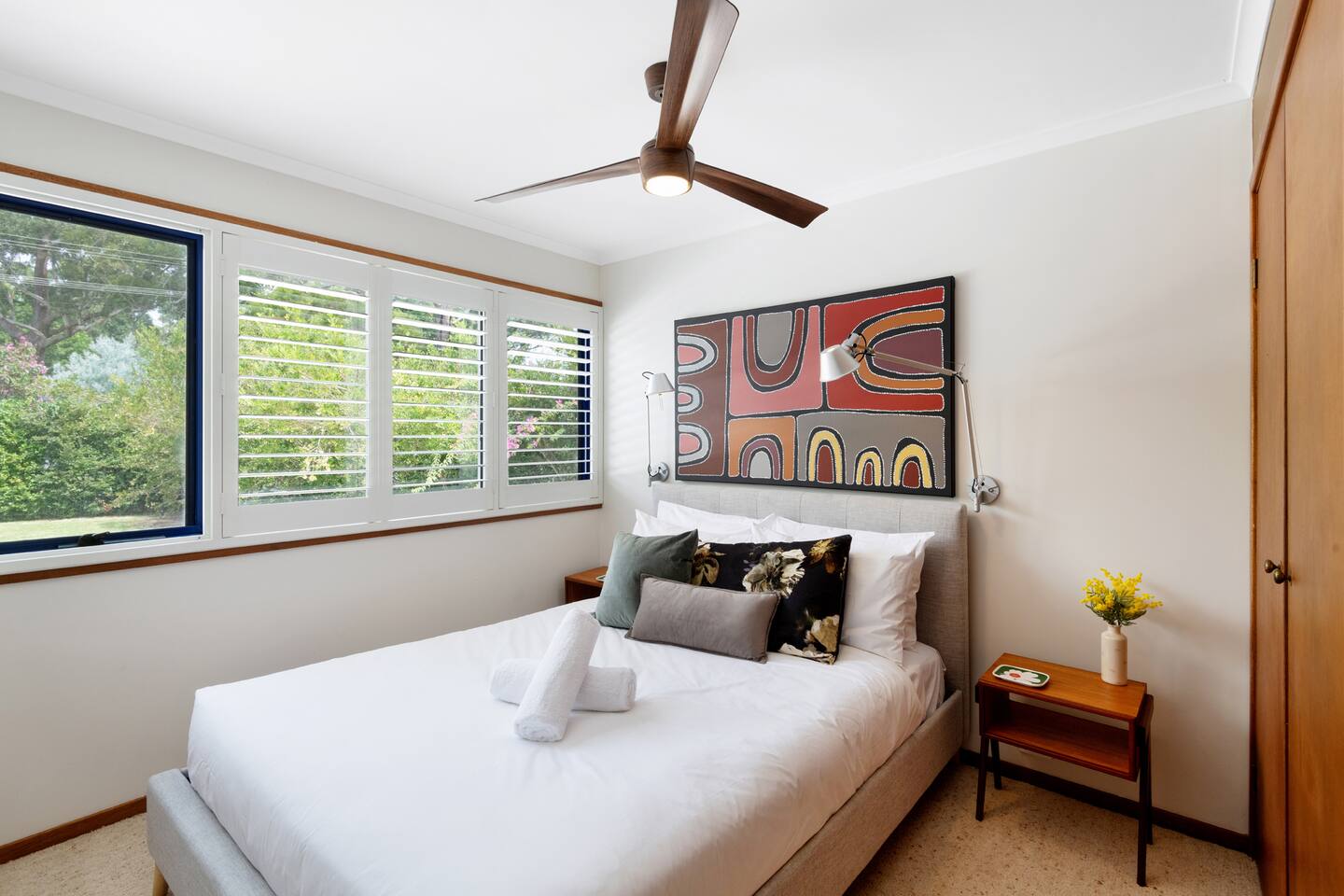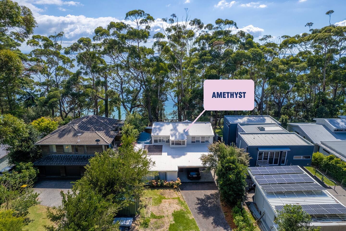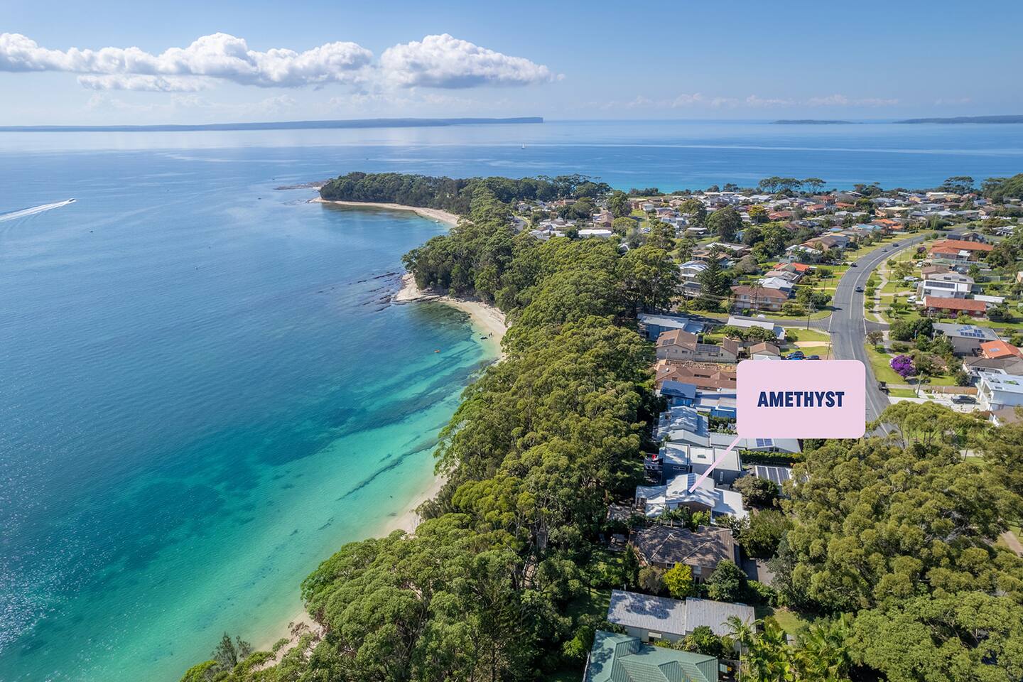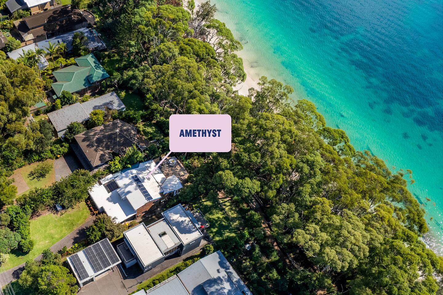 Step foot inside Amethyst, managed by The FAM Holiday Property Management in Jervis Bay and instantly feel relaxed, with gentle waves lapping just meters from you, breathtaking water views and lush native trees all around, this is one of the most desirable properties in Jervis Bay. Absolute beachfront on peaceful Orions Beach - a hidden gem amongst the bay's multiple white sandy beaches and crystal clear turquoise waters. Look out for local wildlife with dolphins in the shallows and echidnas in the bush amongst many more. The house itself has been modernised with a focus on comfort and a strong creative flair. Modern refreshes and furnishings have been carefully chosen alongside spectacular artworks to celebrate the home's 70s roots. The living space boasts incredible views to Jervis Bay but the real star of Amethyst is the huge back deck overlooking the water. Lounge on the extremely comfortable outdoor lounge, cook up a storm on the BBQ and enjoy the large dining space before lighting the fire pit and watching Jervis Bay's night sky light up. All this right on Orion Beach and just a few minutes from Vincentia shops, Huskisson, Hyams Beach and the Booderee National Park. * Best bits of Amethyst * - Absolute beachfront on Orion Beach with incredible water views - Incredible back deck - an entertainer's dream with space for everyone to relax, spaces to cook, eat and rest. Hot outdoor shower - Refreshed property with a focus on comfort, brand new lounges, beds, linen and towels - Beautifully curated to celebrate the property's 70s roots - stunning artworks and thoughtful styling throughout - Large open plan living area with incredible water views, additional mezzanine lounge nook - Refreshed original kitchen, fully equipped with coffee machine (Vittoria pods), microwave, kettle, toaster and dishwasher - A relaxed feel, a house you can be at home in with a new meets, original, rustic feel - Central to everything Jervis Bay has to offer, with quick access to the walking track that runs from Hyams Beach to Huskisson, local shops just minutes away, Huskisson's cafes, shops, restaurants and breweries as well as The Booderee National Park a short drive - Tea, coffee, basic pantry supplies, natural cleaning products & luxury Two Good Co toiletries provided. Local barista coffee voucher, handmade chocolates and Silos Estate wine for every guest - All linen and bath towels provided - The very insider local tips shared in our in house magazine * Need to know * - Sleeps 12 in 5 bedrooms. 4 queen rooms and one with 2 sets of single bunks. Please note one queen room is on an open mezzanine level. Curtains are provided for privacy. We prefer a max of 10 adults but larger groups just need to send us a request and discuss their group with us - Please note the mezzanine bedroom and additional lounge area on this area are not suitable for young children or those with limited mobility. Guests are responsible for their own safety and care must be taken - 3 original bathrooms, one of which is in the laundry and one ensuite to the master - Internal laundry with washer and dryer - Ceiling fans - Pets welcome upon request and with prior host reviews, additional $150 fee added to booking. Strict rules about pet behaviour including no pets on furniture or upstairs on carpet. All mess to be cleaned by owners. Any pet dirt/damage must be paid for