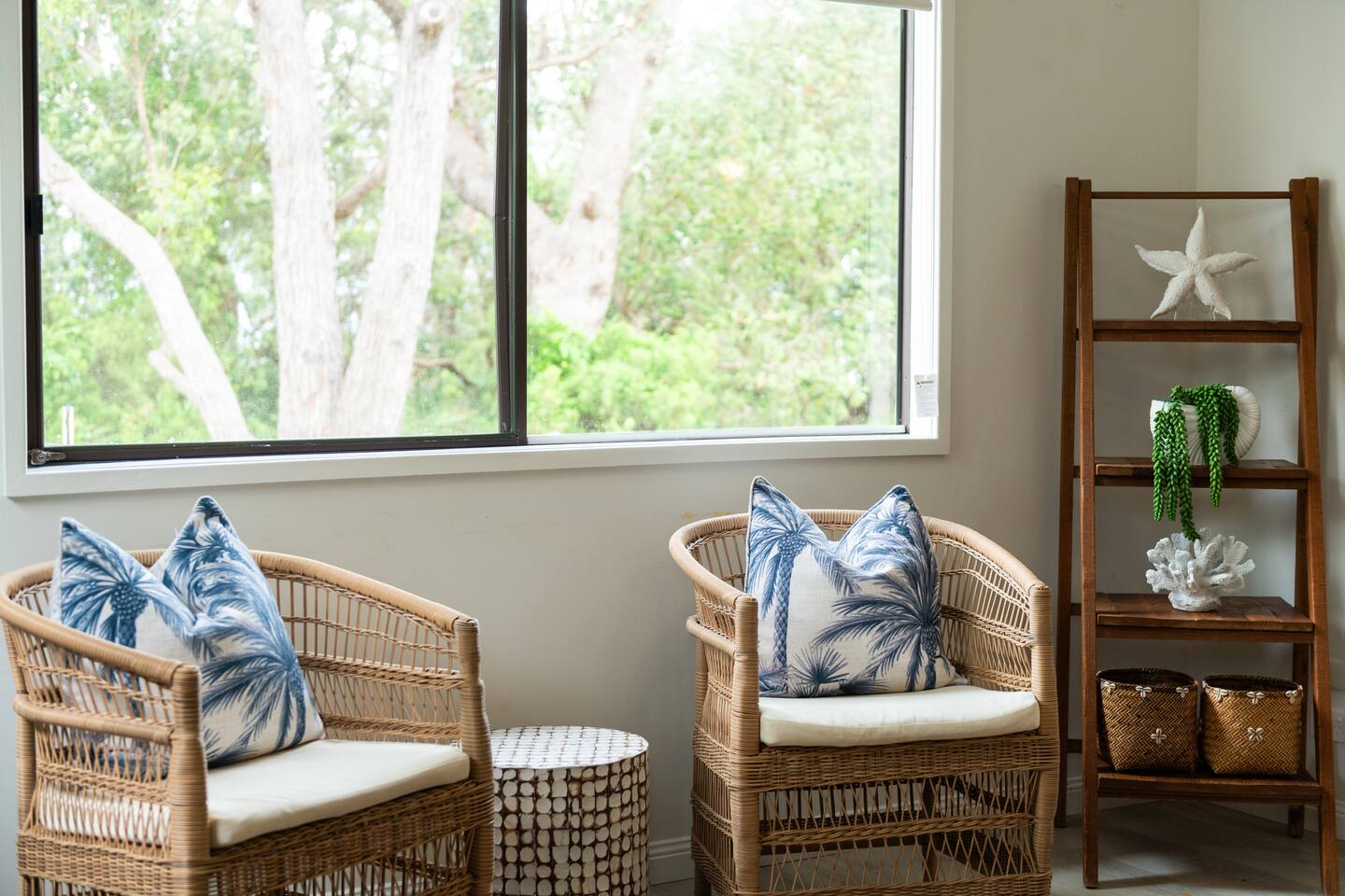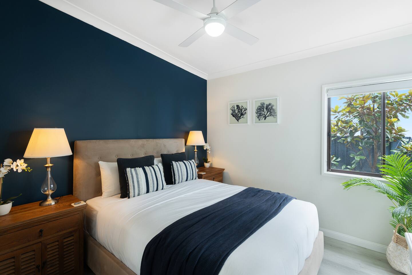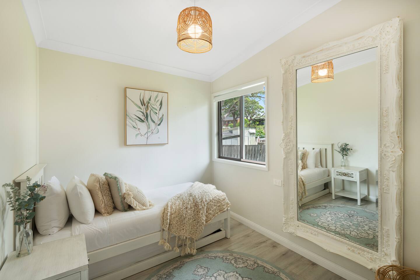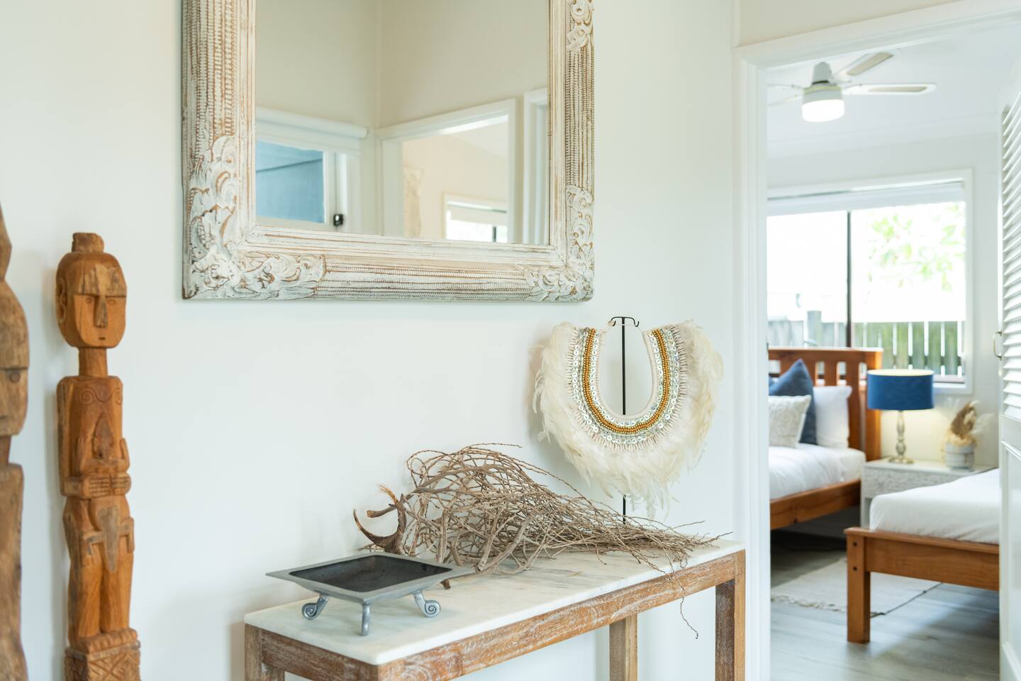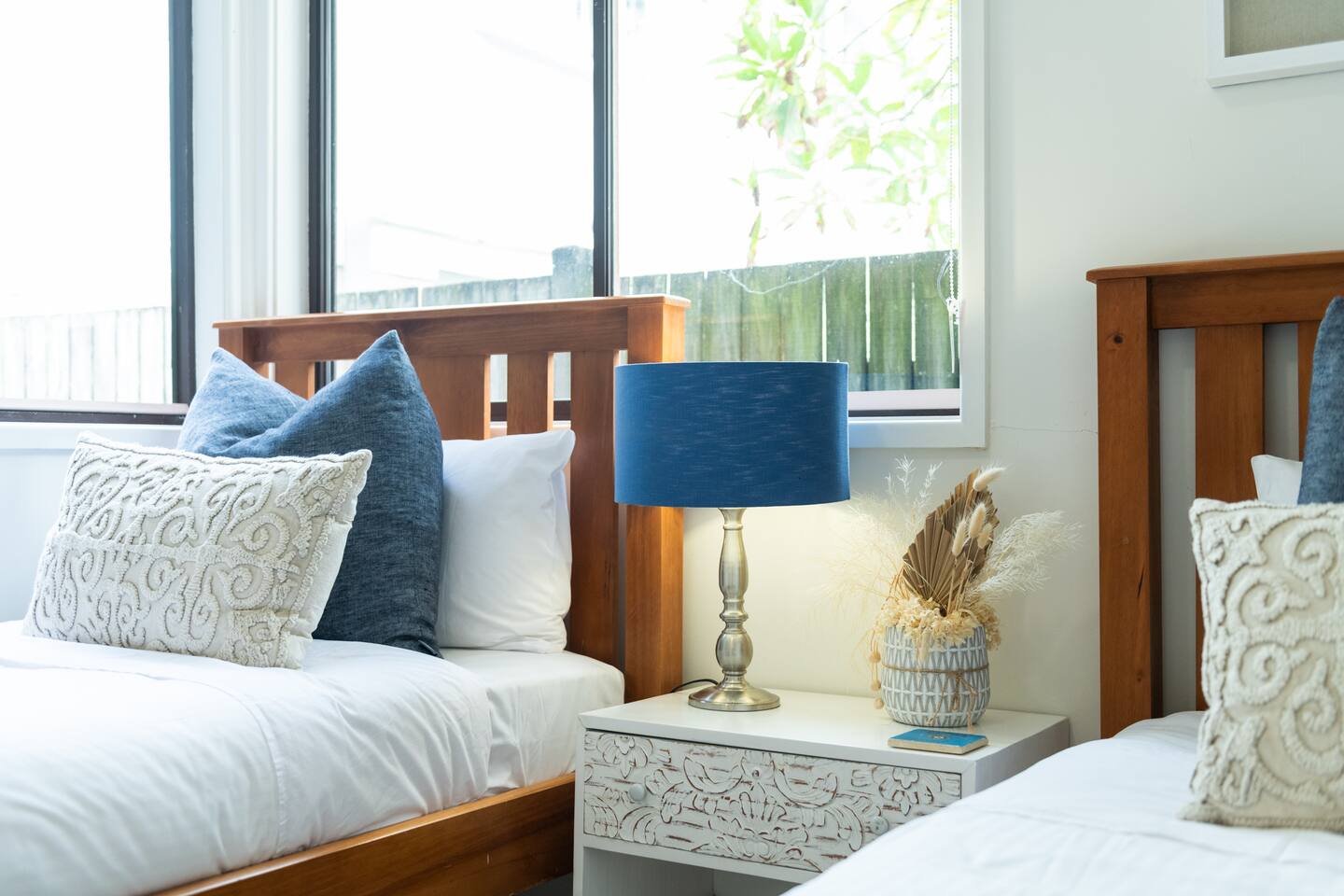 Sometimes you stumble on something truly special and Bayside, managed by The FAM Holiday Property Management in Jervis Bay, is it. Named after the original beachfront home here, this gorgeous property has been lovingly renovated & expertly styled to create a divine beachside escape. Its relaxed coastal design is curated with stunning decor, comfortable furniture, luxury finishes & appliances - including an 85 inch TV and wine fridge! With the white sands of Collingwood Beach right on your doorstep you'll feel instantly relaxed & perfectly positioned to enjoy the best of Jervis Bay. What's more you're right by the walking track that takes you either Hyams Beach or Huskisson without leaving the water's edge. This 5 bedroom property consists of a main 4 bedroom house (sleeping 7-8) and additional studio with queen bedroom, separate lounge, kitchenette & dining area and bathroom. Making it the perfect spot for family or friends to come together and relax by the water. The studio offers an extra space and additional privacy for multigenerational families, groups of friends or works well as a teenagers' retreat - complete with a smart TV The design and style is second to none with every corner of the property boasting incredible attention to detail. Meanwhile, the furnishings have been chosen to ensure maximum comfort and convenience with large lounges and an 85 inch smart TV making entertainment easy. The fully equipped kitchen boasts a wine fridge, Nespresso machine and everything in between to ensure a seamless stay. Outside, you'll find the white sand paradise, Collingwood Beach just across the pedestrian path and small sand dunes - where you'll also find a large tyre swing, an icon of any Jervis Bay childhood holiday! Stroll to the beach for sunrise and catch a glimpse of the many resident dolphins who love to dive in the early morning waves here. From the house, enjoy the sound of the waves, peace and tranquility of being nestled by the water. The back deck of the property, featuring family sized BBQ is the perfect place to enjoy with family or find a quiet nook in the grassy front yard or front verandah to escape it all. All just a stroll to local shops, cafes and restaurants in Vincentia Village, 5 minutes to bustling Huskisson and its boutique shops, cafes and breweries, a little over 5 minutes to Hyams Beach and The Booderee National Park. * Best bits of Bayside * - Absolute beachfront location - direct access to the beach out the back gate, across a small public walk way and onto the beach - Spectacular styling and interior design - a true luxury oasis - Main 4 bedroom house as well as additional studio with bedroom, lounge and bathroom - perfect for those looking to travel together but enjoy a little extra space and privacy - Brand new and truly stunning luxury main bathroom, additional 1/2 bathroom in the laundry and full bathroom in the studio - Superbly equipped kitchen including Nespresso coffee machine, large fridge/freezer, wine fridge, kettle, toaster, microwave, stove, luxury crockery and glassware - Comfortable main lounge with 85 inch smart TV, additional TV in studio. Includes access to streaming apps including Netflix, Stan etc - Multiple outdoor areas to enjoy, from the yard to deck and verandah. 2 outdoor showers - Direct access to the waterside walking track that runs from Hyams Beach to Huskisson - soak up the best of Jervis Bay without getting in the car! - 1 minute drive to local boat ramp - Short walk to local shops, cafes and restaurants, short drive to Huskisson, Hyams Beach, The Booderee National Park - Detailed in house booklet with the best insider local tips to make the most of your stay - All linen & bath towels, luxury toiletries as well as household supplies provided. BYO beach towels - Complimentary Silos Estate wine, local handmade chocolates & barista cafe coffee voucher for guests * Need to know * - Main house includes queen master bedroom, further queen room, twin room with 2 x single beds and further room with 1 single and 1 pull out single trundle bed. Studio features queen bed. Maximum sleeping occupancy 10 whilst 9 will be most comfortable. We prefer a max of 8 adults so if you're travelling with more, please send us a message to discuss the suitability - AC in main house and studio. AC units are split systems and in the main living area in the house and bedroom in the studio. Each bedroom then also has either a ceiling fan or a portable fan - Wifi