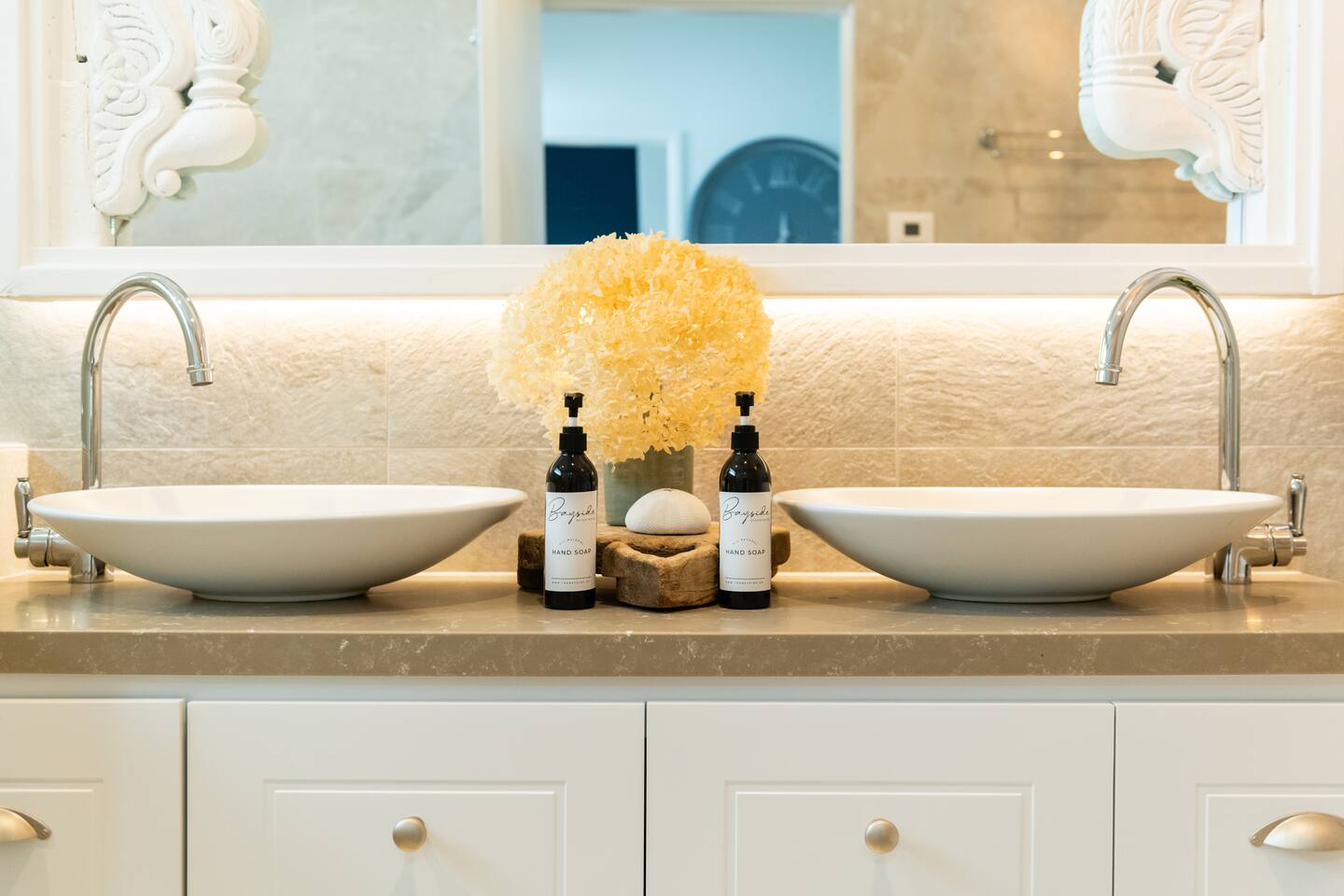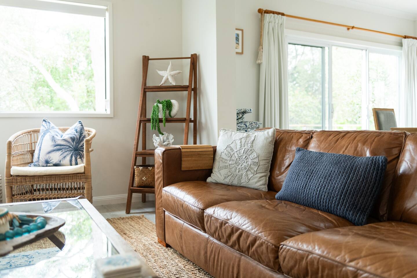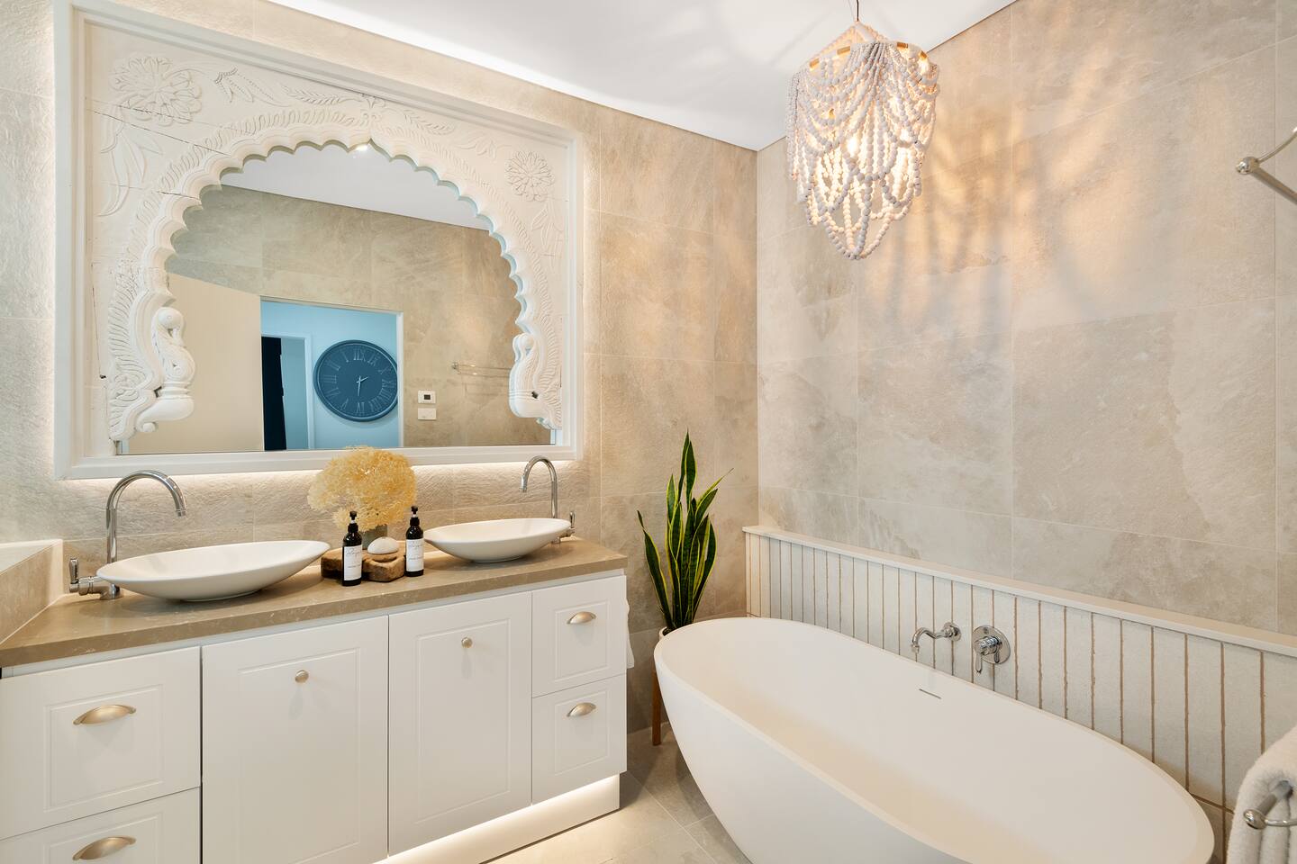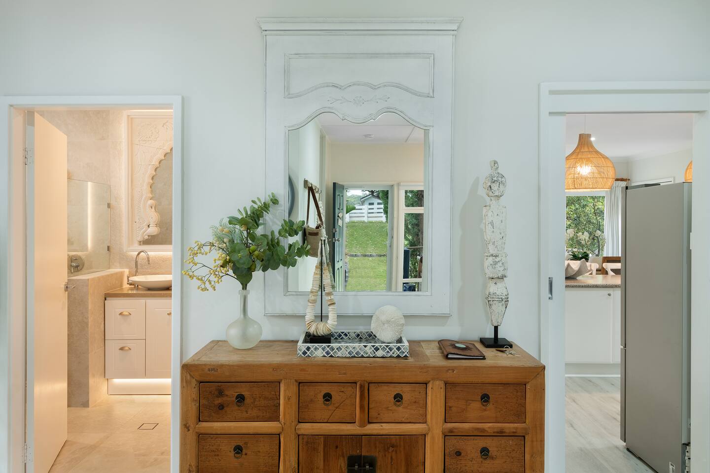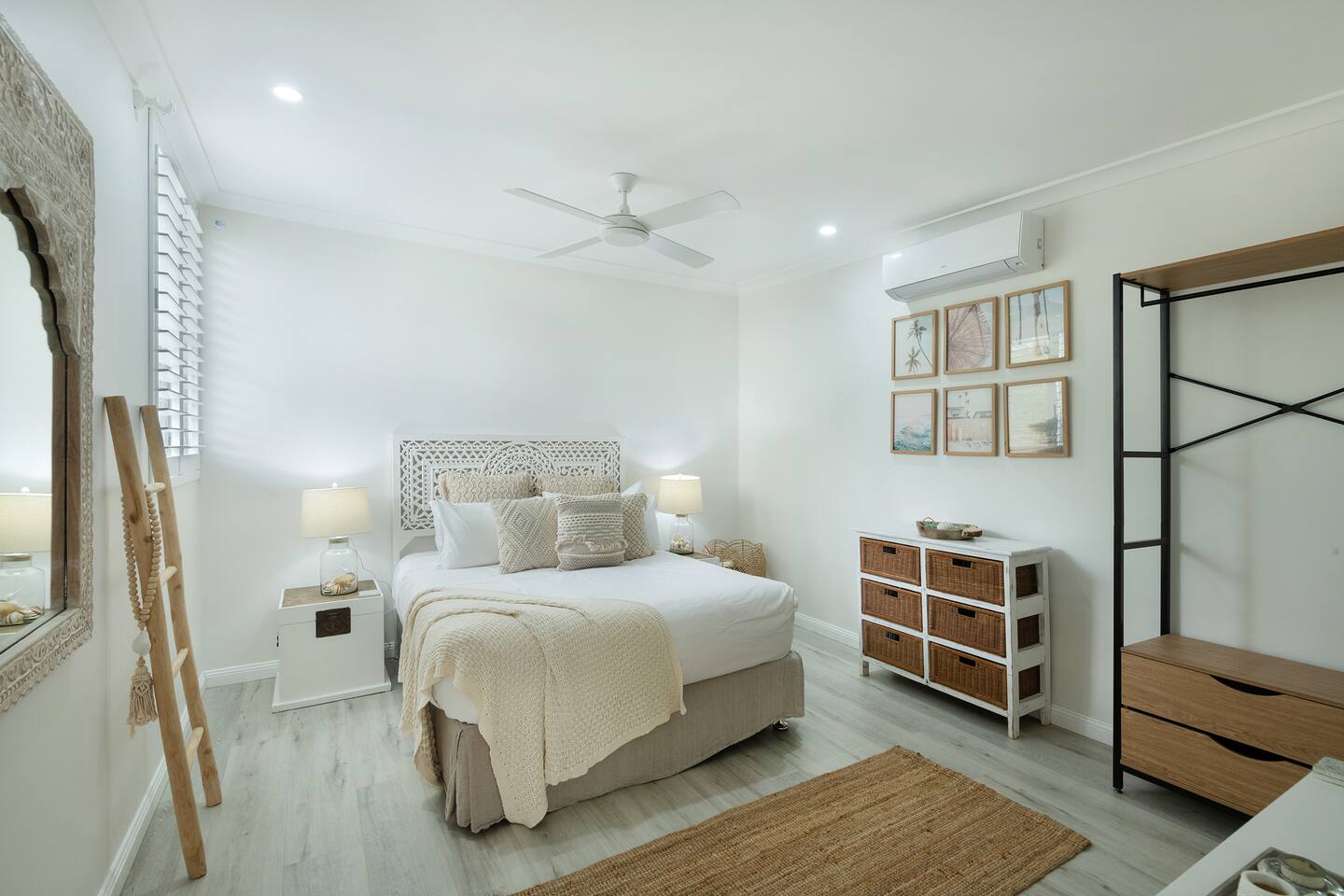 Sometimes you stumble on something truly special and Bayside, managed by The FAM Holiday Property Management in Jervis Bay, is it. Named after the original beachfront home here, this gorgeous property has been lovingly renovated & expertly styled to create a divine beachside escape. Its relaxed coastal design is curated with stunning decor, comfortable furniture, luxury finishes & appliances - including an 85 inch TV and wine fridge! With the white sands of Collingwood Beach right on your doorstep you'll feel instantly relaxed & perfectly positioned to enjoy the best of Jervis Bay. What's more you're right by the walking track that takes you either Hyams Beach or Huskisson without leaving the water's edge. This 5 bedroom property consists of a main 4 bedroom house (sleeping 7-8) and additional studio with queen bedroom, separate lounge, kitchenette & dining area and bathroom. Making it the perfect spot for family or friends to come together and relax by the water. The studio offers an extra space and additional privacy for multigenerational families, groups of friends or works well as a teenagers' retreat - complete with a smart TV The design and style is second to none with every corner of the property boasting incredible attention to detail. Meanwhile, the furnishings have been chosen to ensure maximum comfort and convenience with large lounges and an 85 inch smart TV making entertainment easy. The fully equipped kitchen boasts a wine fridge, Nespresso machine and everything in between to ensure a seamless stay. Outside, you'll find the white sand paradise, Collingwood Beach just across the pedestrian path and small sand dunes - where you'll also find a large tyre swing, an icon of any Jervis Bay childhood holiday! Stroll to the beach for sunrise and catch a glimpse of the many resident dolphins who love to dive in the early morning waves here. From the house, enjoy the sound of the waves, peace and tranquility of being nestled by the water. The back deck of the property, featuring family sized BBQ is the perfect place to enjoy with family or find a quiet nook in the grassy front yard or front verandah to escape it all. All just a stroll to local shops, cafes and restaurants in Vincentia Village, 5 minutes to bustling Huskisson and its boutique shops, cafes and breweries, a little over 5 minutes to Hyams Beach and The Booderee National Park. * Best bits of Bayside * - Absolute beachfront location - direct access to the beach out the back gate, across a small public walk way and onto the beach - Spectacular styling and interior design - a true luxury oasis - Main 4 bedroom house as well as additional studio with bedroom, lounge and bathroom - perfect for those looking to travel together but enjoy a little extra space and privacy - Brand new and truly stunning luxury main bathroom, additional 1/2 bathroom in the laundry and full bathroom in the studio - Superbly equipped kitchen including Nespresso coffee machine, large fridge/freezer, wine fridge, kettle, toaster, microwave, stove, luxury crockery and glassware - Comfortable main lounge with 85 inch smart TV, additional TV in studio. Includes access to streaming apps including Netflix, Stan etc - Multiple outdoor areas to enjoy, from the yard to deck and verandah. 2 outdoor showers - Direct access to the waterside walking track that runs from Hyams Beach to Huskisson - soak up the best of Jervis Bay without getting in the car! - 1 minute drive to local boat ramp - Short walk to local shops, cafes and restaurants, short drive to Huskisson, Hyams Beach, The Booderee National Park - Detailed in house booklet with the best insider local tips to make the most of your stay - All linen & bath towels, luxury toiletries as well as household supplies provided. BYO beach towels - Complimentary Silos Estate wine, local handmade chocolates & barista cafe coffee voucher for guests * Need to know * - Main house includes queen master bedroom, further queen room, twin room with 2 x single beds and further room with 1 single and 1 pull out single trundle bed. Studio features queen bed. Maximum sleeping occupancy 10 whilst 9 will be most comfortable. We prefer a max of 8 adults so if you're travelling with more, please send us a message to discuss the suitability - AC in main house and studio. AC units are split systems and in the main living area in the house and bedroom in the studio. Each bedroom then also has either a ceiling fan or a portable fan - Wifi