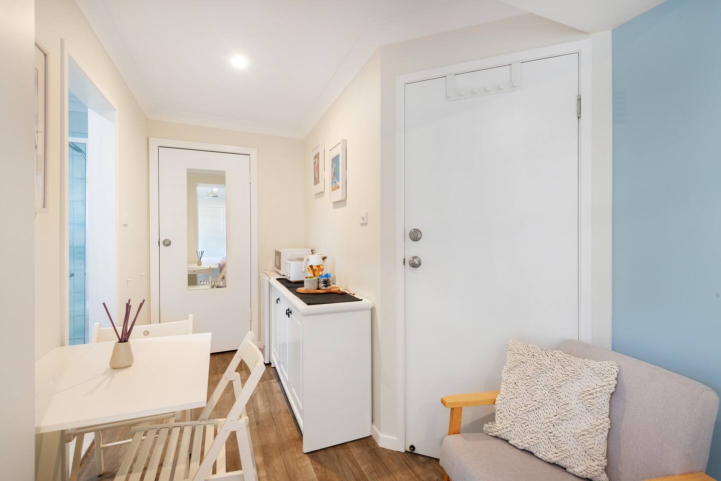 Peacefully positioned with a large, leafy garden & a short 5 minute walk to local beaches, shops & cafes, you'll find Daybreak Studio. A private oasis, recently renovated, freshly presented with beautiful furnishings, comfy queen sized bed, Wifi, Smart TV, ensuite bathroom, kitchenette, outdoor dining area & outdoor shower. The perfect base to enjoy Jervis Bay's white sandy beaches, National Park, Huskisson & Vincentia. Unwind & relax in this cosy retreat, perfect for couples or friends.