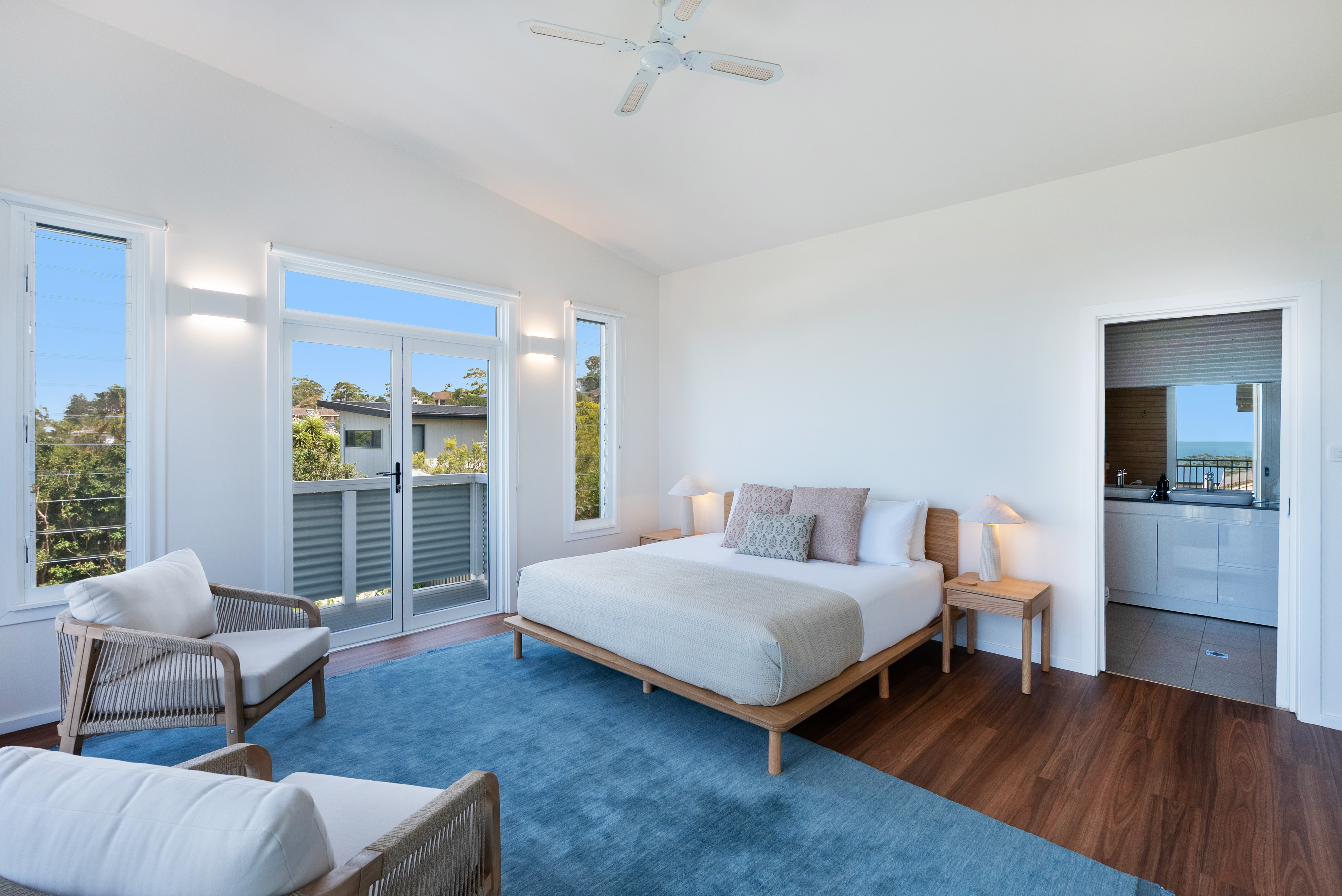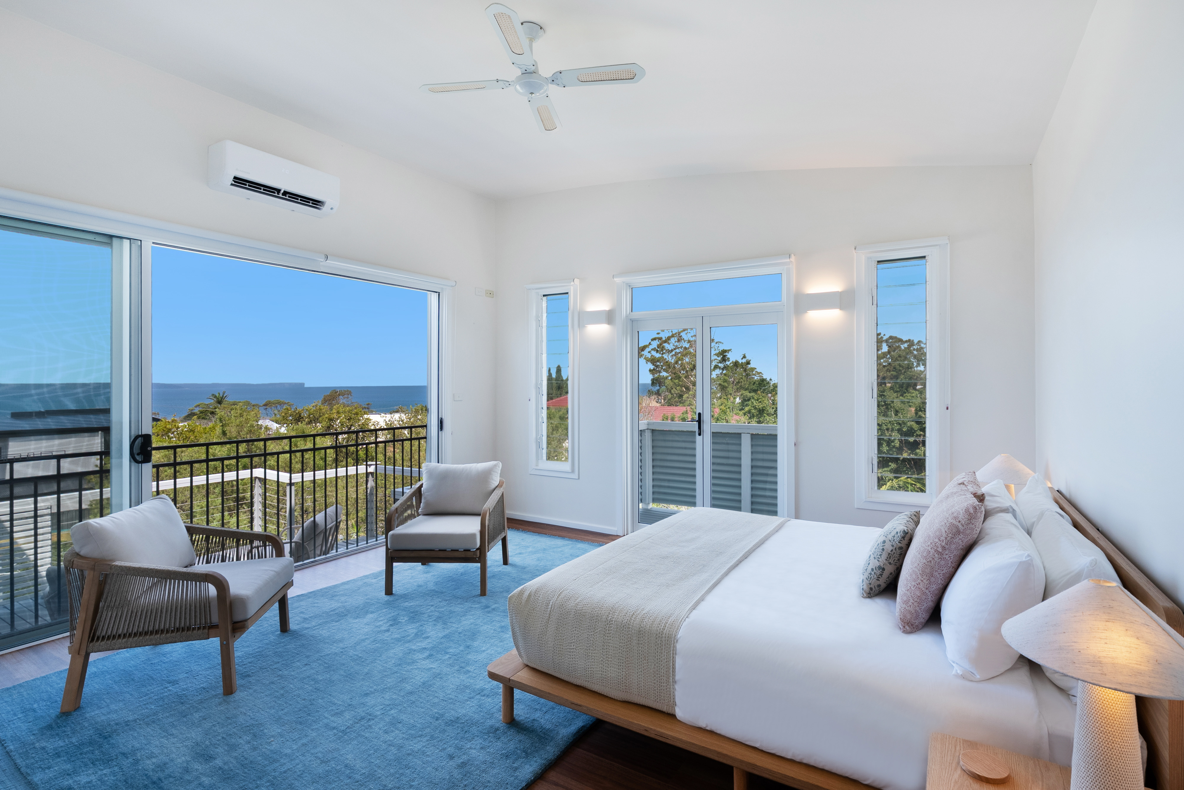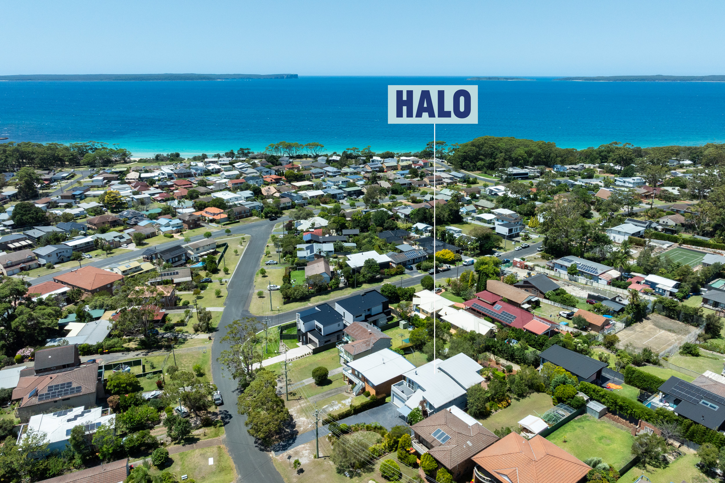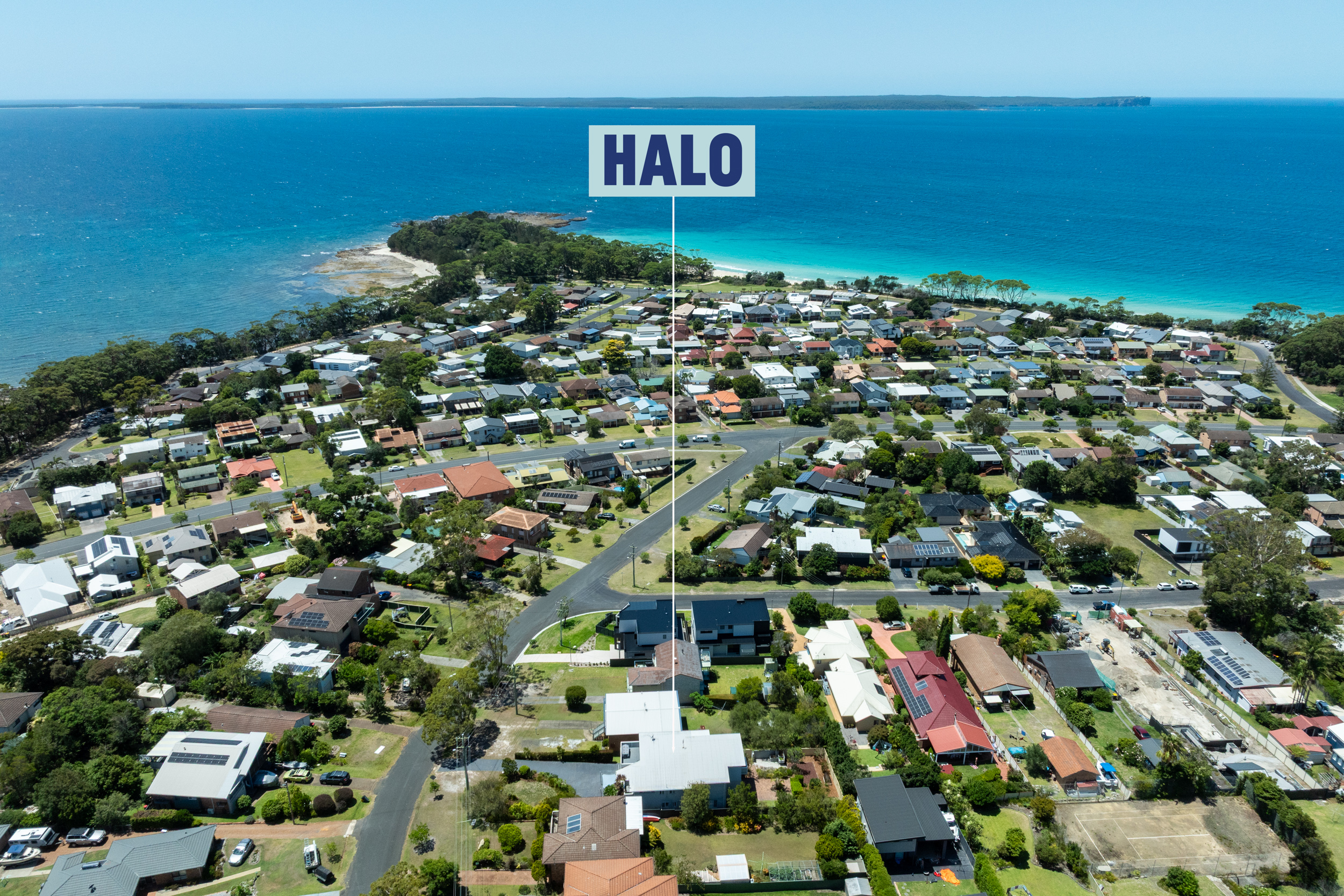 Get ready to take a breath, relax and soak up Jervis Bay from Halo, a simple heavenly stay overlooking beautiful Jervis Bay. Enjoy stunning views of Jervis Bay and Point Perpendicular - the iconic cliffs at the north entrance of the bay - whilst being just a few minutes walk to the white sandy beaches and local amenities. With endless natural light, high ceilings, multiple living spaces and numerous alfresco areas, there is room for everyone to spread out and unwind. Whilst with each of the four bedrooms boasting its own private ensuite bathroom, this large, two storey home is perfect for those wishing to travel together but enjoy their own space and privacy. Adorned with beautiful artwork - including many locally sourced pieces, stunning new furnishings and creative decor, the house has a relaxed, beach boho feel. Whilst comfort and convenience have been thought of throughout - think a large lounge you'll never want to leave, luxury bedding, fully equipped kitchen and all the amenities you could need. Outside, alongside multiple balconies with alfresco dining and lounging areas enjoying incredible views, enjoy a feeling of space and privacy in the mature gardens and deck, all on Halos' large 800 square meter block. Did we tell you enough about the view? Wake to the sunrise over the water and soak up the views all day! In winter, you may even see whales entering the Bay on their annual migration. In the evenings, catch the moon rising over the headland. Or whatever the time or season, just enjoy the beauty of Point Perpendicular. All this just a short walk to two of Jervis Bay's best beaches - Orion and Nelson, White Sands Walk to Hyams Beach and the concreted path to Huskisson you're in the centre of everything Jervis Bay has to offer. It's a lovey easy walk to local shops, cafes and take aways and an easy drive to Huskisson's buzzing breweries, boutique shops, dolphin and whale watching tours as well as the Booderee National Park. You will love Halo! * Best bits of Halo * - Elevated panoramic Jervis Bay views - Incredibly spacious home boasting four bedrooms all with their own ensuite bathroom - one with a spa bath! - Multiple living spaces, large open plan living and dining area with incredible views, second lounge/rumpus room - Ideal for intergenerational groups or couples travelling together and looking for privacy. Downstairs there are two ensuite bedrooms and large lounge area, upstairs a further two ensuite bedrooms, main living area, kitchen and break out spaces - Lower footprint travel - Halo has solar power. We also have a water filter system meaning all water in the house is filtered - Smart TVs in both lounge rooms, Wifi - High quality, stylish, new furniture, beautiful artwork and decor - Peaceful, leafy block with mature gardens, plenty of space and privacy. Multiple balconies and decks, alfresco dining and lounging spaces and BBQ - Fully equipped kitchen, gas stove, Nespresso coffee machine, microwave, dishwasher, kettle and toaster - All luxury linen, towels and spare beach towels provided - Tea, coffee, basic pantry supplies, natural cleaning products & luxury Two Good Co toiletries provided. Local barista coffee voucher, handmade chocolates and Silos Estate wine for every stay - The very insider local tips shared in our in house magazine * Need to know * - Four ensuite bedrooms with private bathrooms - 2 king, 1 queen, 1 king single - Internal laundry with washing machine and dryer - Air conditioning upstairs, pedestal fans - Fenced backyard - Large driveway with easy parking