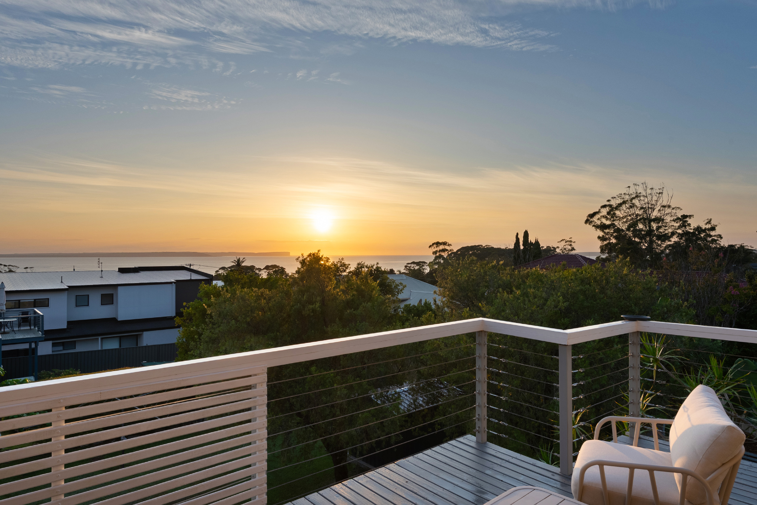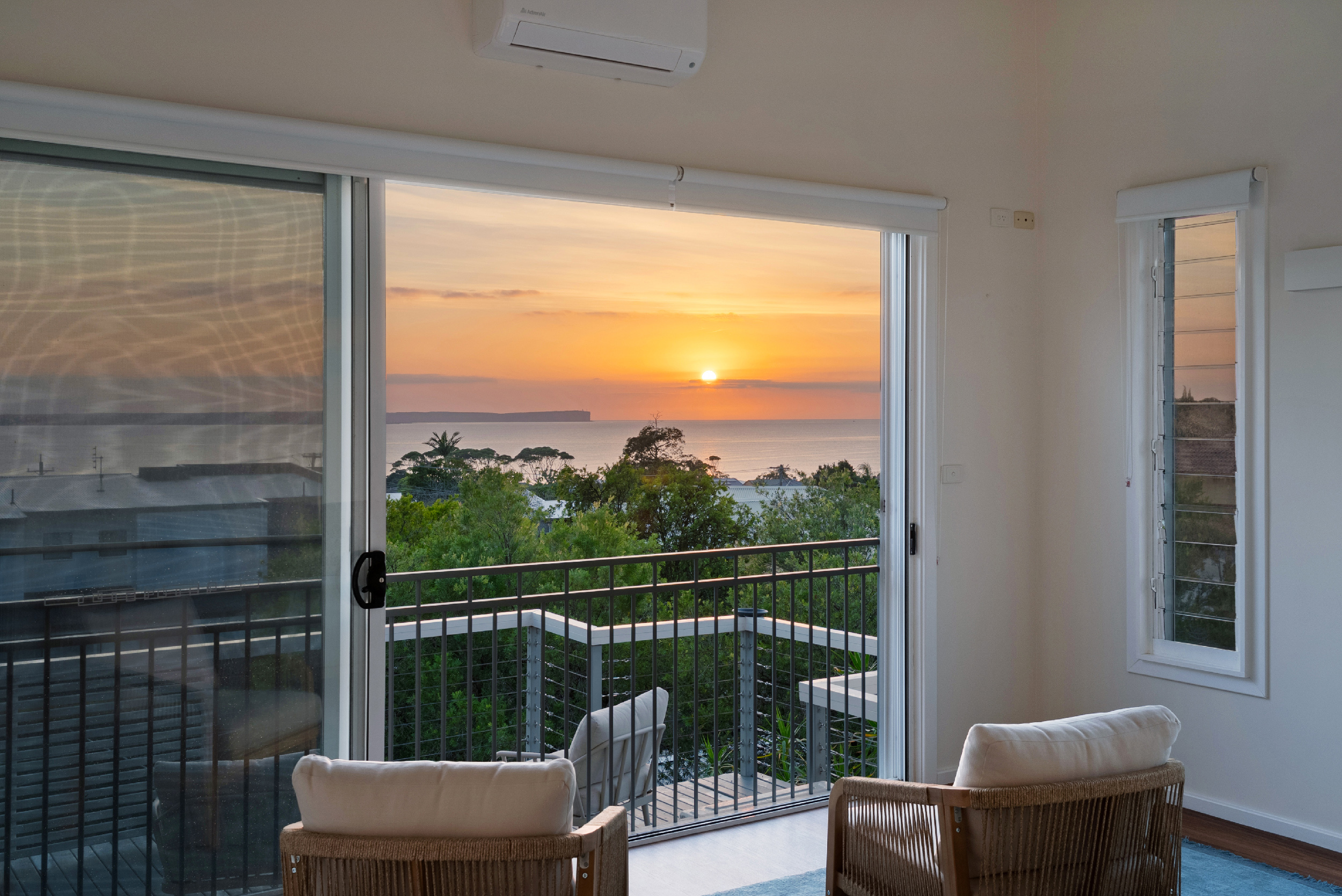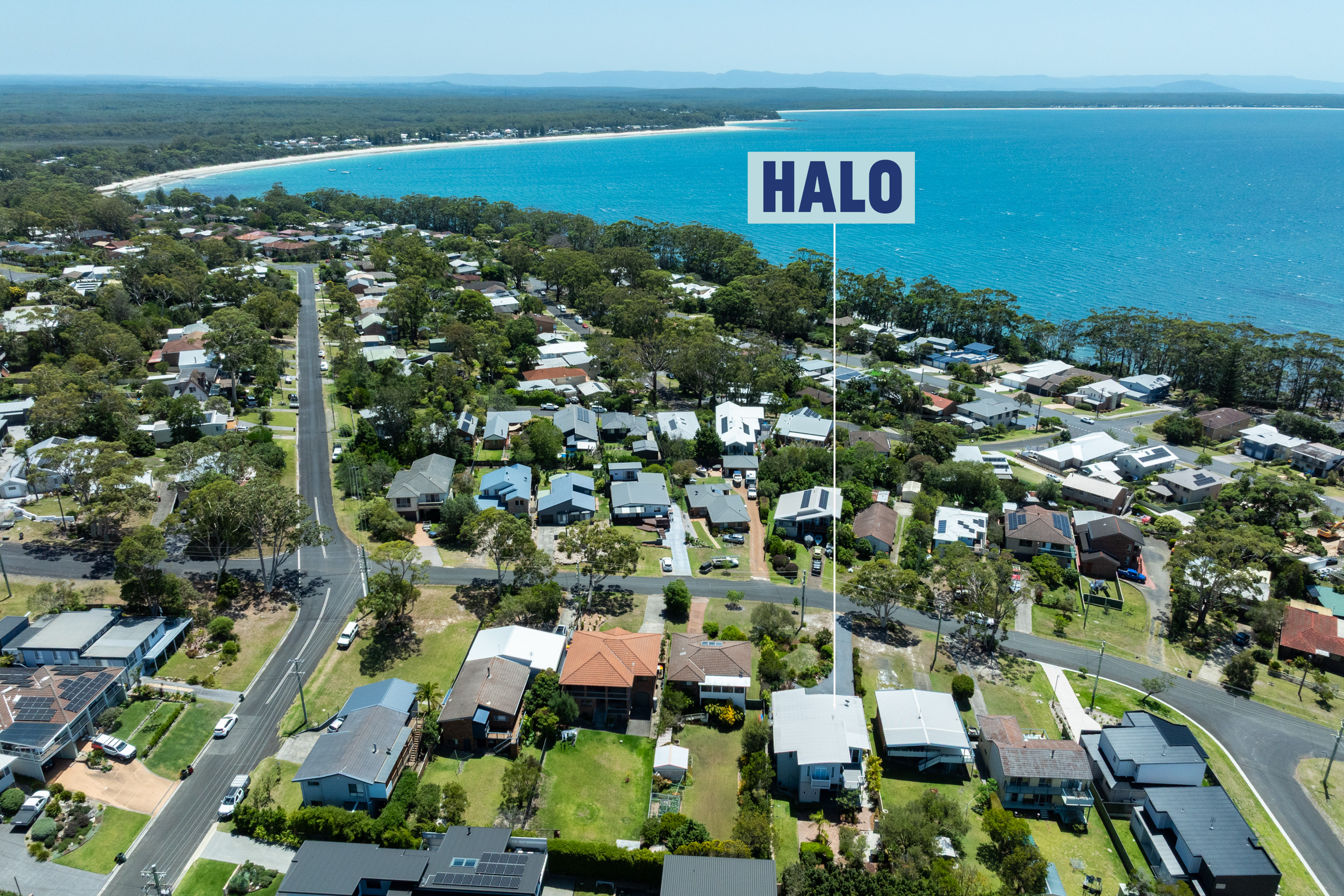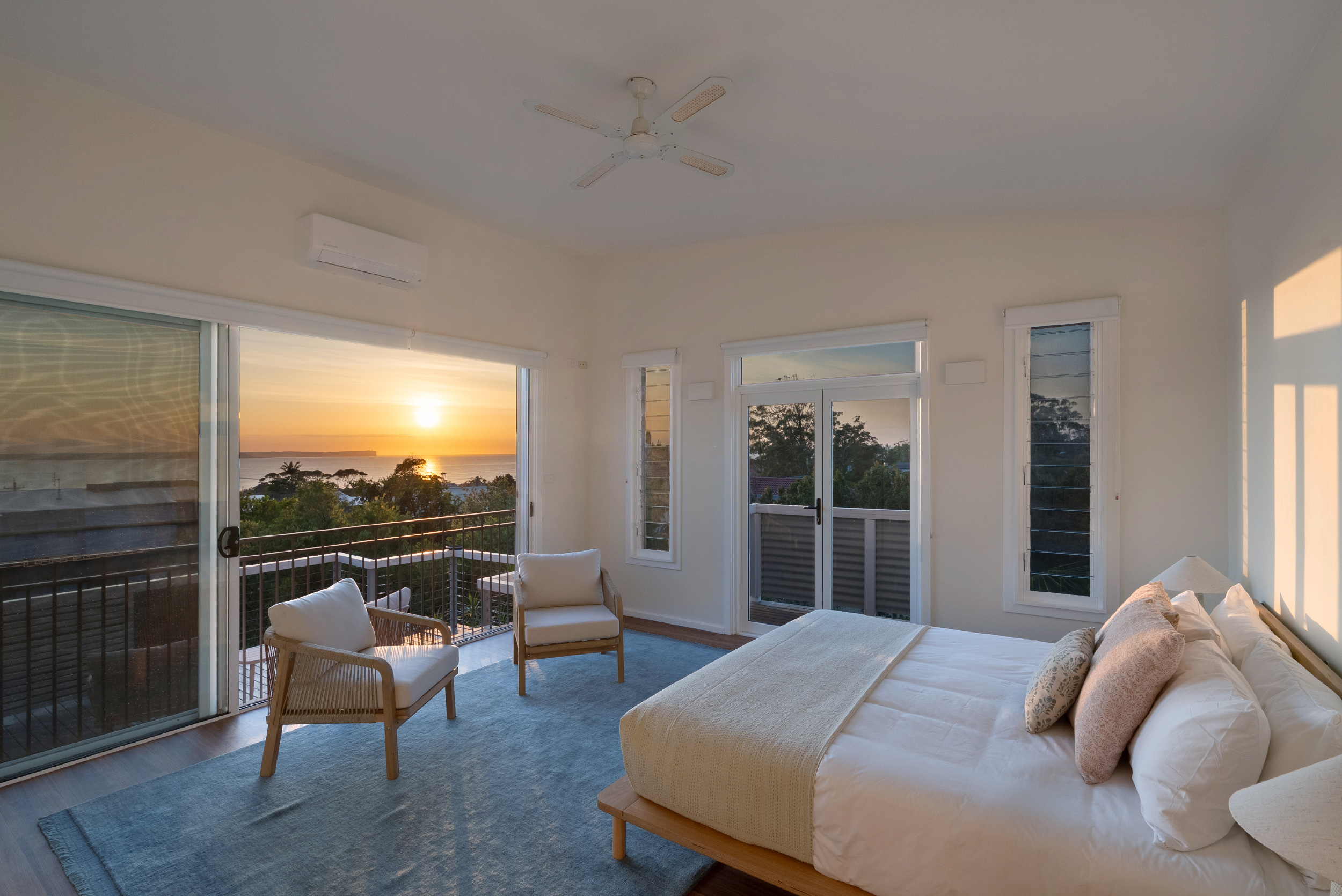 Get ready to take a breath, relax and soak up Jervis Bay from Halo, a simple heavenly stay overlooking beautiful Jervis Bay. Enjoy stunning views of Jervis Bay and Point Perpendicular - the iconic cliffs at the north entrance of the bay - whilst being just a few minutes walk to the white sandy beaches and local amenities. With endless natural light, high ceilings, multiple living spaces and numerous alfresco areas, there is room for everyone to spread out and unwind. Whilst with each of the four bedrooms boasting its own private ensuite bathroom, this large, two storey home is perfect for those wishing to travel together but enjoy their own space and privacy. Adorned with beautiful artwork - including many locally sourced pieces, stunning new furnishings and creative decor, the house has a relaxed, beach boho feel. Whilst comfort and convenience have been thought of throughout - think a large lounge you'll never want to leave, luxury bedding, fully equipped kitchen and all the amenities you could need. Outside, alongside multiple balconies with alfresco dining and lounging areas enjoying incredible views, enjoy a feeling of space and privacy in the mature gardens and deck, all on Halos' large 800 square meter block. Did we tell you enough about the view? Wake to the sunrise over the water and soak up the views all day! In winter, you may even see whales entering the Bay on their annual migration. In the evenings, catch the moon rising over the headland. Or whatever the time or season, just enjoy the beauty of Point Perpendicular. All this just a short walk to two of Jervis Bay's best beaches - Orion and Nelson, White Sands Walk to Hyams Beach and the concreted path to Huskisson you're in the centre of everything Jervis Bay has to offer. It's a lovey easy walk to local shops, cafes and take aways and an easy drive to Huskisson's buzzing breweries, boutique shops, dolphin and whale watching tours as well as the Booderee National Park. You will love Halo! * Best bits of Halo * - Elevated panoramic Jervis Bay views - Incredibly spacious home boasting four bedrooms all with their own ensuite bathroom - one with a spa bath! - Multiple living spaces, large open plan living and dining area with incredible views, second lounge/rumpus room - Ideal for intergenerational groups or couples travelling together and looking for privacy. Downstairs there are two ensuite bedrooms and large lounge area, upstairs a further two ensuite bedrooms, main living area, kitchen and break out spaces - Lower footprint travel - Halo has solar power. We also have a water filter system meaning all water in the house is filtered - Smart TVs in both lounge rooms, Wifi - High quality, stylish, new furniture, beautiful artwork and decor - Peaceful, leafy block with mature gardens, plenty of space and privacy. Multiple balconies and decks, alfresco dining and lounging spaces and BBQ - Fully equipped kitchen, gas stove, Nespresso coffee machine, microwave, dishwasher, kettle and toaster - All luxury linen, towels and spare beach towels provided - Tea, coffee, basic pantry supplies, natural cleaning products & luxury Two Good Co toiletries provided. Local barista coffee voucher, handmade chocolates and Silos Estate wine for every stay - The very insider local tips shared in our in house magazine * Need to know * - Four ensuite bedrooms with private bathrooms - 2 king, 1 queen, 1 king single - Internal laundry with washing machine and dryer - Air conditioning upstairs, pedestal fans - Fenced backyard - Large driveway with easy parking