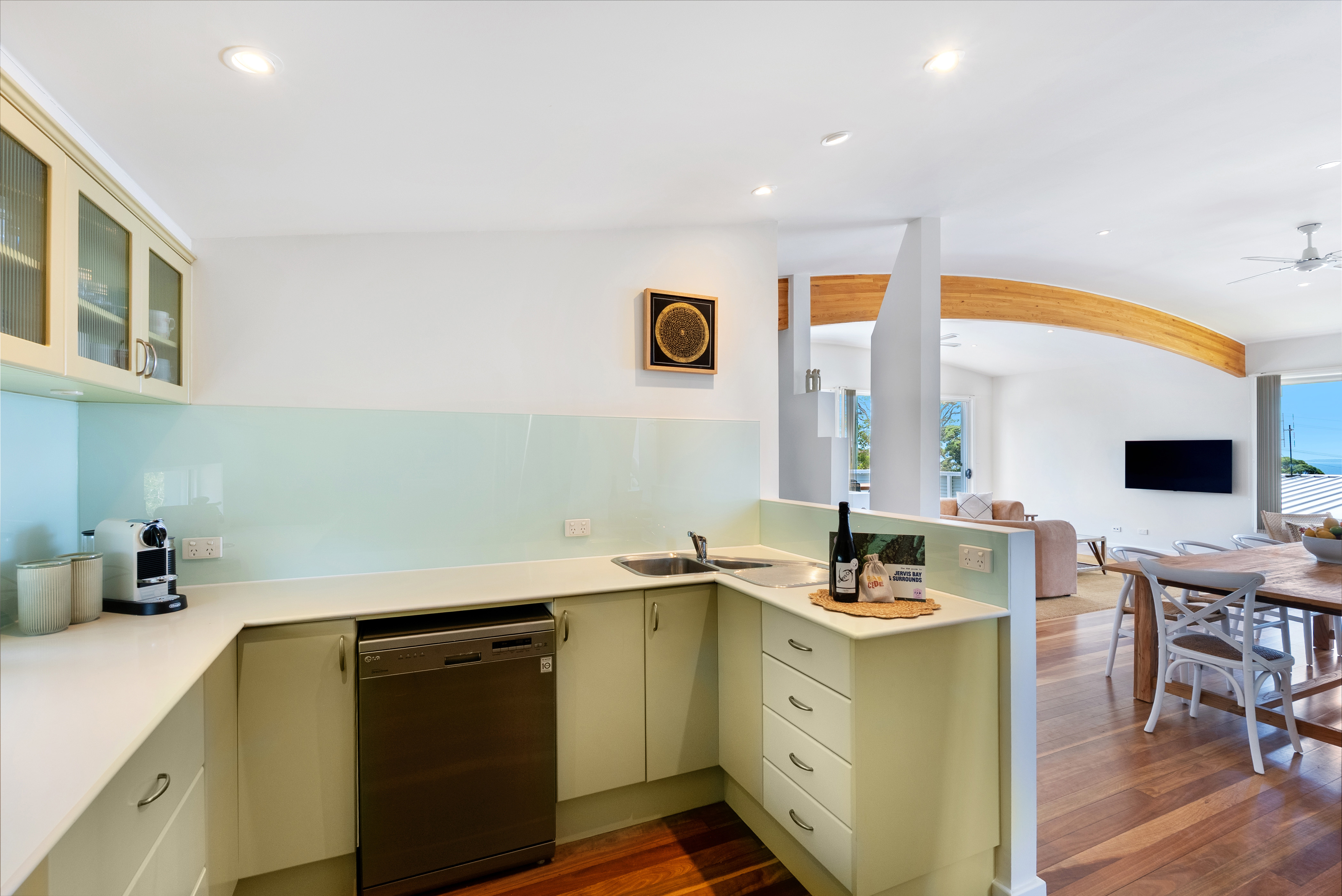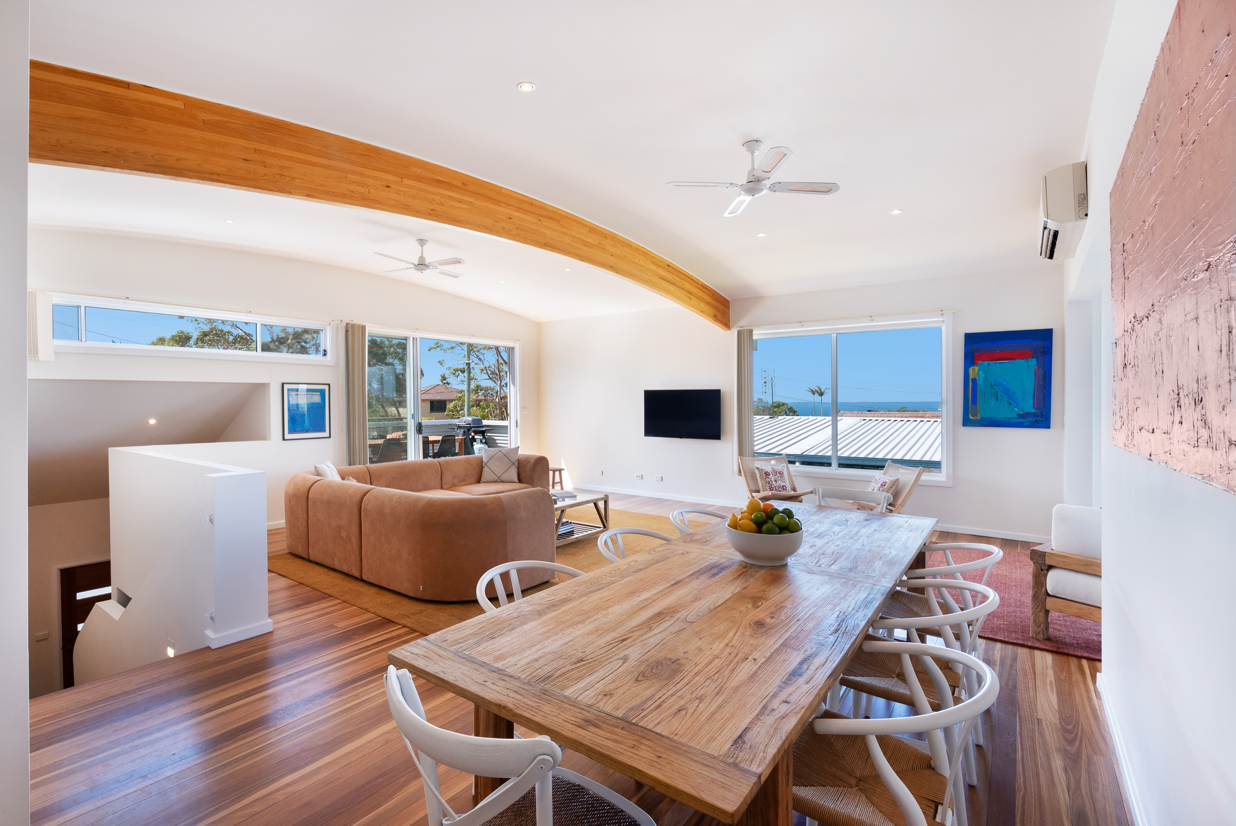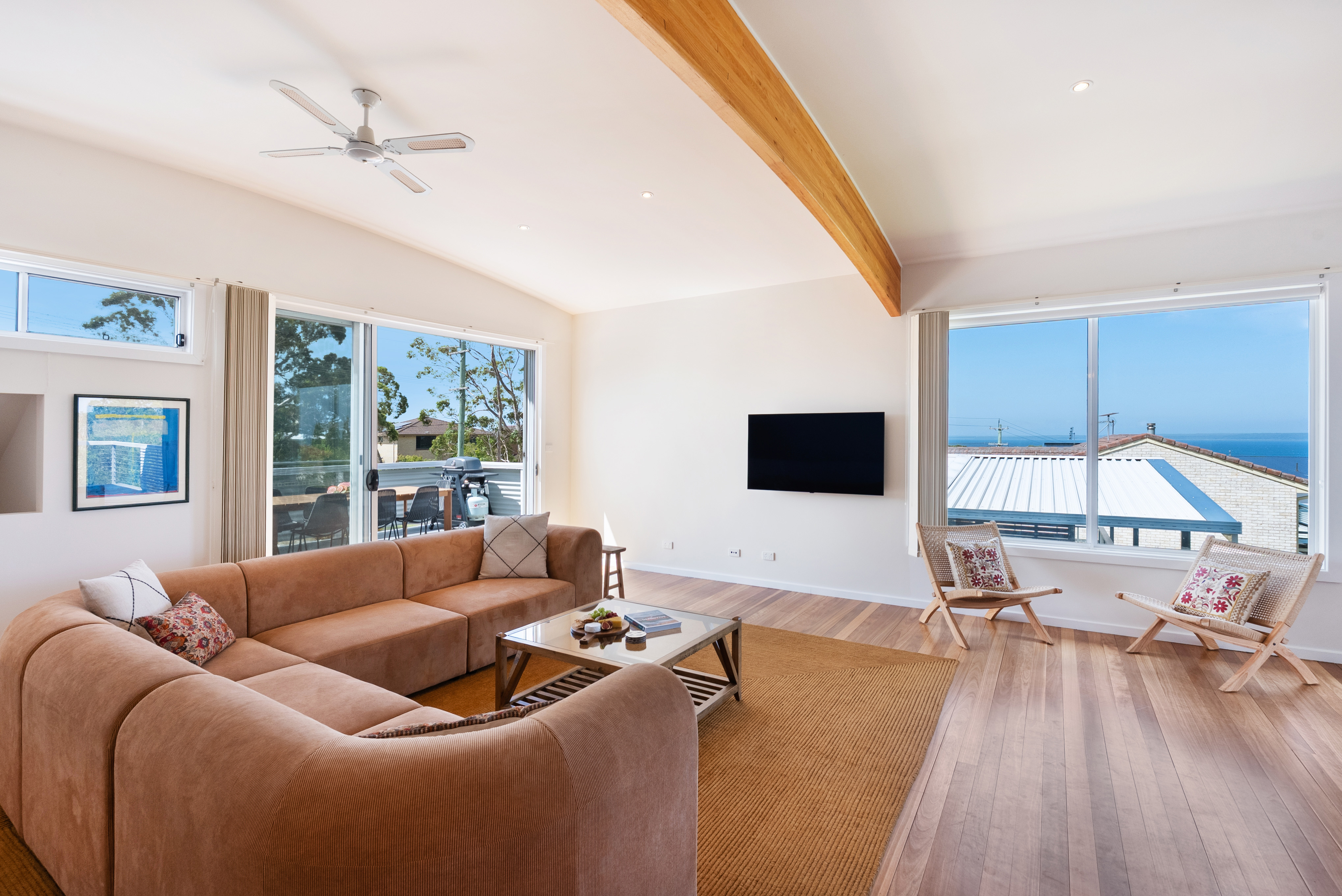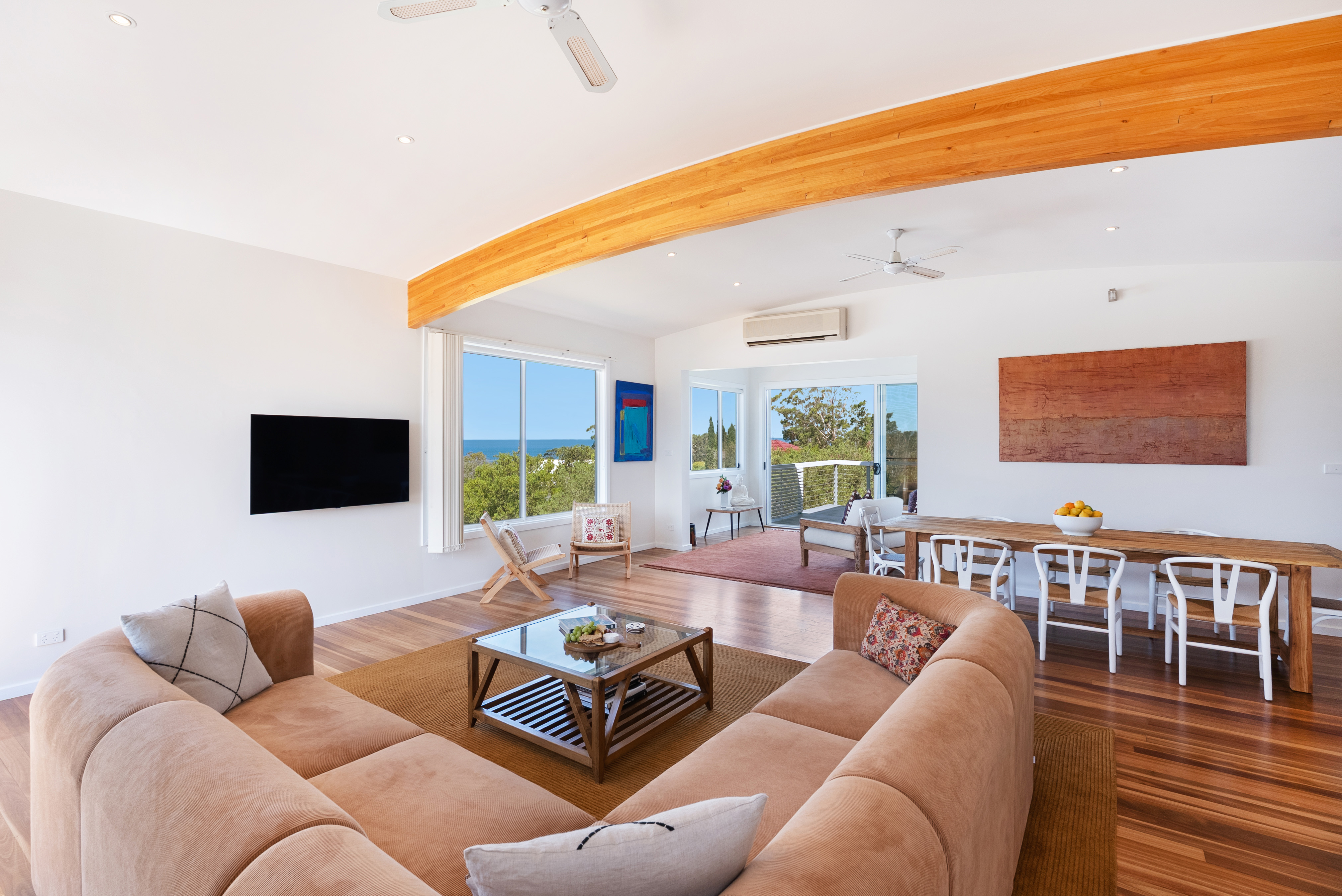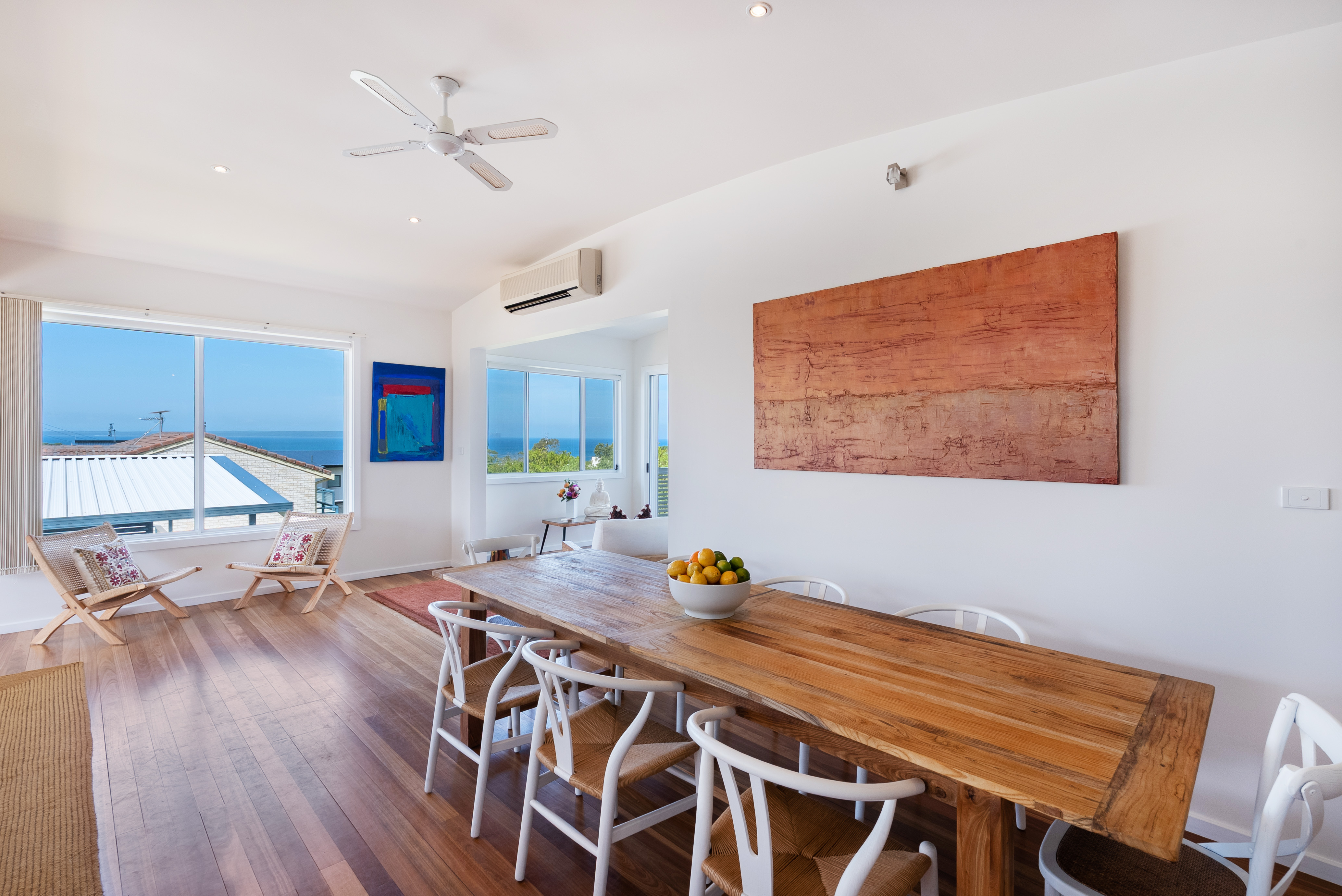 Get ready to take a breath, relax and soak up Jervis Bay from Halo, a simple heavenly stay overlooking beautiful Jervis Bay. Enjoy stunning views of Jervis Bay and Point Perpendicular - the iconic cliffs at the north entrance of the bay - whilst being just a few minutes walk to the white sandy beaches and local amenities. With endless natural light, high ceilings, multiple living spaces and numerous alfresco areas, there is room for everyone to spread out and unwind. Whilst with each of the four bedrooms boasting its own private ensuite bathroom, this large, two storey home is perfect for those wishing to travel together but enjoy their own space and privacy. Adorned with beautiful artwork - including many locally sourced pieces, stunning new furnishings and creative decor, the house has a relaxed, beach boho feel. Whilst comfort and convenience have been thought of throughout - think a large lounge you'll never want to leave, luxury bedding, fully equipped kitchen and all the amenities you could need. Outside, alongside multiple balconies with alfresco dining and lounging areas enjoying incredible views, enjoy a feeling of space and privacy in the mature gardens and deck, all on Halos' large 800 square meter block. Did we tell you enough about the view? Wake to the sunrise over the water and soak up the views all day! In winter, you may even see whales entering the Bay on their annual migration. In the evenings, catch the moon rising over the headland. Or whatever the time or season, just enjoy the beauty of Point Perpendicular. All this just a short walk to two of Jervis Bay's best beaches - Orion and Nelson, White Sands Walk to Hyams Beach and the concreted path to Huskisson you're in the centre of everything Jervis Bay has to offer. It's a lovey easy walk to local shops, cafes and take aways and an easy drive to Huskisson's buzzing breweries, boutique shops, dolphin and whale watching tours as well as the Booderee National Park. You will love Halo! * Best bits of Halo * - Elevated panoramic Jervis Bay views - Incredibly spacious home boasting four bedrooms all with their own ensuite bathroom - one with a spa bath! - Multiple living spaces, large open plan living and dining area with incredible views, second lounge/rumpus room - Ideal for intergenerational groups or couples travelling together and looking for privacy. Downstairs there are two ensuite bedrooms and large lounge area, upstairs a further two ensuite bedrooms, main living area, kitchen and break out spaces - Lower footprint travel - Halo has solar power. We also have a water filter system meaning all water in the house is filtered - Smart TVs in both lounge rooms, Wifi - High quality, stylish, new furniture, beautiful artwork and decor - Peaceful, leafy block with mature gardens, plenty of space and privacy. Multiple balconies and decks, alfresco dining and lounging spaces and BBQ - Fully equipped kitchen, gas stove, Nespresso coffee machine, microwave, dishwasher, kettle and toaster - All luxury linen, towels and spare beach towels provided - Tea, coffee, basic pantry supplies, natural cleaning products & luxury Two Good Co toiletries provided. Local barista coffee voucher, handmade chocolates and Silos Estate wine for every stay - The very insider local tips shared in our in house magazine * Need to know * - Four ensuite bedrooms with private bathrooms - 2 king, 1 queen, 1 king single - Internal laundry with washing machine and dryer - Air conditioning upstairs, pedestal fans - Fenced backyard - Large driveway with easy parking