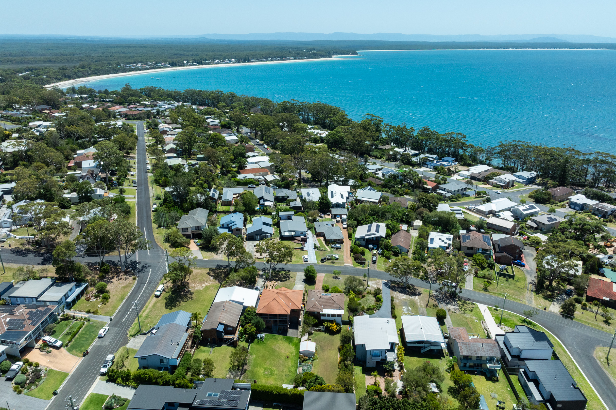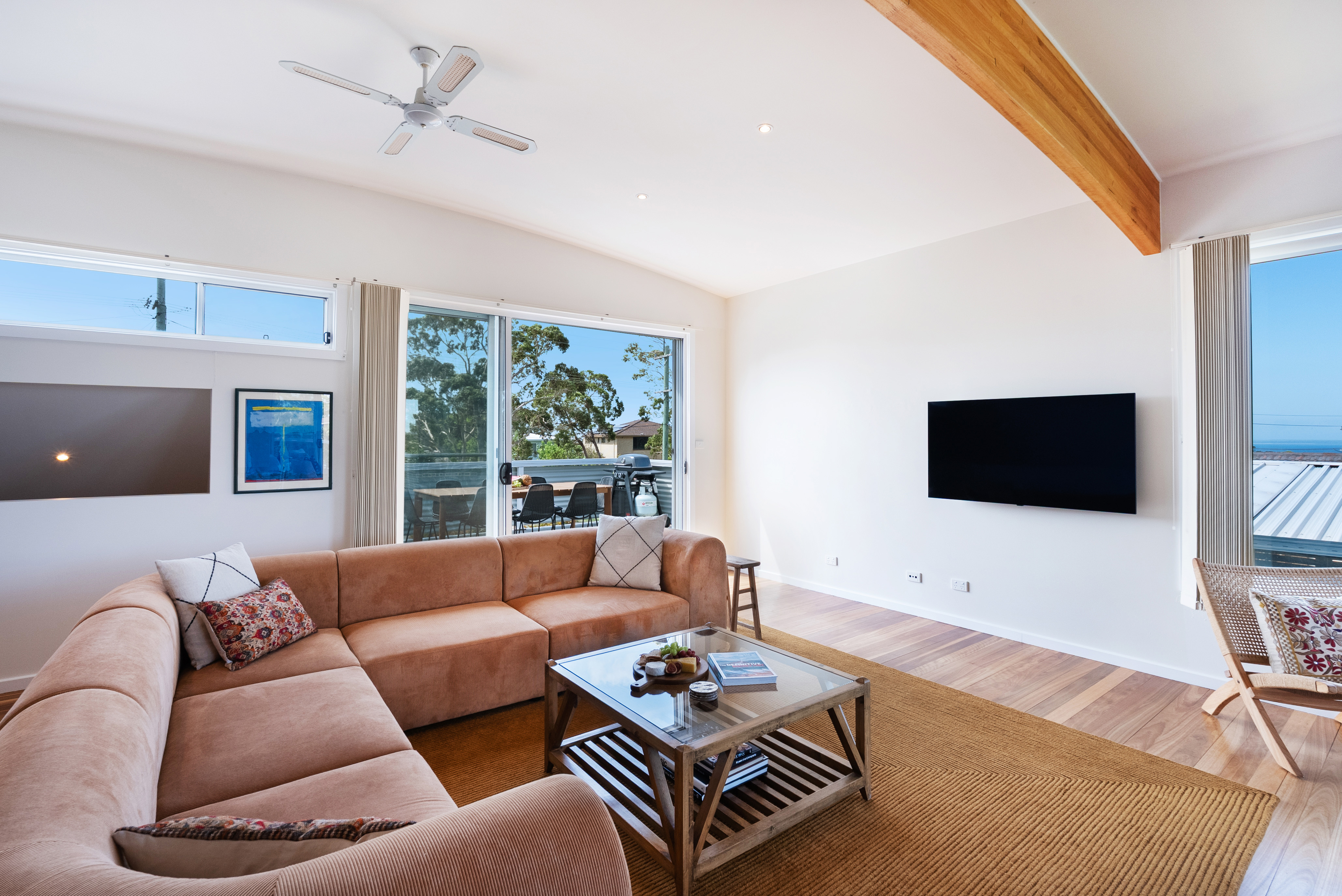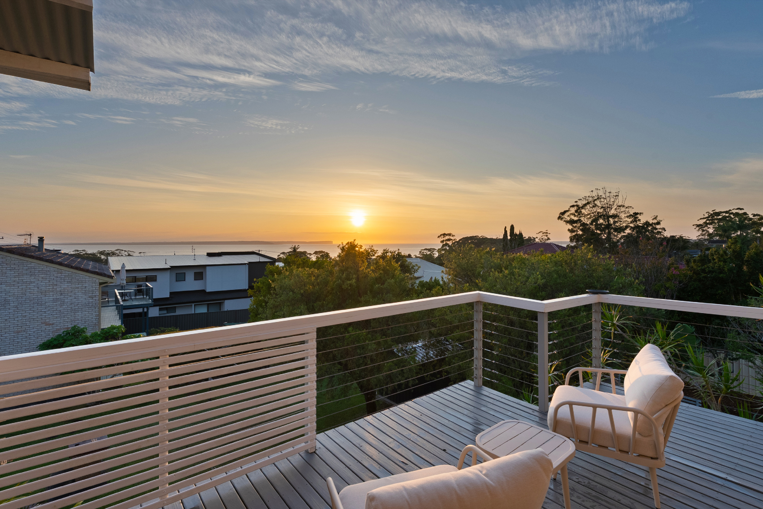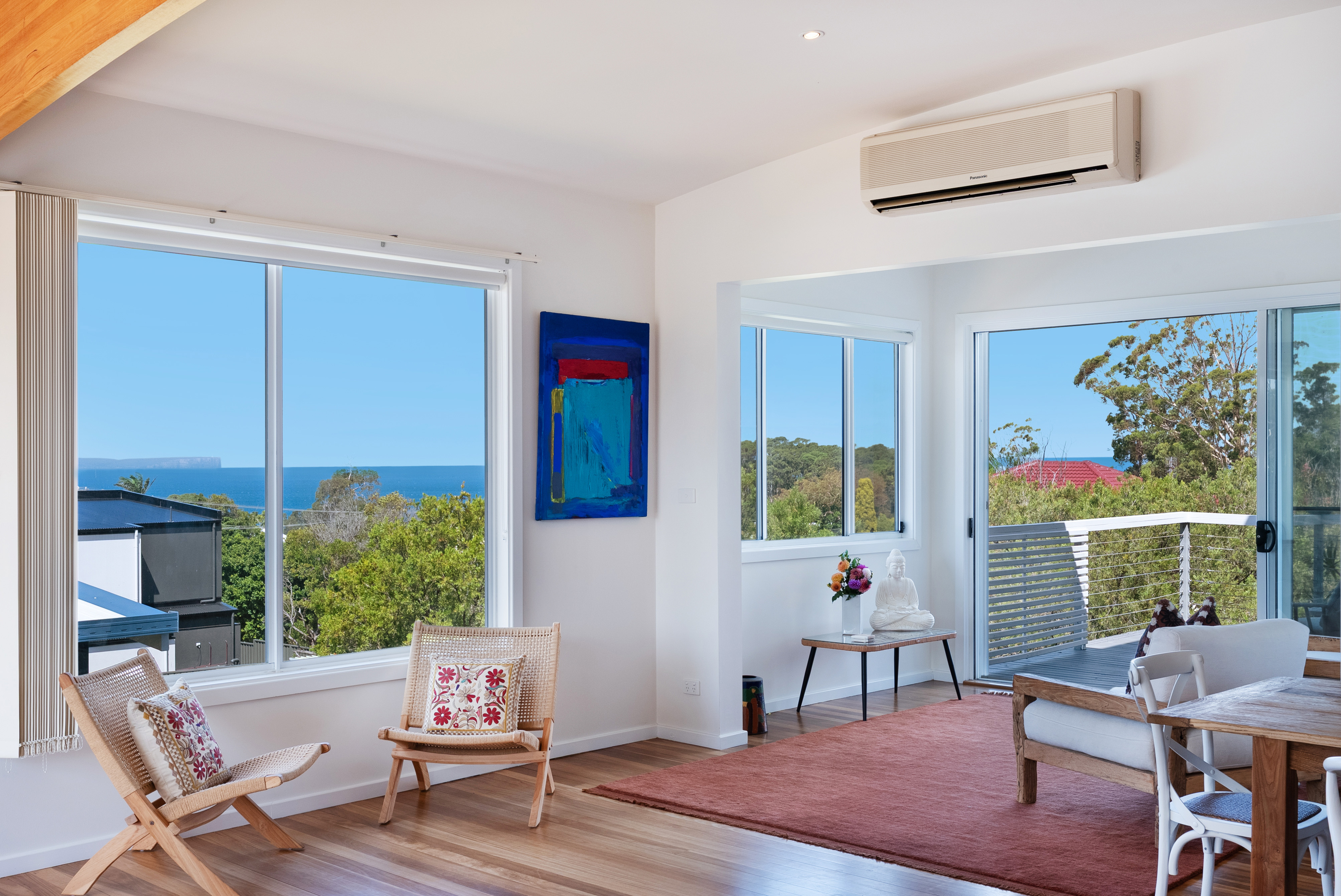 Get ready to take a breath, relax and soak up Jervis Bay from Halo, a simple heavenly stay overlooking beautiful Jervis Bay. Enjoy stunning views of Jervis Bay and Point Perpendicular - the iconic cliffs at the north entrance of the bay - whilst being just a few minutes walk to the white sandy beaches and local amenities. With endless natural light, high ceilings, multiple living spaces and numerous alfresco areas, there is room for everyone to spread out and unwind. Whilst with each of the four bedrooms boasting its own private ensuite bathroom, this large, two storey home is perfect for those wishing to travel together but enjoy their own space and privacy. Adorned with beautiful artwork - including many locally sourced pieces, stunning new furnishings and creative decor, the house has a relaxed, beach boho feel. Whilst comfort and convenience have been thought of throughout - think a large lounge you'll never want to leave, luxury bedding, fully equipped kitchen and all the amenities you could need. Outside, alongside multiple balconies with alfresco dining and lounging areas enjoying incredible views, enjoy a feeling of space and privacy in the mature gardens and deck, all on Halos' large 800 square meter block. Did we tell you enough about the view? Wake to the sunrise over the water and soak up the views all day! In winter, you may even see whales entering the Bay on their annual migration. In the evenings, catch the moon rising over the headland. Or whatever the time or season, just enjoy the beauty of Point Perpendicular. All this just a short walk to two of Jervis Bay's best beaches - Orion and Nelson, White Sands Walk to Hyams Beach and the concreted path to Huskisson you're in the centre of everything Jervis Bay has to offer. It's a lovey easy walk to local shops, cafes and take aways and an easy drive to Huskisson's buzzing breweries, boutique shops, dolphin and whale watching tours as well as the Booderee National Park. You will love Halo! * Best bits of Halo * - Elevated panoramic Jervis Bay views - Incredibly spacious home boasting four bedrooms all with their own ensuite bathroom - one with a spa bath! - Multiple living spaces, large open plan living and dining area with incredible views, second lounge/rumpus room - Ideal for intergenerational groups or couples travelling together and looking for privacy. Downstairs there are two ensuite bedrooms and large lounge area, upstairs a further two ensuite bedrooms, main living area, kitchen and break out spaces - Lower footprint travel - Halo has solar power. We also have a water filter system meaning all water in the house is filtered - Smart TVs in both lounge rooms, Wifi - High quality, stylish, new furniture, beautiful artwork and decor - Peaceful, leafy block with mature gardens, plenty of space and privacy. Multiple balconies and decks, alfresco dining and lounging spaces and BBQ - Fully equipped kitchen, gas stove, Nespresso coffee machine, microwave, dishwasher, kettle and toaster - All luxury linen, towels and spare beach towels provided - Tea, coffee, basic pantry supplies, natural cleaning products & luxury Two Good Co toiletries provided. Local barista coffee voucher, handmade chocolates and Silos Estate wine for every stay - The very insider local tips shared in our in house magazine * Need to know * - Four ensuite bedrooms with private bathrooms - 2 king, 1 queen, 1 king single - Internal laundry with washing machine and dryer - Air conditioning upstairs, pedestal fans - Fenced backyard - Large driveway with easy parking