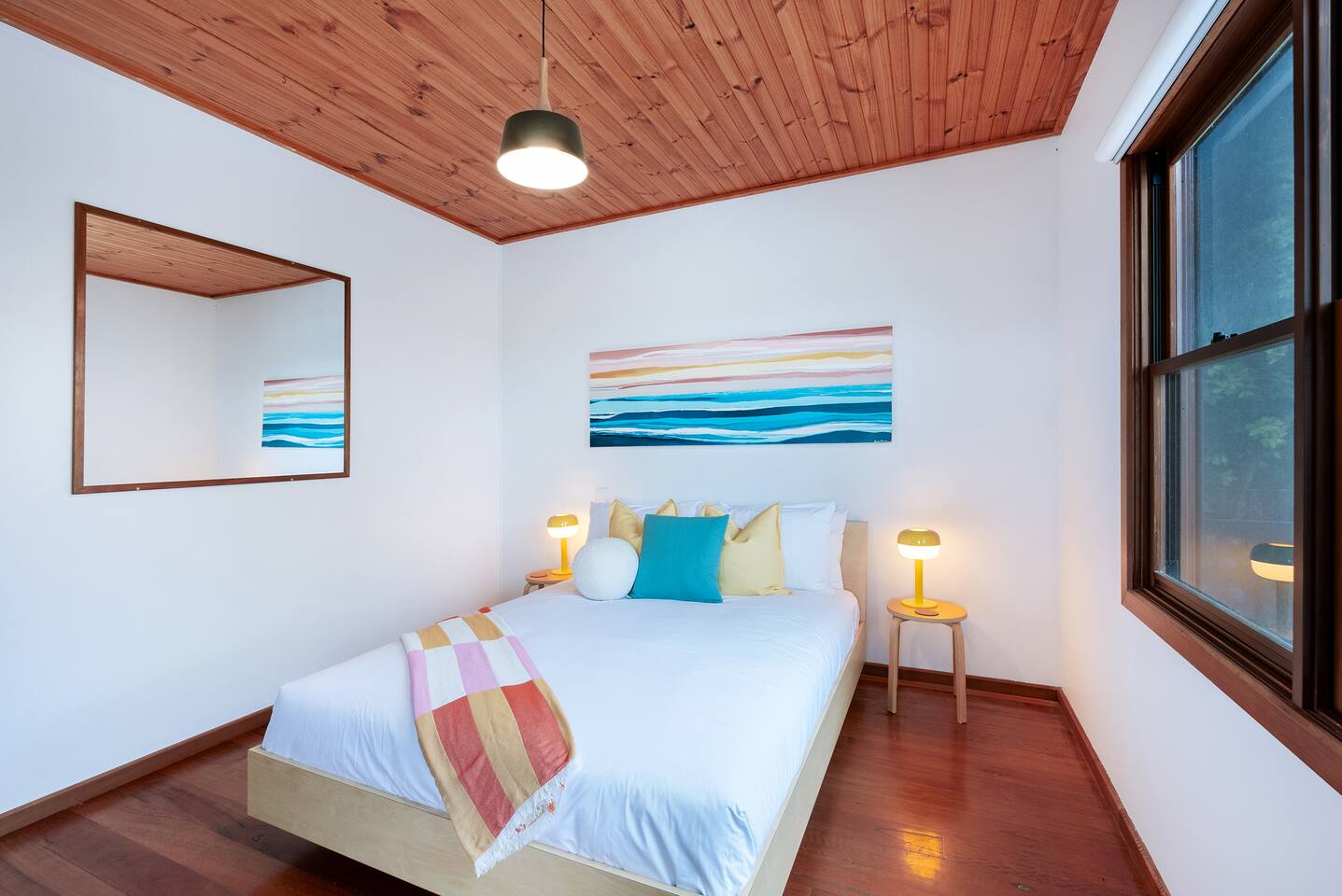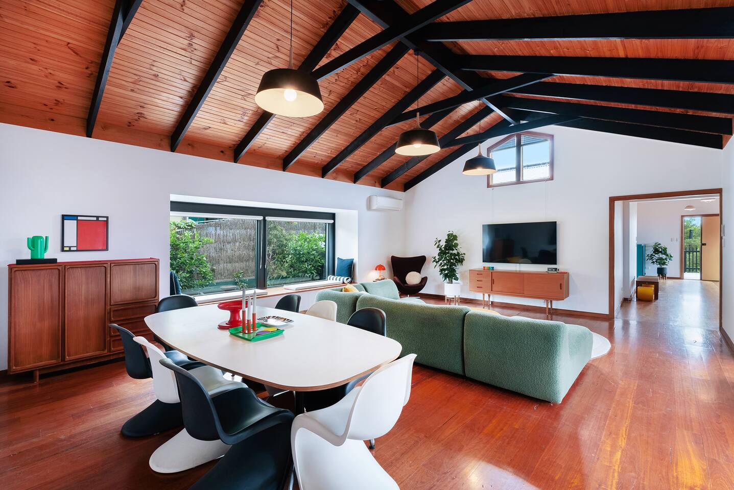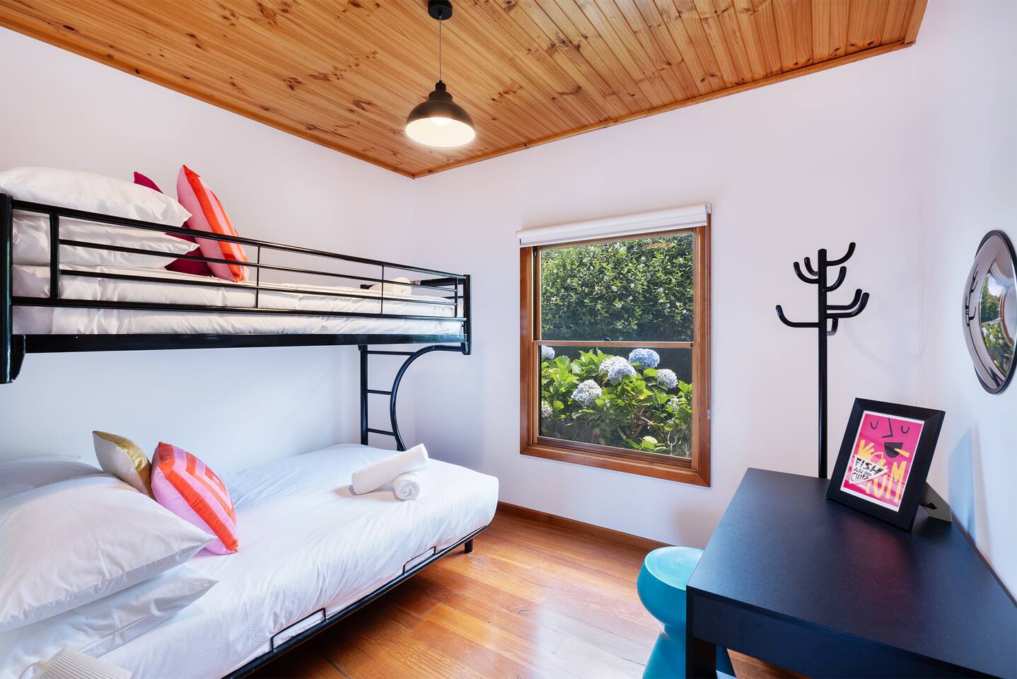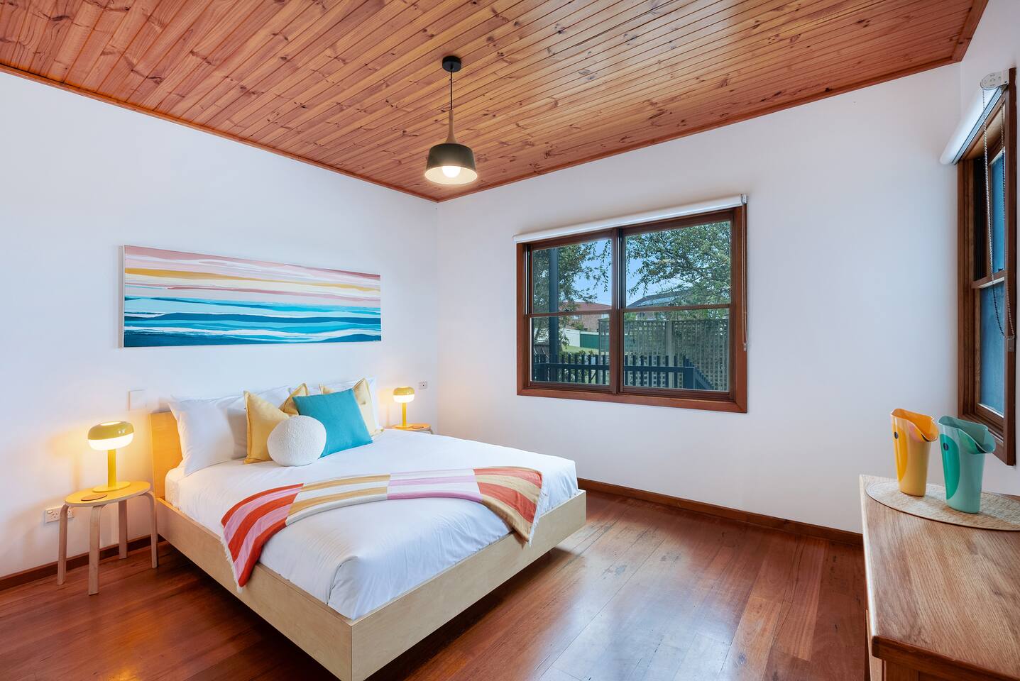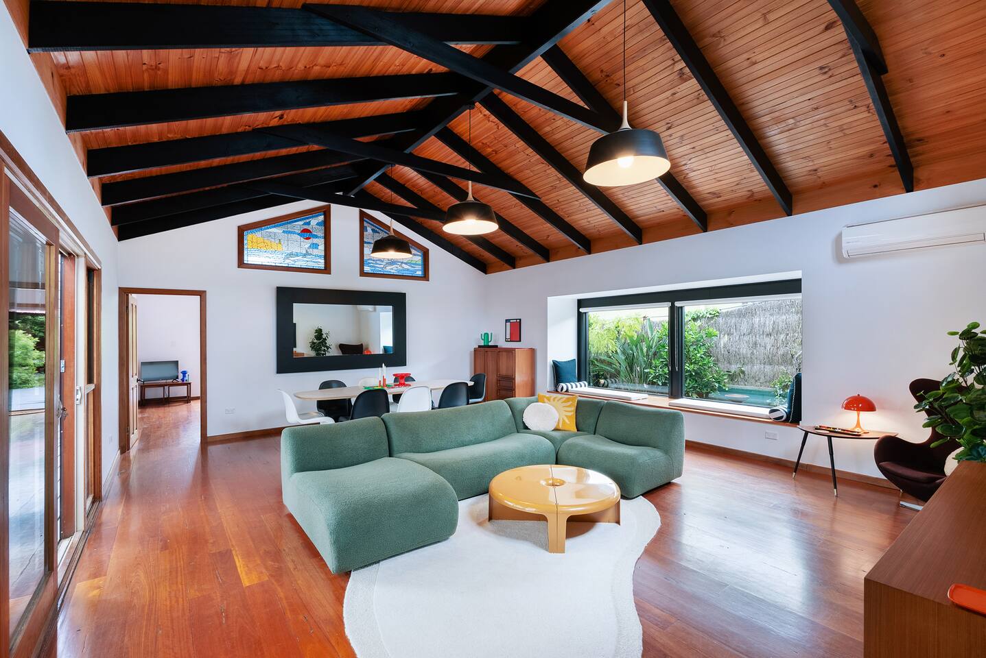 Space, style & a stunning location await at Lois. A beautiful, creative & thoughtfully reconditioned home just a short stroll from Jervis Bay's best white sandy beaches. With its striking black exterior, crisp white walls & stunning timber cathedral ceiling, Lois has instant wow factor. Whilst its choice of retro furnishing, pops of colour & carefully curated artworks make this a unique & quite simply cool stay. Walk to Vincentia's beaches & cafes or take a short drive to Huskisson & Hyams Beach