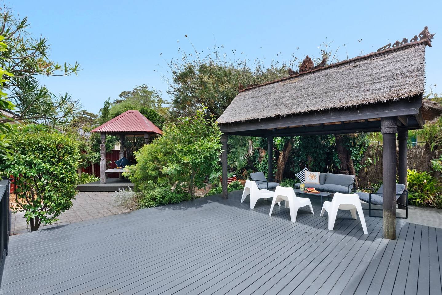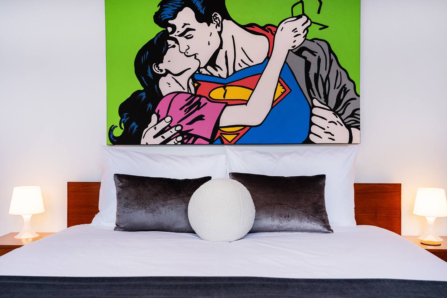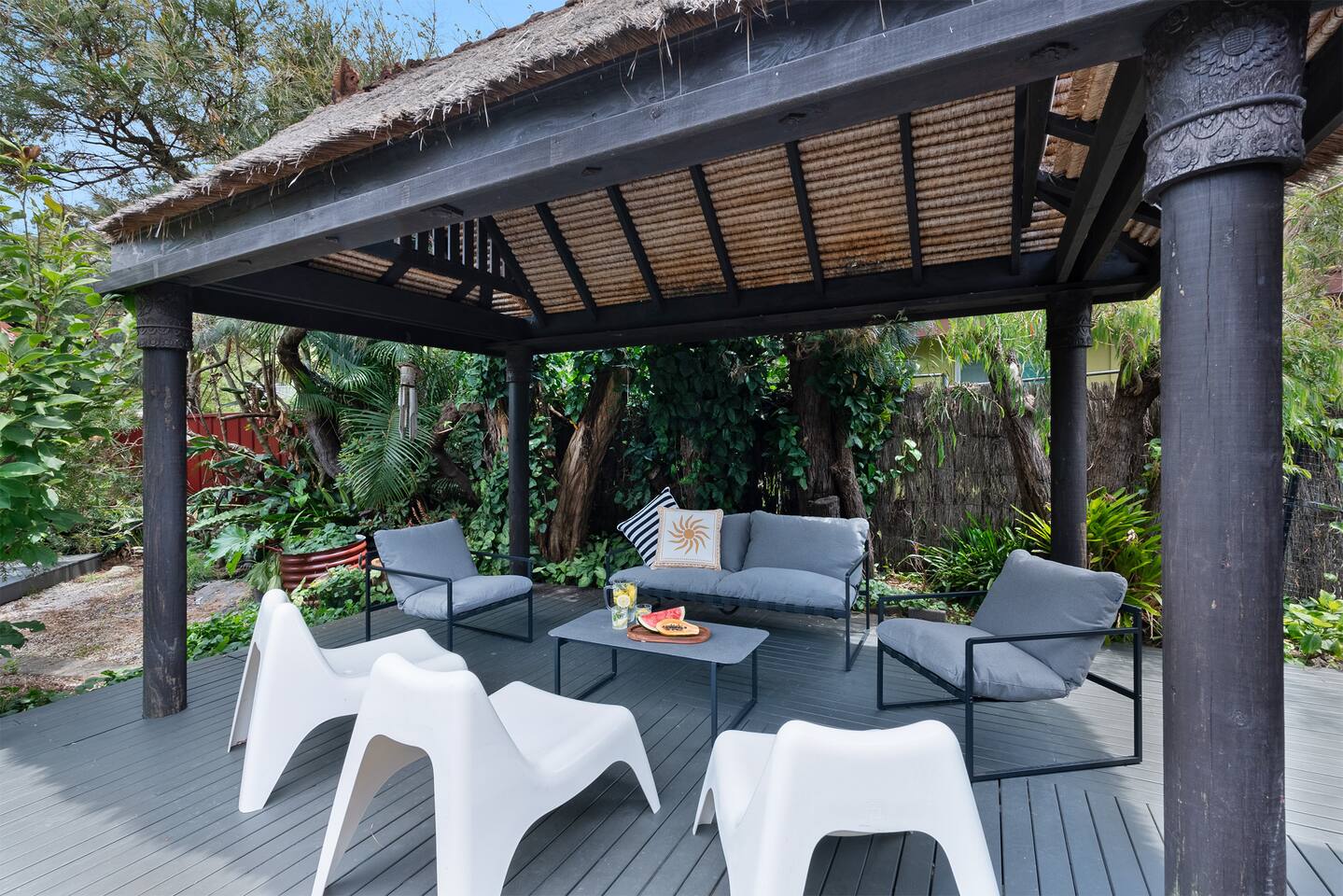 Lois - named after the infinitely cool and beautiful Lois Lane from the Superman stories - is just that. An artistic and striking home that stands out from the crowd. It's been lovingly restored with thoughtful design choices to create a unique, comfortable and stylish space. Managed by The FAM Holiday Property Management in Jervis Bay. Where possible, furniture has been up-cycled whilst all the essentials like luxury new mattresses, linen and couches have been chosen for maximum comfort. Dressed in elegant black on the outside as you drive up to the front door you'll be instantly attracted to Lois, whilst the ocean air and views from the street of Jervis Bay's crystal clear water are sure to relax you. Inside this property is spacious with an oversized living/dining area, incredible cathedral timber ceiling, large master suite and two further bedrooms. Interior design is creative and on point with pops of colour and eye catching artworks. Whilst outside two decks and a shady cabana mean there is space to relax, entertain and soak up the best of alfresco living in beautiful Jervis Bay. * Best bits of Lois * - Unique, stylish and full of beautiful things - Spacious inside and out, drenched in natural light and high ceilings - Refreshed renovation celebrates the original charm of this one of a kind property - Oversized master suite opening onto back deck and cabana - Fully equipped, large modern kitchen with Nespresso coffee machine - All luxury linen, towels and spare beach towels provided - Stroll to Nelson or Orion Beach, moments to the start of the beautiful White Sands Walking track and waterside footpath to Hyams Beach and Huskisson - Walk or very short drive to Vincentia's shops and cafes. A little over 5-10 minutes drive to Huskisson, Hyams Beach and the Booderee National Park - Tea, coffee, basic pantry supplies, natural cleaning products & luxury Two Good Co toiletries provided. Local barista coffee voucher, handmade chocolates and Silos Estate wine for every guest - The very insider local tips shared in our in house magazine * Need to know * - Sleeps 7 in 3 bedrooms, 1 king master, 1 queen and 1 bunk with double/single combo - Wifi, 2 Smart TVs, DVD player - Split system AC in master and living room, further pedestal fans - 2 bathrooms, original but well maintained. 1 is the ensuite to the master with shower and toilet and the second is the main bathroom with sunk bath and shower over bath