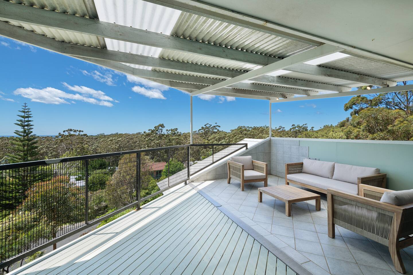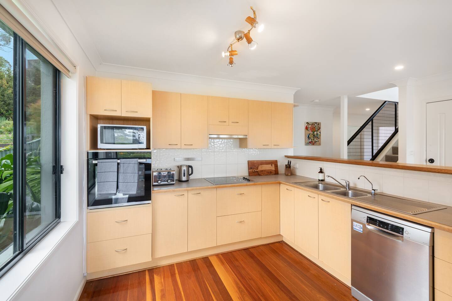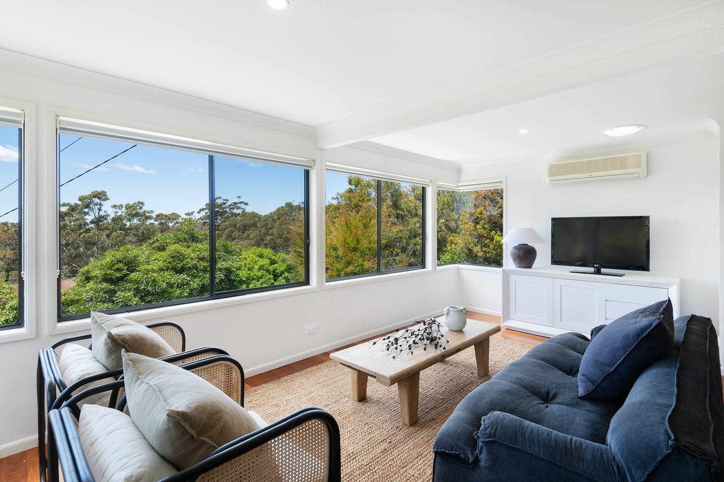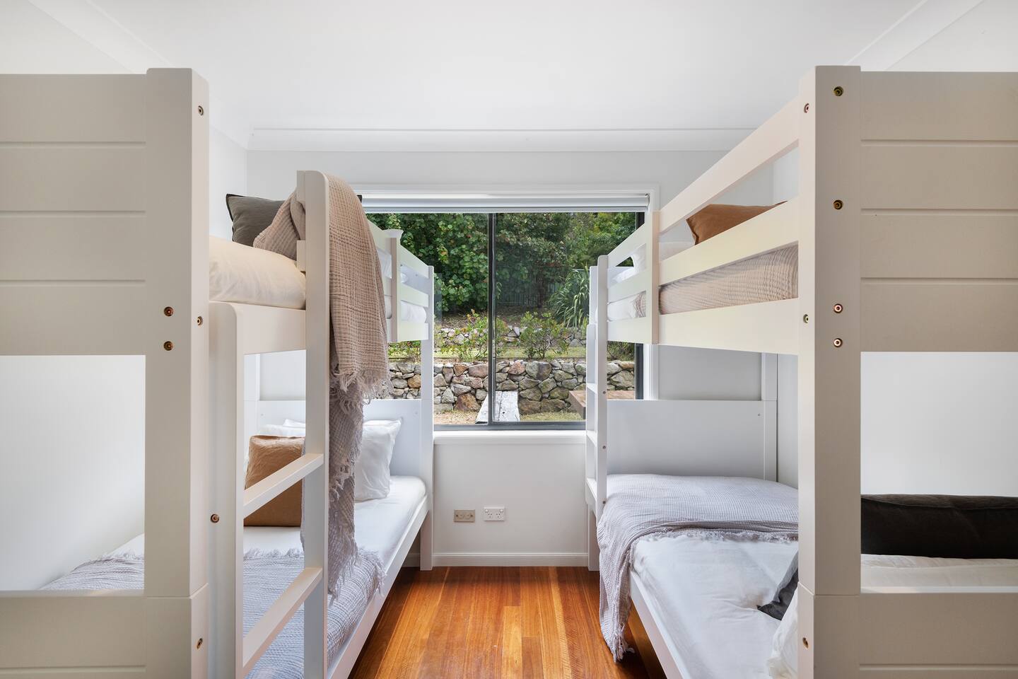 Lorikeet, managed by The FAM Holiday Property Management in Jervis Bay, is a relaxed, comfortable and stylish beach house, perfect to come together with friends and family to enjoy the best of Jervis Bay. On one of the leafiest streets in Vincentia, nestled by the bush and perched above Blenheim Beach you’ll feel a million miles away from the hustle and bustle of everyday life, yet have easy access to local shops, cafes and restaurants. Enjoy incredible sunrises across views of Jervis Bay National Park and and soak up this very leafy, relaxed property. The house itself is large, drenched with natural light, boasts beautiful views and high ceilings. Split across two levels, you’ll feel immersed in nature above the treetops whilst enjoying plenty of space for everyone to relax. An older style but refreshed house with all new furnishings, Lorikeet will make you feel relaxed, yet comfortable and indulged. There’s a rustic, coastal feel, with linens, rattan and driftwood defining the interior style and focus on all the things that really matter – comfy beds, beautiful furniture and styling as well as everything you need for a family holiday. * Best bits of Lorikeet * - Situated near Jervis Bay’s most peaceful and beautiful beaches where the greens of Jervis Bay National Park meet white sands and crystal clear turquoise waters, yet only a short drive to Vincentia and Huskisson for shops, cafes, restaurants and breweries - Multiple light drenched living areas giving everyone space to relax. Both boast wraparound views of the Bay, bushland and out to Point Perpendicular at the north of Jervis Bay, but also feature TVs if you ever get bored of the view! - Beautifully styled with a relaxed, coastal vibe. All new comfortable and beautiful furniture, highest quality soft furnishings, hotel quality linen and towels - Open plan kitchen, dining, lounge area downstairs, making social cooking or relaxed meals easy. The kitchen is an older style but well maintained and fully equipped, featuring oven, stove, microwave, dishwasher, kettle and toaster - Huge king bed master suite with his/hers walk in wardrobe and ensuite - Mature, large garden with patio, outdoor dining area, BBQ & fire pit as well as large elevated undercover upper deck with lounge providing multiple alfresco living opportunities - Home office space with desk, Wifi - Tea, coffee, basic pantry supplies, natural cleaning products & luxury Two Good Co toiletries provided. Local barista coffee voucher, handmade sweet treat and Silos Estate wine for every guest - All linen and bath towels provided, spare beach towels - AC downstairs and ceiling fan upstairs - Near White Sands Walk, an incredible waterside bush track that leads to Hyams Beach or can be joined to the Vincentia to Huskisson walking track, taking in multiple white sand beaches before arriving in the bustling town of Huskisson - The very insider local tips shared in our in house magazine * Need to know * - Sleeps 12 plus infants (travel cot and highchair available). We prefer a max of 8 adults and 4 children. Any groups with more than 8 adults must send a request before booking. This house is not suitable for young or party groups - 5 bedrooms including 1 king with large walk in and ensuite, 3 queens and 1 bunk room with 4 single beds. Upstairs you’ll find the master king room and 1 queen, whilst the further 2 queens and bunk room are situated downstairs - 2 bathrooms, 1 on each level. Note the upper bathroom is the ensuite to the master bedroom. Additional toilet in laundry - Two living areas both with TVs - one TV is just free to air and the other has an Apple TV connection to access apps. Downstairs lounge area by open plan kitchen / dining space. Upstairs a further large lounge area features home office space - Internal laundry with washer and dryer - Off street parking on our driveway - Note this is an older property but well maintained and with brand new furniture, décor and styling meaning you’ll feel comfortable yet relaxed - Pets are welcome - on the condition that guests discuss their pet and its suitability with us in advance. Pets must not go upstairs (on carpet) or on furniture. There is plenty of space downstairs for them and in our fenced yard. All pet mess must be cleaned up and any excessive dirt or damage will be charged.