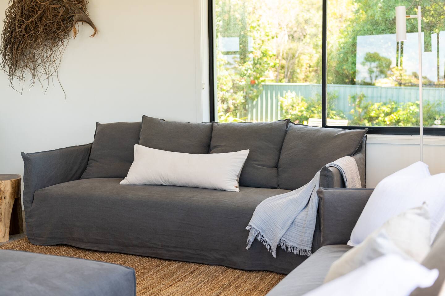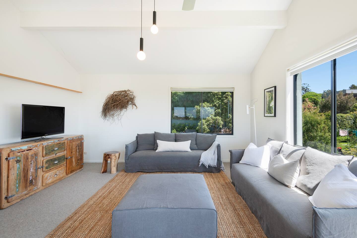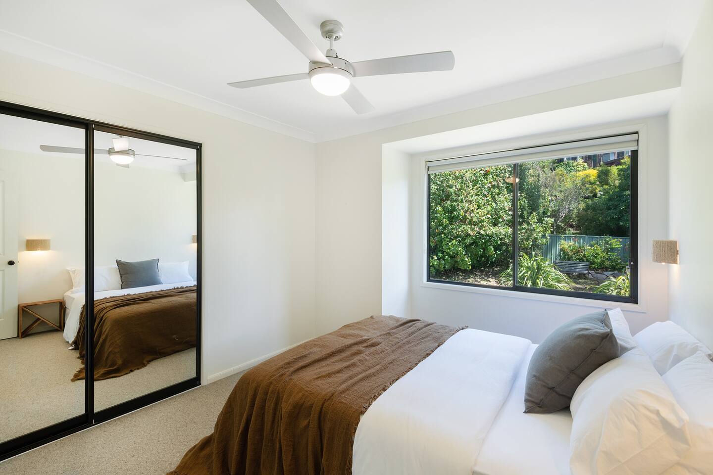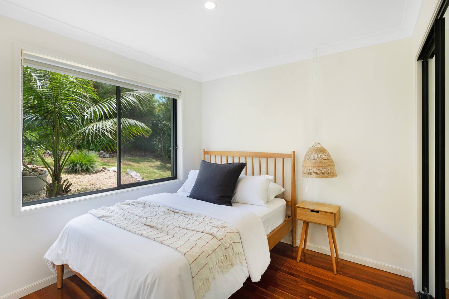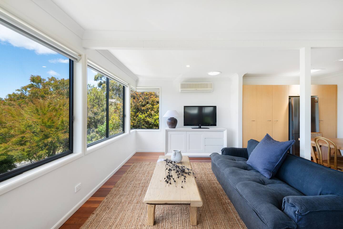 Lorikeet, managed by The FAM Holiday Property Management in Jervis Bay, is a relaxed, comfortable and stylish beach house, perfect to come together with friends and family to enjoy the best of Jervis Bay. On one of the leafiest streets in Vincentia, nestled by the bush and perched above Blenheim Beach you’ll feel a million miles away from the hustle and bustle of everyday life, yet have easy access to local shops, cafes and restaurants. Enjoy incredible sunrises across views of Jervis Bay National Park and and soak up this very leafy, relaxed property. The house itself is large, drenched with natural light, boasts beautiful views and high ceilings. Split across two levels, you’ll feel immersed in nature above the treetops whilst enjoying plenty of space for everyone to relax. An older style but refreshed house with all new furnishings, Lorikeet will make you feel relaxed, yet comfortable and indulged. There’s a rustic, coastal feel, with linens, rattan and driftwood defining the interior style and focus on all the things that really matter – comfy beds, beautiful furniture and styling as well as everything you need for a family holiday. * Best bits of Lorikeet * - Situated near Jervis Bay’s most peaceful and beautiful beaches where the greens of Jervis Bay National Park meet white sands and crystal clear turquoise waters, yet only a short drive to Vincentia and Huskisson for shops, cafes, restaurants and breweries - Multiple light drenched living areas giving everyone space to relax. Both boast wraparound views of the Bay, bushland and out to Point Perpendicular at the north of Jervis Bay, but also feature TVs if you ever get bored of the view! - Beautifully styled with a relaxed, coastal vibe. All new comfortable and beautiful furniture, highest quality soft furnishings, hotel quality linen and towels - Open plan kitchen, dining, lounge area downstairs, making social cooking or relaxed meals easy. The kitchen is an older style but well maintained and fully equipped, featuring oven, stove, microwave, dishwasher, kettle and toaster - Huge king bed master suite with his/hers walk in wardrobe and ensuite - Mature, large garden with patio, outdoor dining area, BBQ & fire pit as well as large elevated undercover upper deck with lounge providing multiple alfresco living opportunities - Home office space with desk, Wifi - Tea, coffee, basic pantry supplies, natural cleaning products & luxury Two Good Co toiletries provided. Local barista coffee voucher, handmade sweet treat and Silos Estate wine for every guest - All linen and bath towels provided, spare beach towels - AC downstairs and ceiling fan upstairs - Near White Sands Walk, an incredible waterside bush track that leads to Hyams Beach or can be joined to the Vincentia to Huskisson walking track, taking in multiple white sand beaches before arriving in the bustling town of Huskisson - The very insider local tips shared in our in house magazine * Need to know * - Sleeps 12 plus infants (travel cot and highchair available). We prefer a max of 8 adults and 4 children. Any groups with more than 8 adults must send a request before booking. This house is not suitable for young or party groups - 5 bedrooms including 1 king with large walk in and ensuite, 3 queens and 1 bunk room with 4 single beds. Upstairs you’ll find the master king room and 1 queen, whilst the further 2 queens and bunk room are situated downstairs - 2 bathrooms, 1 on each level. Note the upper bathroom is the ensuite to the master bedroom. Additional toilet in laundry - Two living areas both with TVs - one TV is just free to air and the other has an Apple TV connection to access apps. Downstairs lounge area by open plan kitchen / dining space. Upstairs a further large lounge area features home office space - Internal laundry with washer and dryer - Off street parking on our driveway - Note this is an older property but well maintained and with brand new furniture, décor and styling meaning you’ll feel comfortable yet relaxed - Pets are welcome - on the condition that guests discuss their pet and its suitability with us in advance. Pets must not go upstairs (on carpet) or on furniture. There is plenty of space downstairs for them and in our fenced yard. All pet mess must be cleaned up and any excessive dirt or damage will be charged.