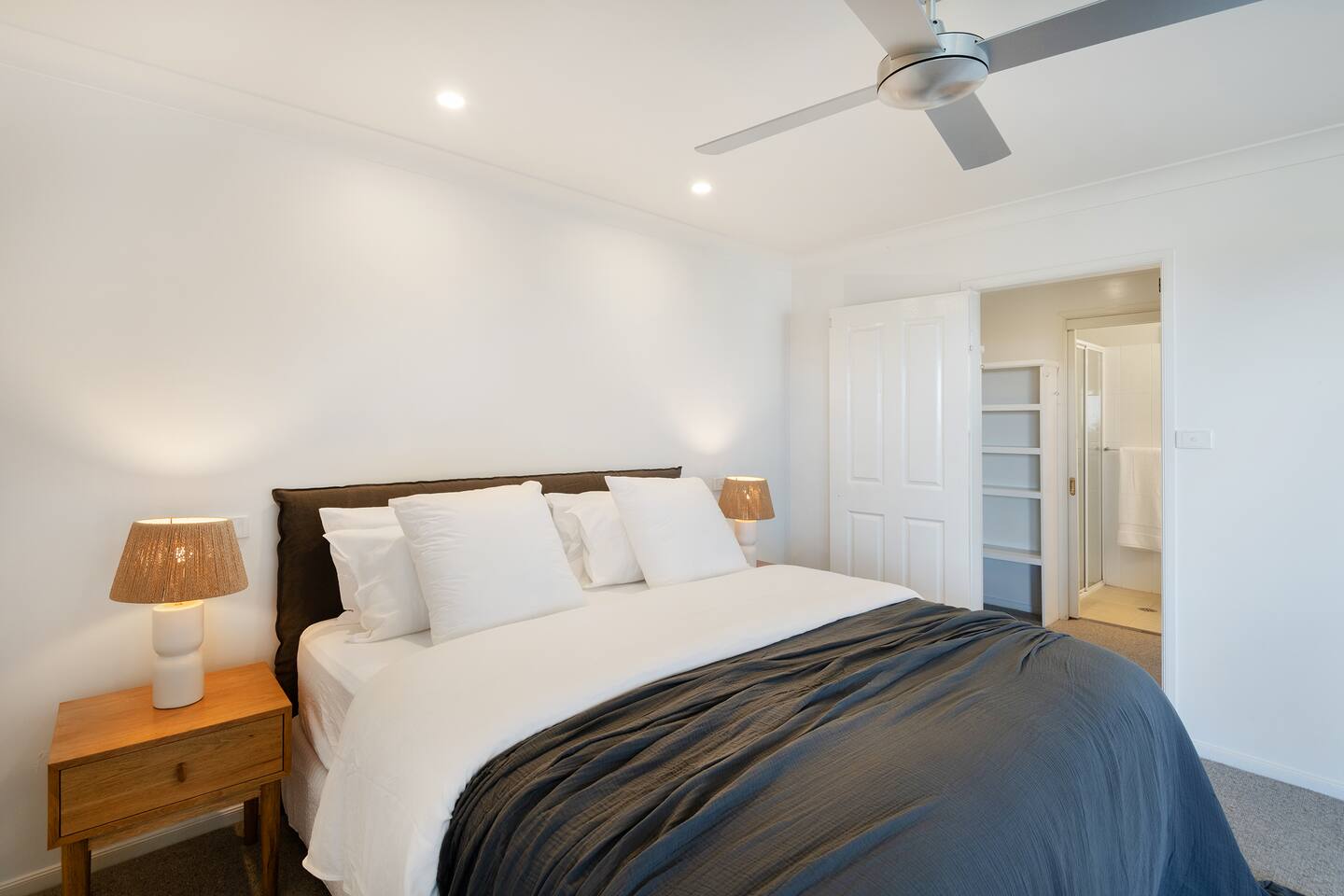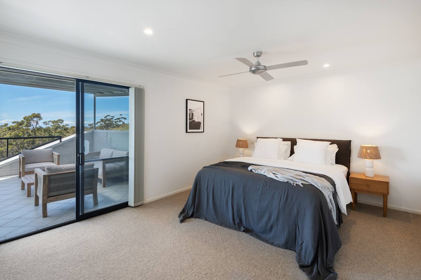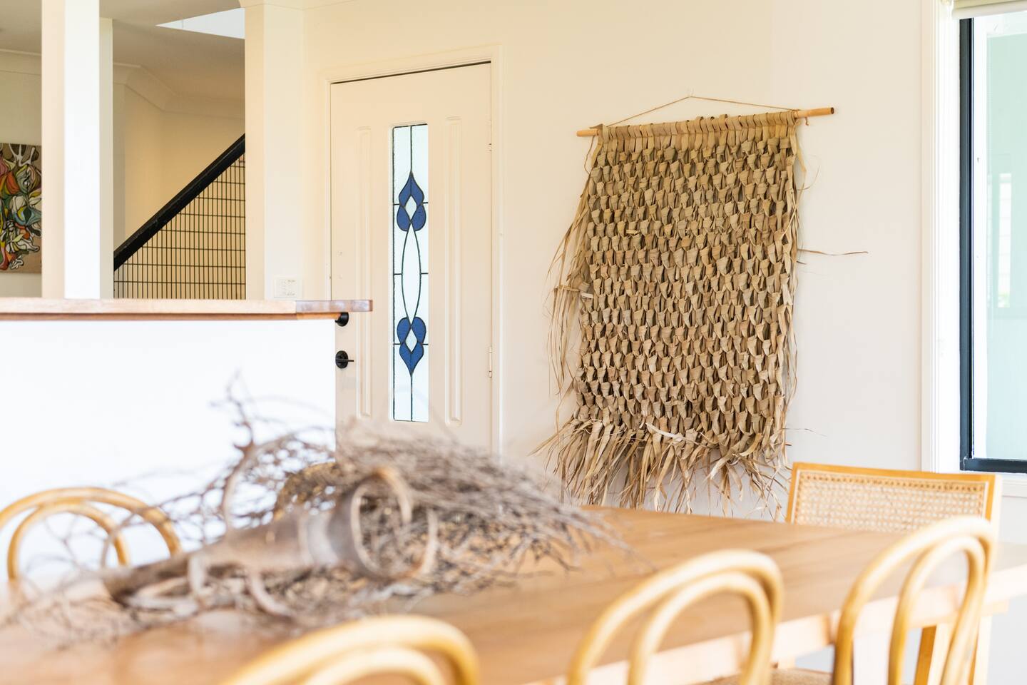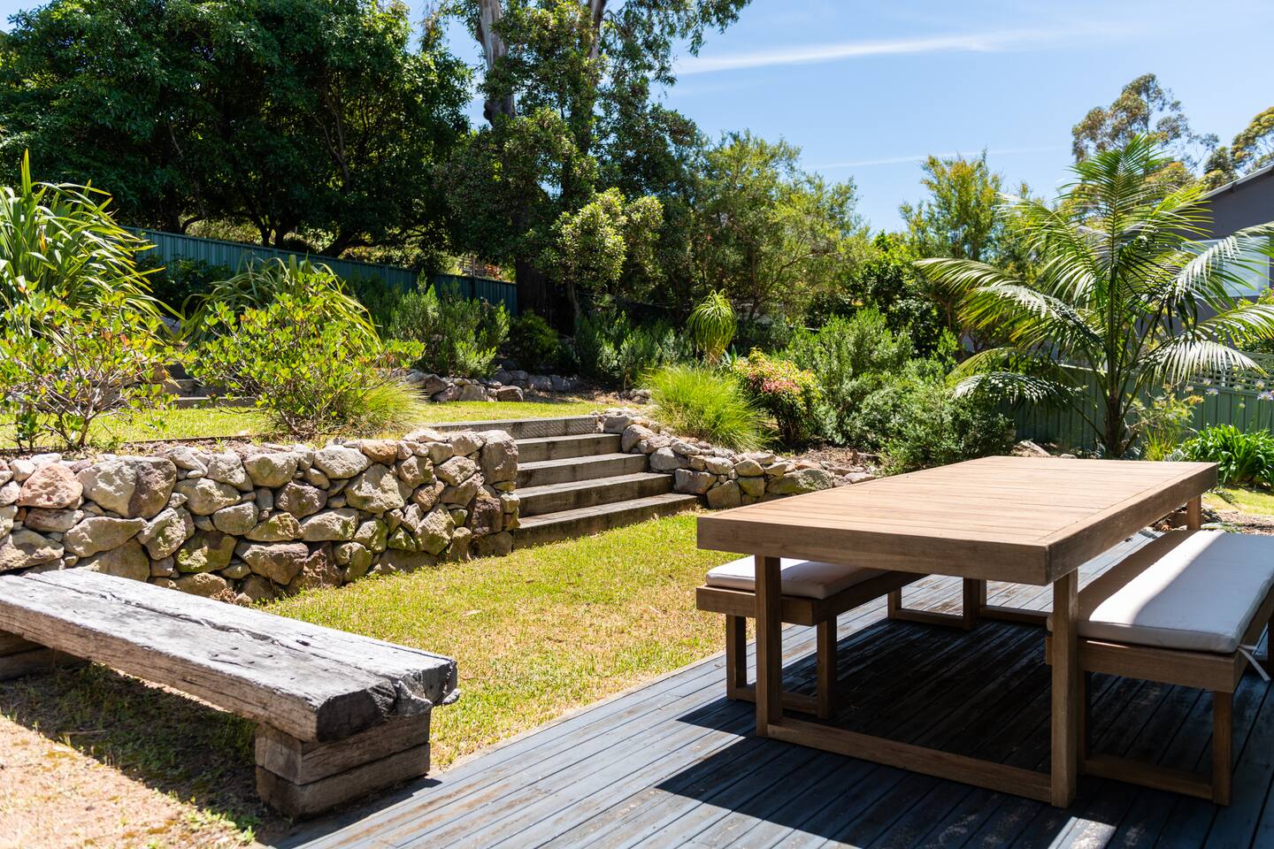 Lorikeet, managed by The FAM Holiday Property Management in Jervis Bay, is a relaxed, comfortable and stylish beach house, perfect to come together with friends and family to enjoy the best of Jervis Bay. On one of the leafiest streets in Vincentia, nestled by the bush and perched above Blenheim Beach you’ll feel a million miles away from the hustle and bustle of everyday life, yet have easy access to local shops, cafes and restaurants. Enjoy incredible sunrises across views of Jervis Bay National Park and and soak up this very leafy, relaxed property. The house itself is large, drenched with natural light, boasts beautiful views and high ceilings. Split across two levels, you’ll feel immersed in nature above the treetops whilst enjoying plenty of space for everyone to relax. An older style but refreshed house with all new furnishings, Lorikeet will make you feel relaxed, yet comfortable and indulged. There’s a rustic, coastal feel, with linens, rattan and driftwood defining the interior style and focus on all the things that really matter – comfy beds, beautiful furniture and styling as well as everything you need for a family holiday. * Best bits of Lorikeet * - Situated near Jervis Bay’s most peaceful and beautiful beaches where the greens of Jervis Bay National Park meet white sands and crystal clear turquoise waters, yet only a short drive to Vincentia and Huskisson for shops, cafes, restaurants and breweries - Multiple light drenched living areas giving everyone space to relax. Both boast wraparound views of the Bay, bushland and out to Point Perpendicular at the north of Jervis Bay, but also feature TVs if you ever get bored of the view! - Beautifully styled with a relaxed, coastal vibe. All new comfortable and beautiful furniture, highest quality soft furnishings, hotel quality linen and towels - Open plan kitchen, dining, lounge area downstairs, making social cooking or relaxed meals easy. The kitchen is an older style but well maintained and fully equipped, featuring oven, stove, microwave, dishwasher, kettle and toaster - Huge king bed master suite with his/hers walk in wardrobe and ensuite - Mature, large garden with patio, outdoor dining area, BBQ & fire pit as well as large elevated undercover upper deck with lounge providing multiple alfresco living opportunities - Home office space with desk, Wifi - Tea, coffee, basic pantry supplies, natural cleaning products & luxury Two Good Co toiletries provided. Local barista coffee voucher, handmade sweet treat and Silos Estate wine for every guest - All linen and bath towels provided, spare beach towels - AC downstairs and ceiling fan upstairs - Near White Sands Walk, an incredible waterside bush track that leads to Hyams Beach or can be joined to the Vincentia to Huskisson walking track, taking in multiple white sand beaches before arriving in the bustling town of Huskisson - The very insider local tips shared in our in house magazine * Need to know * - Sleeps 12 plus infants (travel cot and highchair available). We prefer a max of 8 adults and 4 children. Any groups with more than 8 adults must send a request before booking. This house is not suitable for young or party groups - 5 bedrooms including 1 king with large walk in and ensuite, 3 queens and 1 bunk room with 4 single beds. Upstairs you’ll find the master king room and 1 queen, whilst the further 2 queens and bunk room are situated downstairs - 2 bathrooms, 1 on each level. Note the upper bathroom is the ensuite to the master bedroom. Additional toilet in laundry - Two living areas both with TVs - one TV is just free to air and the other has an Apple TV connection to access apps. Downstairs lounge area by open plan kitchen / dining space. Upstairs a further large lounge area features home office space - Internal laundry with washer and dryer - Off street parking on our driveway - Note this is an older property but well maintained and with brand new furniture, décor and styling meaning you’ll feel comfortable yet relaxed - Pets are welcome - on the condition that guests discuss their pet and its suitability with us in advance. Pets must not go upstairs (on carpet) or on furniture. There is plenty of space downstairs for them and in our fenced yard. All pet mess must be cleaned up and any excessive dirt or damage will be charged.