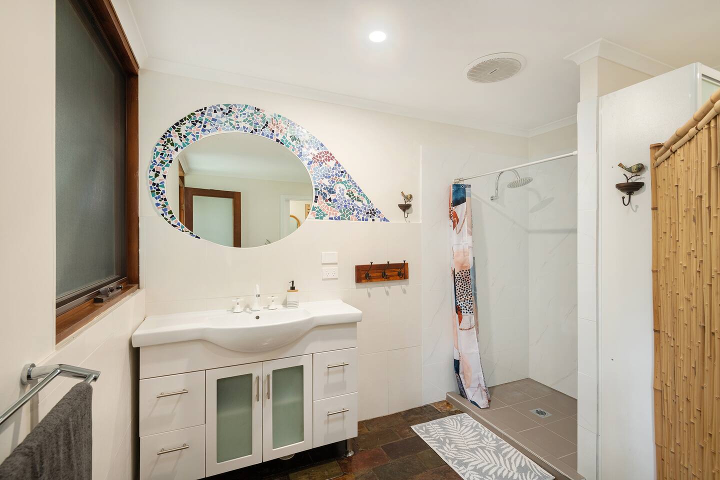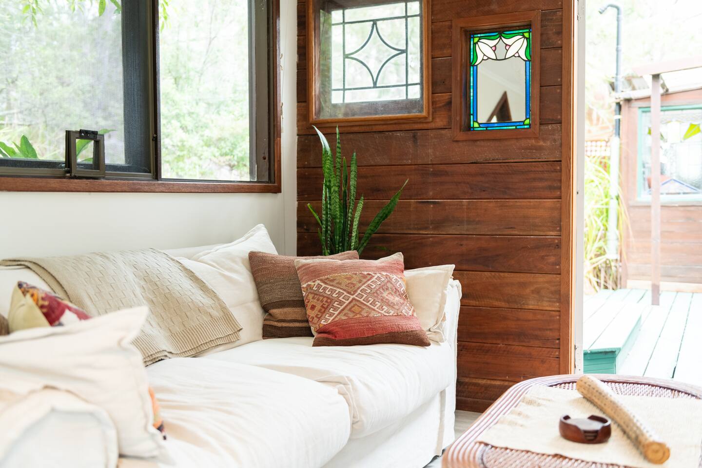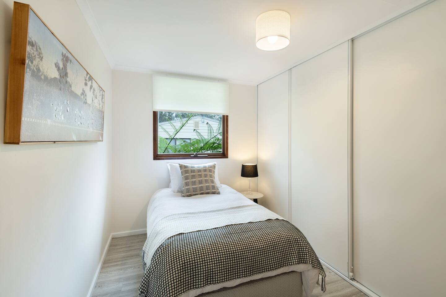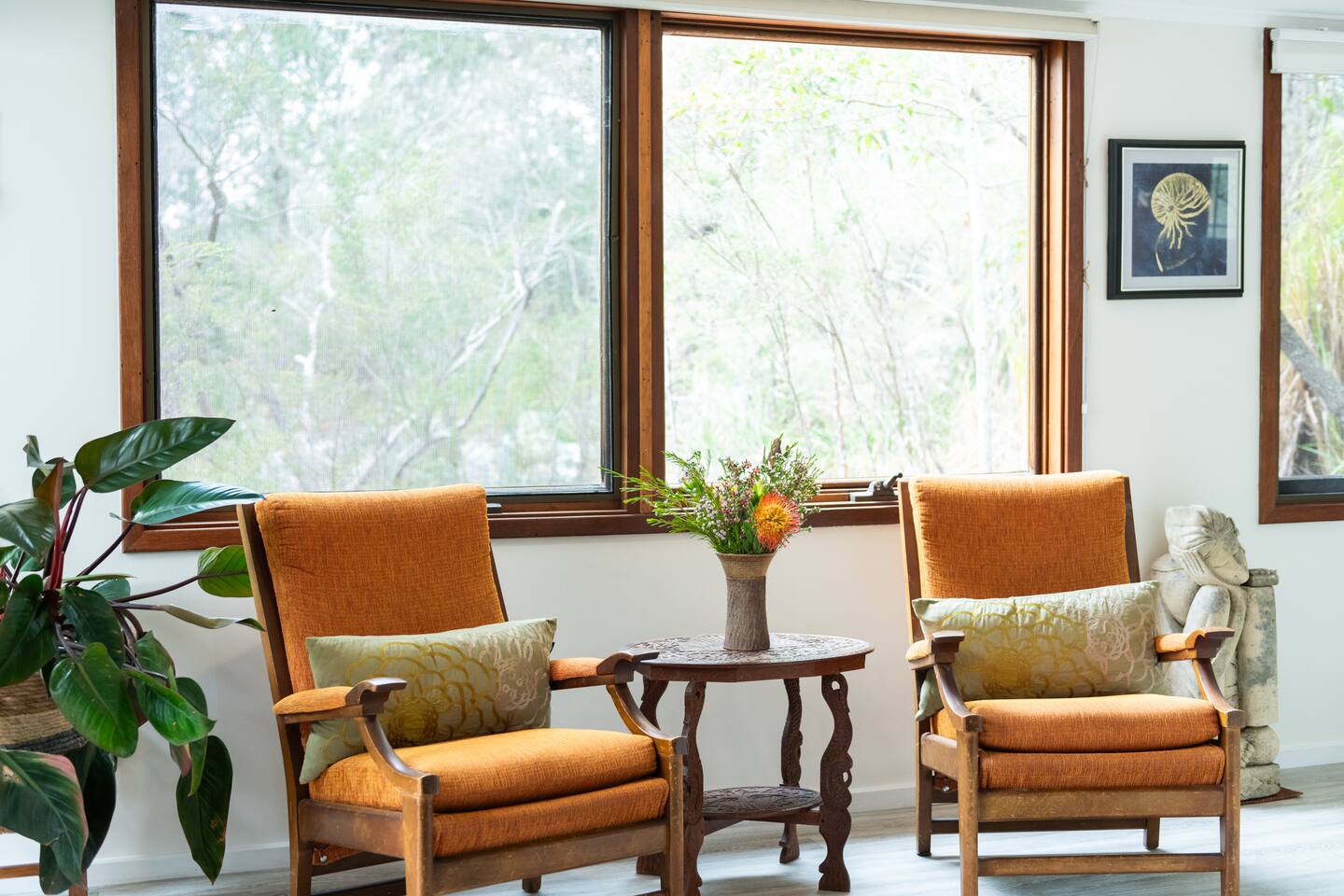 If you're looking for somewhere to truly relax in nature yet still be close to all that Jervis Bay & St Georges Basin have to offer, look no further than Meribella, managed by The FAM Holiday Property Management in Jervis Bay. You'll feel a million miles away from the hustle & bustle of life with daily visits from kangaroos & native birds as well as the tranquil sounds of the neighbouring Booderee National Park. Just a short stroll away, you'll find some of the best sunsets on the east coast of Australia over the water at Wrights Beach & be able to enjoy the peaceful waters of St Georges Basin to paddle, swim or boat. The house itself has been lovingly restored & renovated with a refreshed bathroom, new shower, brand new flooring, paintwork & a mix of new & restored furnishings. Its style has a designer's touch, with individual pieces carefully curated to celebrate the ocean - in honour of its name Meribella, meaning star of the sea - & nature that surrounds it. Sleeping 5 but with an oversized living area flowing onto an elevated deck & additional lounge, the house has plenty of space to enjoy & even more beauty to soak in. Please note Meribella is an adults only property - it is not suitable for children. Best bits of Meribella - Three bedroom bush cabin style home - 2 queen rooms & 1 king single - Spacious & bright with views to greenery all around the house. Multiple living spaces - Handpicked, unique style with beautifully curated, individual pieces of decor, art & furnishings that create a relaxed, stylish & intricate feel to the property - Recently renovated & lovingly restored property with charm & character - Wrap around upper deck & further back courtyard area nestled amongst bush views - Large, fully equipped kitchen with large dining area - Refreshed bathroom with shower & toilet - Large main living space, additional lounge & reading nook - All linen, towels, spare beach towels, basic household & toiletry products provided - Ten minutes from Hyams Beach, 15 from Huskisson - Beautiful evening skies with sunsets over the water of Wrights Beach just minutes away. 1 minute drive to boat ramp - In depth house magazine with extensive insider local tips to make the most of your stay Need to know - AC & gas heater - NBN Wifi, Smart TV - Washing machine - Being in a bush setting brings with it an abundance of wildlife - you are very likely to encounter possums, kookaburras, kangaroos, echidnas, lizards, insects & other wildlife. Please only choose us if you are comfortable in close proximity to wildlife & prepared to be entirely responsible for your own safety & never feed or approach wildlife