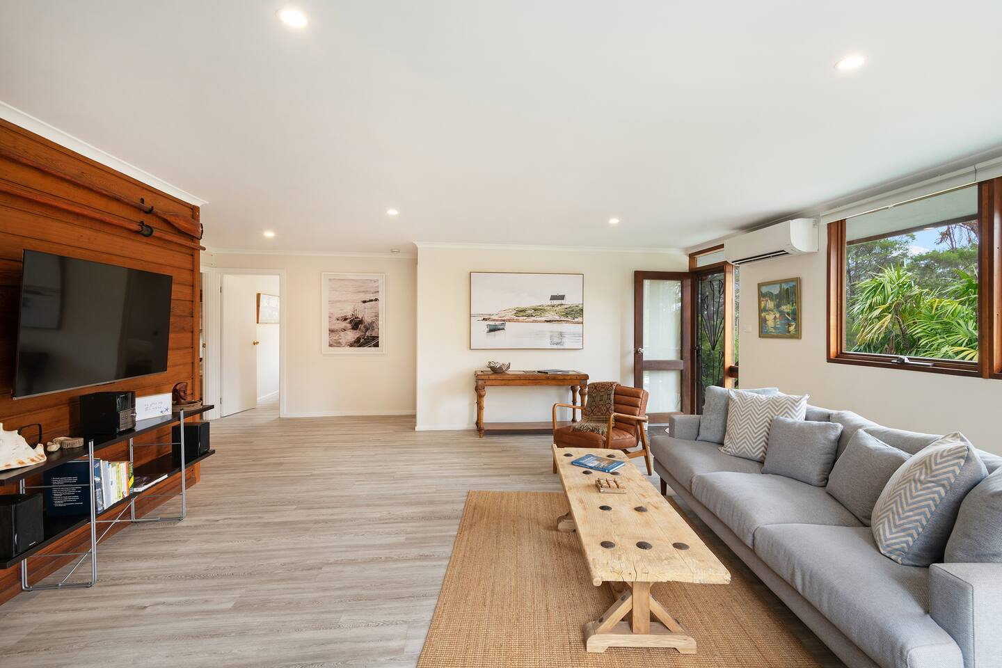 Escape it all at Meribella, a spacious, tranquil bush retreat by Booderee National Park & moments to the water at Wrights Beach. Meaning 'star of the sea', Meribella has been beautifully renovated & curated with tasteful, artistic design. Its hand picked style celebrates nature, design &, of course, the ocean, with Jervis Bay's famous white sandy beaches just a short drive. Its spacious multiple living areas & large kitchen/diner mean there's space for everyone to unwind in this peaceful haven.