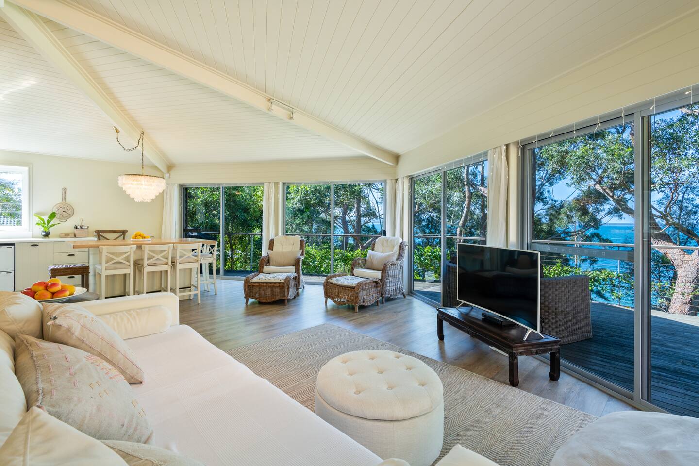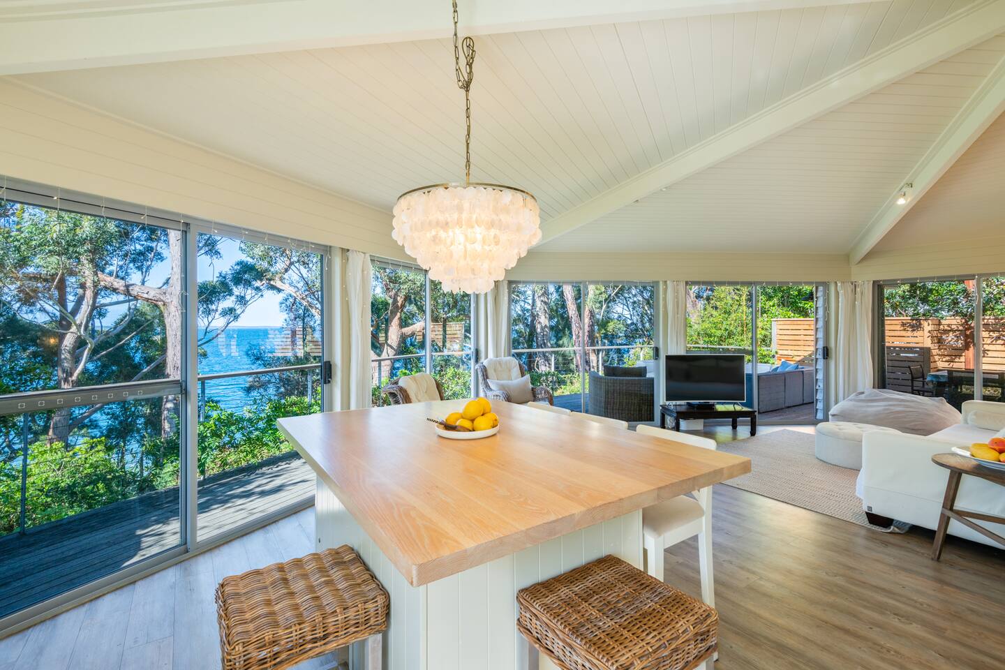 Dreaming of private steps to the beach? Make your dreams come true at Orion Sands, with Jervis Bay's best kept secret beach on your doorstep. Inside, enjoy spacious living & relaxed coastal style with sweeping water views. Wood panelling, pastel hues, driftwood & shells define the property & with waves lapping just a few meters away, this is a spectacular yet relaxed beach house. Add in multiple living areas, balcony, yard, fire pit, basketball hoop & games room & you'll never want to leave