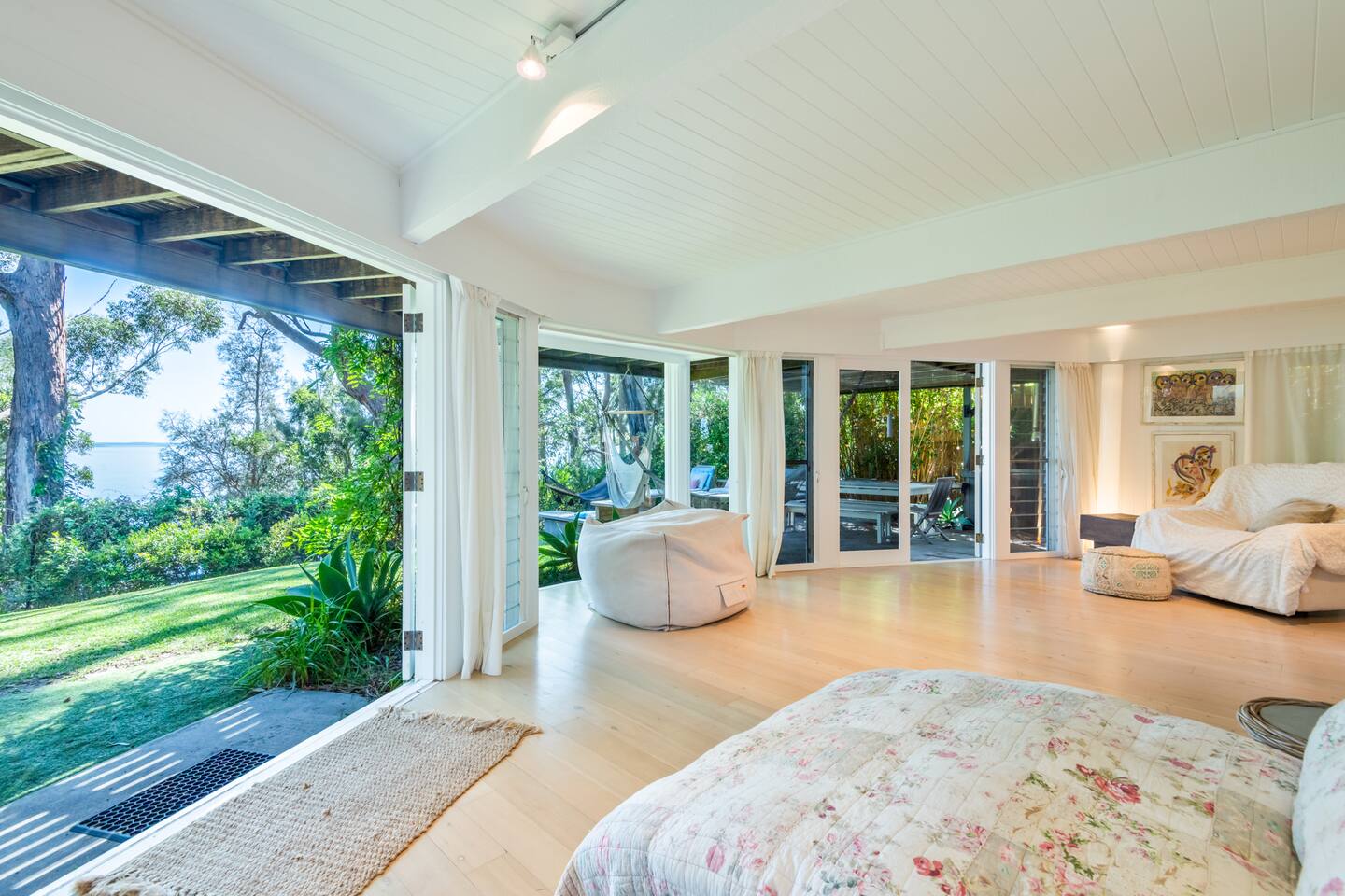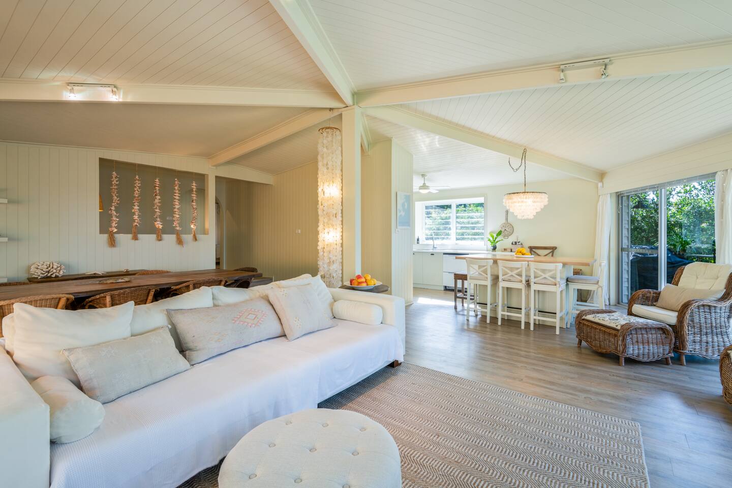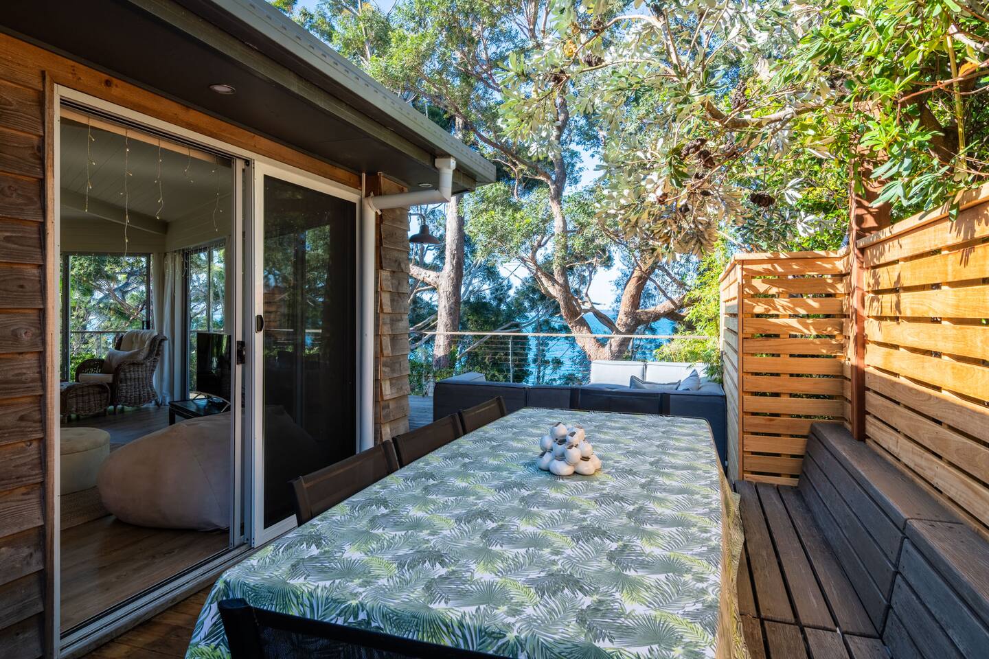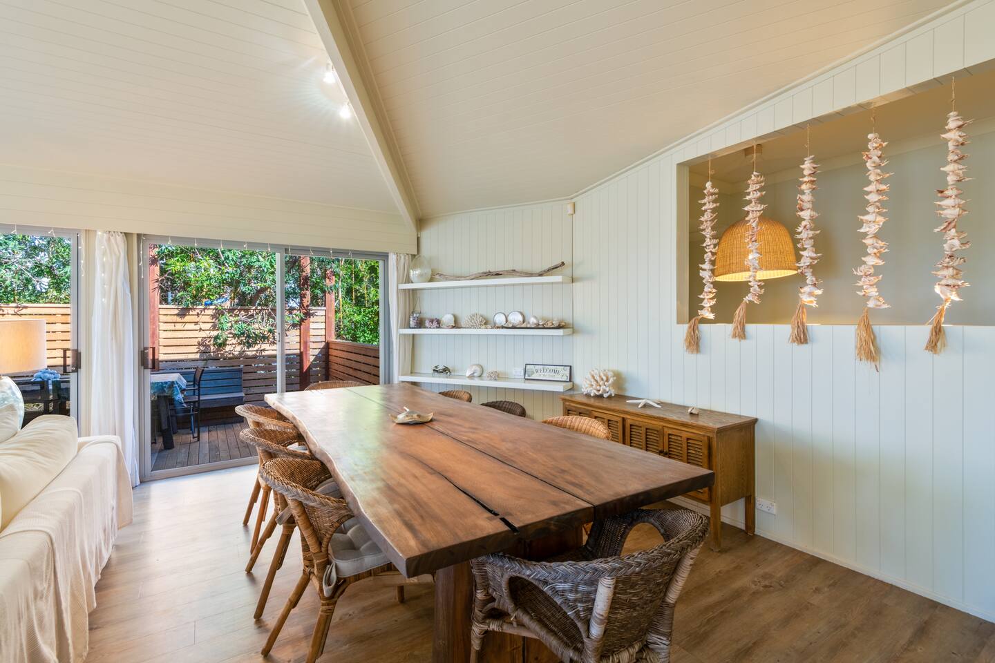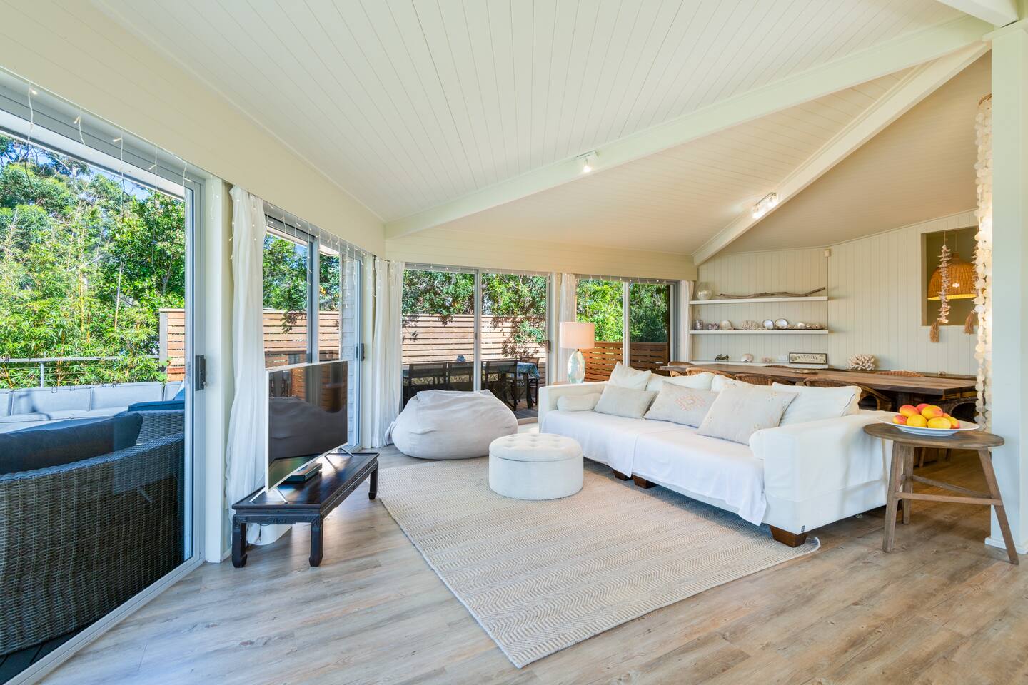Managed by The FAM Holiday Property Management in Jervis Bay, Orion Sands is truly the ultimate relaxed Jervis Bay beach house. With private steps taking you to a peaceful haven of white sands and crystal clear waters at Orion Beach and a leafy, intimate garden, you'll feel a million miles away from the hustle and bustle of everyday life. Dolphins swim close to shore, rays splash in the shallows, white bellied eagles fish in the water and seals sometimes even sun themselves on the sand. Orion Beach is one of Jervis Bay's quietest, stunning spots to escape it all. The house itself is a calm, casual beachside oasis. Tastefully styled, yet rustic and relaxed enough to feel like home. You'll enjoy multiple living areas split across two floors. Including four bedrooms, a large dining area, kitchen/diner, games room in the garage and wrap around balcony looking out across the water. The owner, an interior designer, has curated a beautiful collection of furnishings and decorative items from shells to driftwood to complement the coastal style renovation and incredible water views the property has to offer. Its beautiful, relaxed environment inside and out is guaranteed to unwind you. This property is an absolute must visit. * Best bits of Orion Sands * - Your own private steps to the beach, this is beachfront paradise at its very best - Central to everything Jervis Bay has to offer, with quick access to the walking track that runs from Hyams Beach to Huskisson, local shops just minutes away, Huskisson's cafes, shops, restaurants and breweries as well as The Booderee National Park a short drive - Truly beautifully styled, tastefully finished, renovations conducted at varying stages in recent years - Relaxed and comfortable, rustic and charming - Comfortable beds and lounges, multiple living areas - Downstairs master suite opening into additional living area enjoys incredible sunrise water views - Additional table in downstairs living area making a quiet home office space if required - Large balcony looking out across Jervis Bay, grassy, peaceful garden - Multiple outdoor dining and relaxing areas. Pizza oven and BBQ - Fully equipped kitchen/diner including coffee machine, microwave, kettle, toaster and dishwasher. Note, the kitchen is an older renovation - Ping pong table and games in garage games room, additional basketball hoop and small court area in front yard - Tea, coffee, basic pantry supplies, natural cleaning products & luxury Two Good Co toiletries provided. Local barista coffee voucher, handmade chocolates and Silos Estate wine for every guest - All linen, bath towels provided. BYO beach towels - AC in downstairs king bedroom suite and upstairs open plan living area, ceiling fans in upstairs bedrooms - Wifi, TV - Hot outdoor shower - The very insider local tips shared in our in house magazine * Need to know * - Sleeps 10 plus infants (travel cot and highchair available). We prefer a max of 8 adults and 2 children. Any groups with more than 8 adults must send a request before booking. This house is not suitable for young or party groups - 4 bedrooms, including 1 king, 2 queens and 1 with queen plus single bunks. You'll find the king on the ground floor alongside a large additional living area and bathroom. All other bedrooms are upstairs, stepped up and back from the main living/dining/kitchen area - 2 bathrooms, 1 on each level. Main bathroom features shower and separate bath. Separate WC to bathroom upstairs - Internal laundry with washer and dryer - Fully fenced yard - Plenty of off street parking in large driveway, room for small boats - Pets welcome upon request and with prior host reviews, additional $150 fee added to booking. Strict rules about pet behaviour including no pets on furniture. All mess to be cleaned by owners. Any pet dirt/damage must be paid for