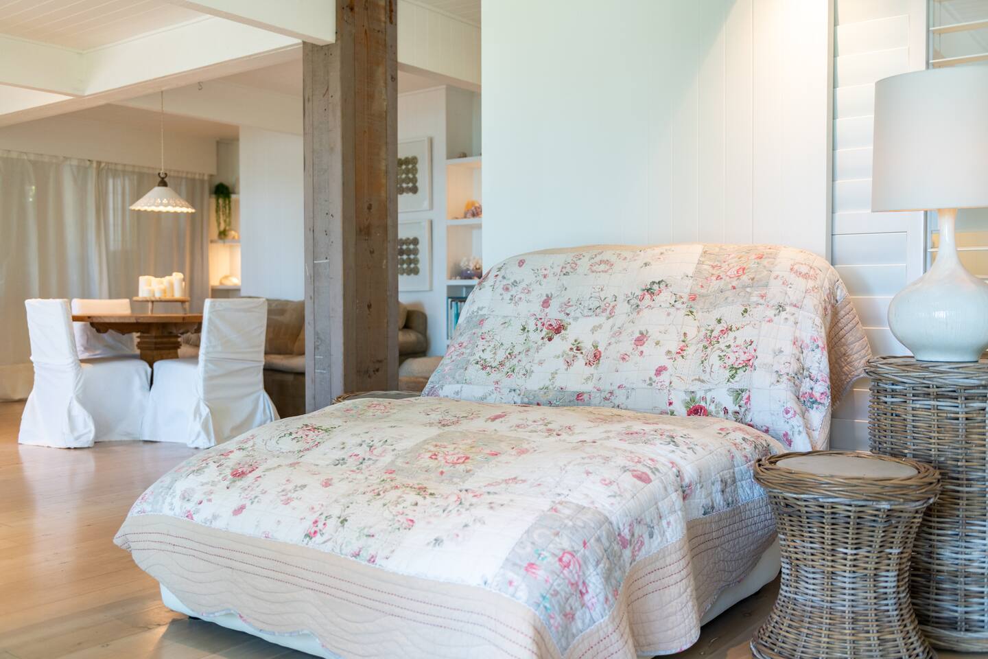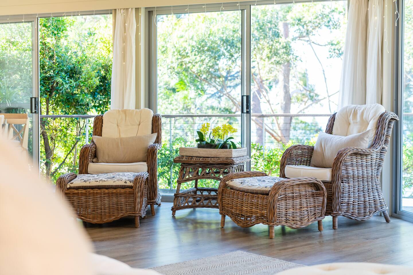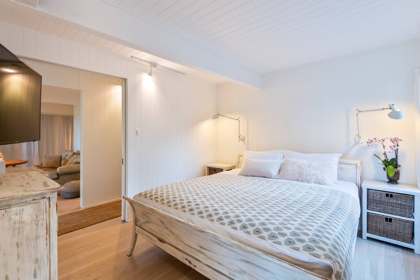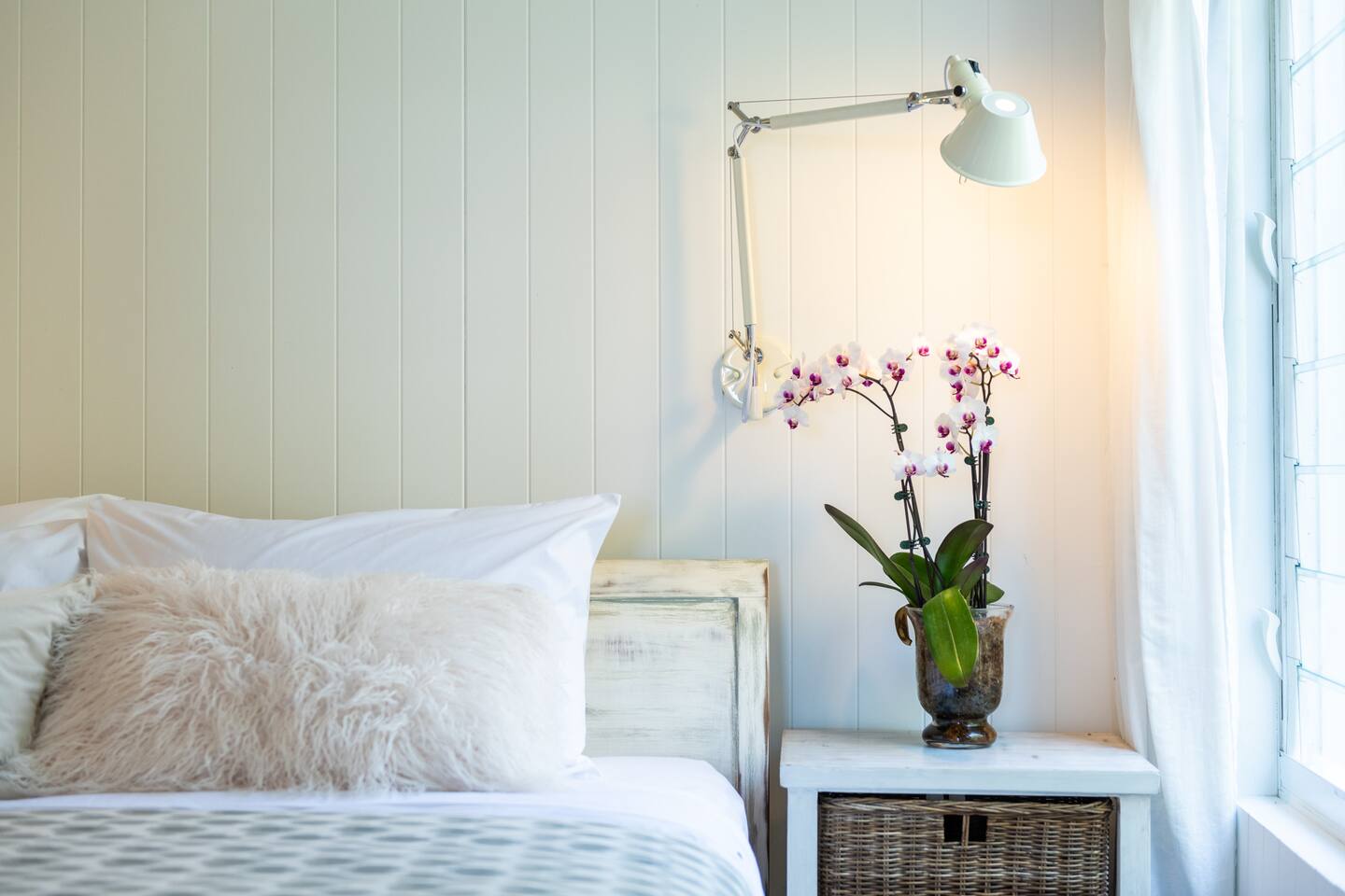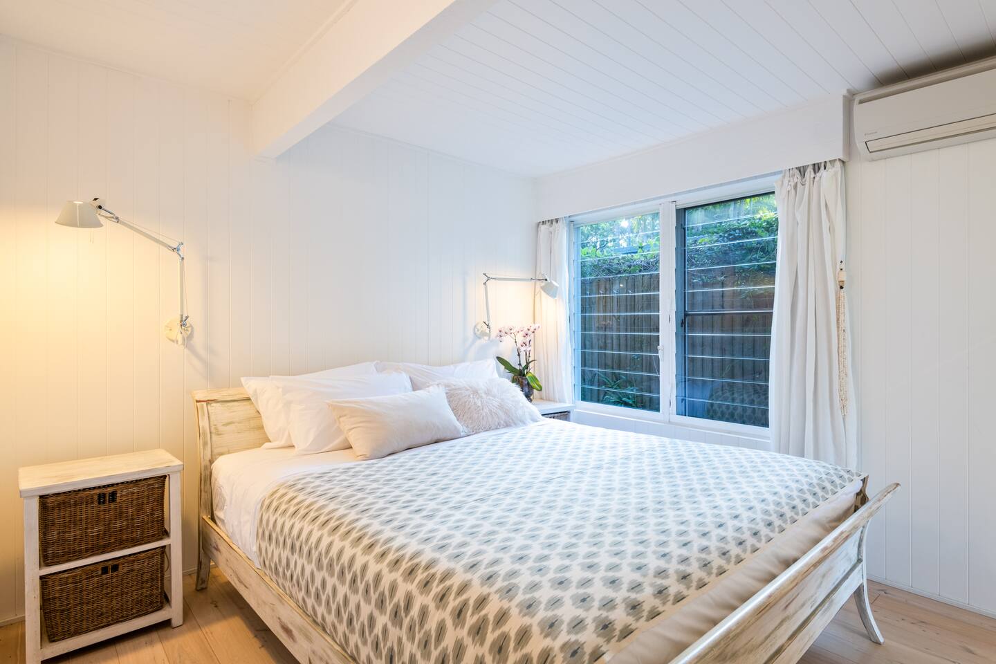 Managed by The FAM Holiday Property Management in Jervis Bay, Orion Sands is truly the ultimate relaxed Jervis Bay beach house. With private steps taking you to a peaceful haven of white sands and crystal clear waters at Orion Beach and a leafy, intimate garden, you'll feel a million miles away from the hustle and bustle of everyday life. Dolphins swim close to shore, rays splash in the shallows, white bellied eagles fish in the water and seals sometimes even sun themselves on the sand. Orion Beach is one of Jervis Bay's quietest, stunning spots to escape it all. The house itself is a calm, casual beachside oasis. Tastefully styled, yet rustic and relaxed enough to feel like home. You'll enjoy multiple living areas split across two floors. Including four bedrooms, a large dining area, kitchen/diner, games room in the garage and wrap around balcony looking out across the water. The owner, an interior designer, has curated a beautiful collection of furnishings and decorative items from shells to driftwood to complement the coastal style renovation and incredible water views the property has to offer. Its beautiful, relaxed environment inside and out is guaranteed to unwind you. This property is an absolute must visit. * Best bits of Orion Sands * - Your own private steps to the beach, this is beachfront paradise at its very best - Central to everything Jervis Bay has to offer, with quick access to the walking track that runs from Hyams Beach to Huskisson, local shops just minutes away, Huskisson's cafes, shops, restaurants and breweries as well as The Booderee National Park a short drive - Truly beautifully styled, tastefully finished, renovations conducted at varying stages in recent years - Relaxed and comfortable, rustic and charming - Comfortable beds and lounges, multiple living areas - Downstairs master suite opening into additional living area enjoys incredible sunrise water views - Additional table in downstairs living area making a quiet home office space if required - Large balcony looking out across Jervis Bay, grassy, peaceful garden - Multiple outdoor dining and relaxing areas. Pizza oven and BBQ - Fully equipped kitchen/diner including coffee machine, microwave, kettle, toaster and dishwasher. Note, the kitchen is an older renovation - Ping pong table and games in garage games room, additional basketball hoop and small court area in front yard - Tea, coffee, basic pantry supplies, natural cleaning products & luxury Two Good Co toiletries provided. Local barista coffee voucher, handmade chocolates and Silos Estate wine for every guest - All linen, bath towels provided. BYO beach towels - AC in downstairs king bedroom suite and upstairs open plan living area, ceiling fans in upstairs bedrooms - Wifi, TV - Hot outdoor shower - The very insider local tips shared in our in house magazine * Need to know * - Sleeps 10 plus infants (travel cot and highchair available). We prefer a max of 8 adults and 2 children. Any groups with more than 8 adults must send a request before booking. This house is not suitable for young or party groups - 4 bedrooms, including 1 king, 2 queens and 1 with queen plus single bunks. You'll find the king on the ground floor alongside a large additional living area and bathroom. All other bedrooms are upstairs, stepped up and back from the main living/dining/kitchen area - 2 bathrooms, 1 on each level. Main bathroom features shower and separate bath. Separate WC to bathroom upstairs - Internal laundry with washer and dryer - Fully fenced yard - Plenty of off street parking in large driveway, room for small boats - Pets welcome upon request and with prior host reviews, additional $150 fee added to booking. Strict rules about pet behaviour including no pets on furniture. All mess to be cleaned by owners. Any pet dirt/damage must be paid for