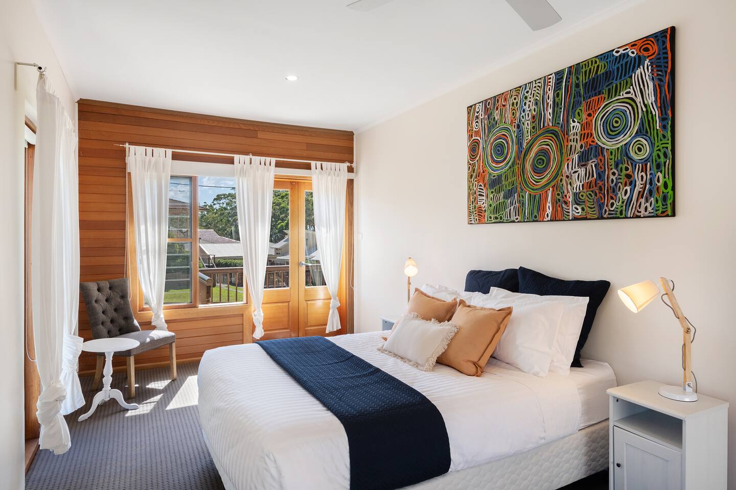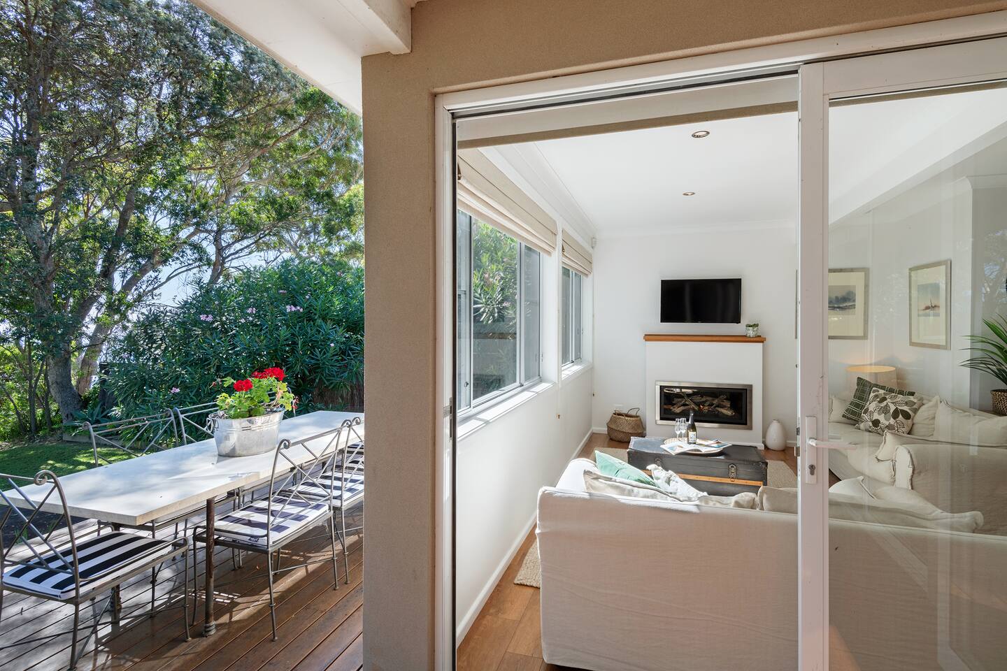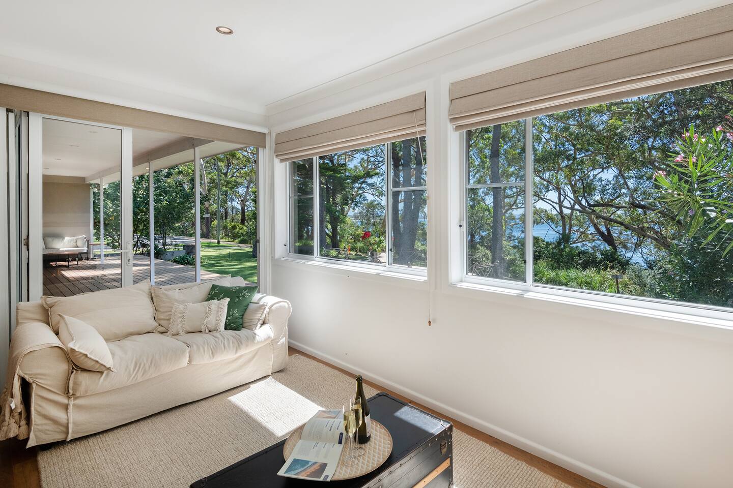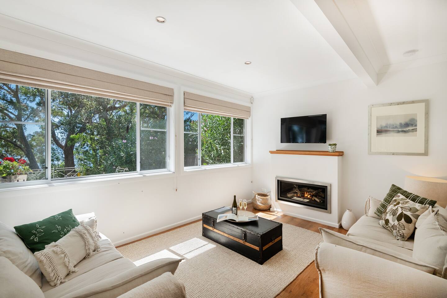 If you are looking for a truly spectacular, beachfront home in Jervis Bay, this is it. Its location is second to none, with Orion Beach at the end of the backyard, one of the calmest and quietest beaches in the bay where dolphins swim close to shore, the water is crystal clear and sands bright white. Managed by The FAM Holiday Property Management in Jervis Bay. Inside, not only will you enjoy sweeping views of the water from the kitchen, dining and main living spaces but you'll find multiple areas to relax, a pool table, log and gas fires. The space, surrounding, style and location of this property make it the perfect place to enjoy a very special trip to Jervis Bay. * Best bits of Orions Oasis * - Orion Beach is on your doorstep, stroll to the sand and listen to the waves lapping - Large deck and grassy backyard backing onto Orion Beach, further enclosed courtyard with BBQ and pizza oven - Stunning, fully equipped kitchen - Three living spaces including log and gas fires in main living area - Huge dining area with water views - Beautifully and comfortably styled - Pool table and 2 TVs for hours of entertainment - 3 modern bathrooms - AC, portable heaters and ceiling fans throughout the house - Central to everything Jervis Bay has to offer, with direct access to the walking track that runs from Hyams Beach to Huskisson, local shops just minutes away, Huskisson's cafes, shops, restaurants and breweries as well as The Booderee National Park a short drive - All linen, towels, basic household products provided. BYO beach towels - Outdoor shower - Pets allowed on request - see house rules - In depth house magazine with extensive insider local tips to make the most of your stay * Need to know * - 4 queen bedrooms - Sleeps 8 plus infants in a travel cot. This house is for family groups, it is not suitable for young or party groups - Wifi - Internal laundry