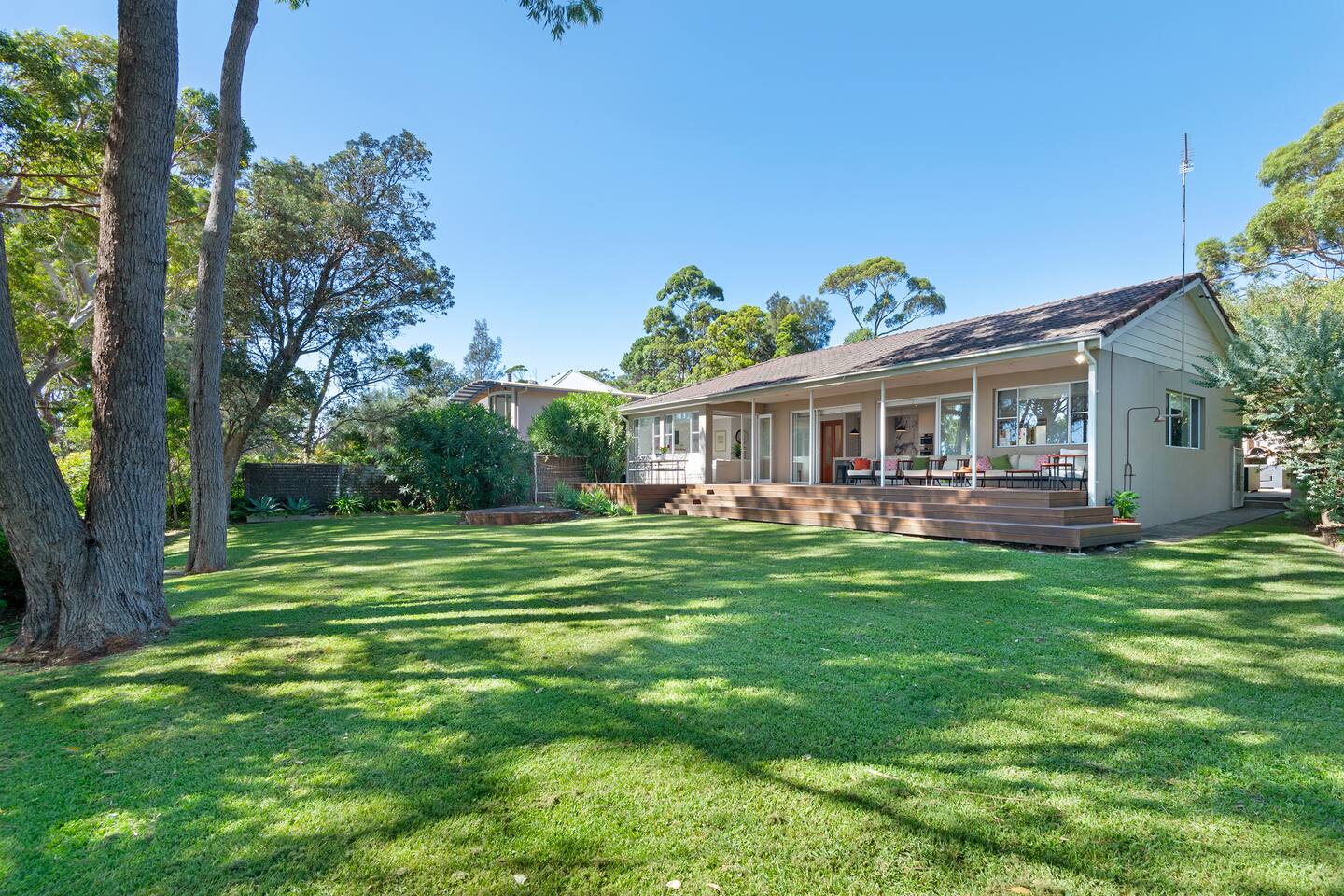 If you are looking for a truly spectacular, spacious beachfront home to come together with family or friends in Jervis Bay, this is it. Its location is second to none, with Orion Beach at the end of the backyard, one of the calmest and quietest beaches in the bay where dolphins swim close to shore, the water is crystal clear and sands bright white. Managed by The FAM Holiday Property Management in Jervis Bay. Inside, not only will you enjoy sweeping views of the water from the kitchen, dining and main living spaces but you'll find multiple areas to relax, a pool table, log and gas fires. Not to mention the 7 bedrooms and 4 bathrooms! The space, surrounding, style and location of this property make it the perfect place to enjoy a very special trip to Jervis Bay. * Best bits of this property * - Orion Beach is on your doorstep, stroll to the sand and listen to the waves lapping - Large deck and grassy backyard backing onto Orion Beach, further enclosed courtyard with BBQ and pizza oven - Stunning, fully equipped kitchen - Three living spaces including log and gas fires in main living area - Huge dining area with water views - Beautifully and comfortably styled - Pool table and 2 TVs for hours of entertainment - 4 modern bathrooms - AC, portable heaters and ceiling fans throughout the house - Central to everything Jervis Bay has to offer, with direct access to the walking track that runs from Hyams Beach to Huskisson, local shops just minutes away, Huskisson's cafes, shops, restaurants and breweries as well as The Booderee National Park a short drive - All linen, towels, basic household products provided. BYO beach towels - Outdoor shower - Pets allowed on request - see house rules - In depth house magazine with extensive insider local tips to make the most of your stay * Need to know * - 7 bedrooms with 5 queen rooms and 2 with 2 x king single beds (note the king single rooms are connected - there is a door taking you from one of these rooms to the next, making it a great kids wing but access to the second is through the first room) - Sleeps 14 but we have a maximum of 10 adults and 4 children plus infants in a travel cot. This house is for family groups, it is not suitable for young or party groups - Wifi - Internal laundry