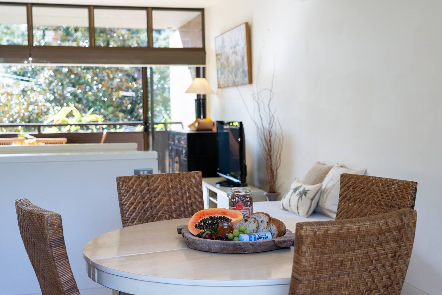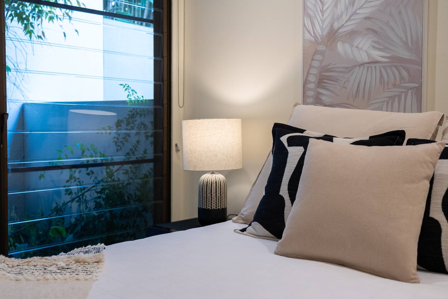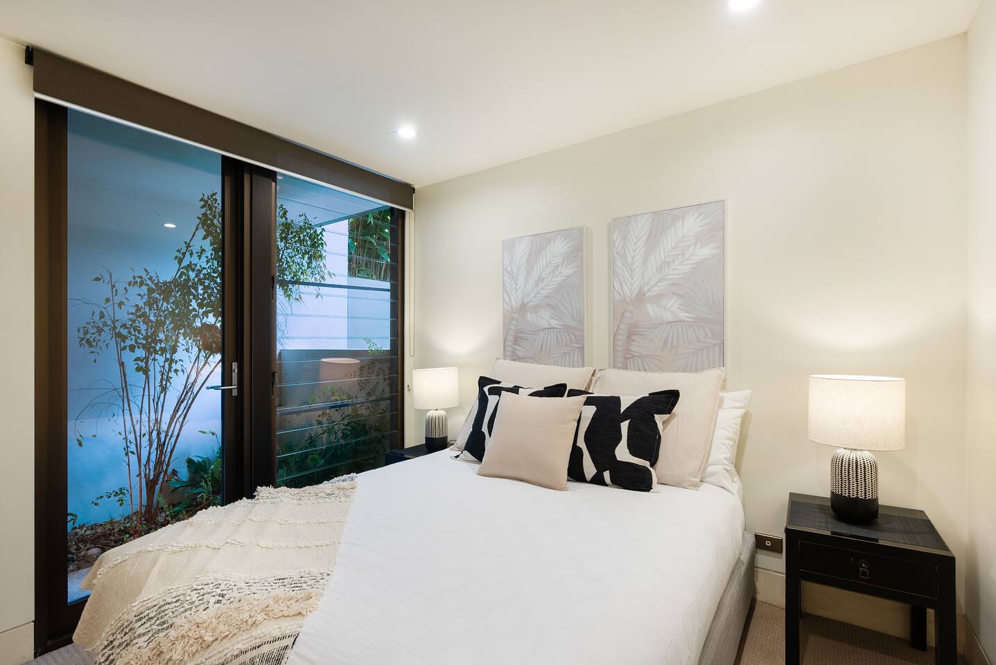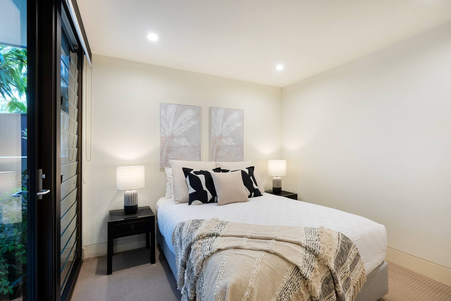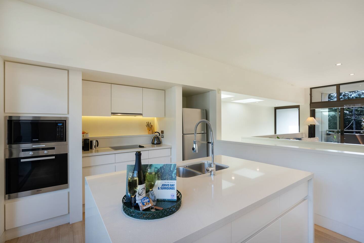 Open the door to Palms at Piana, managed by The FAM Holiday Property Management in Jervis Bay, and you'll instantly feel ready to relax into your Jervis Bay holiday. A modern, luxury townhouse, designed for comfort and convenience with all the appliances and amenities you need. The property's modern, luxury finishes ensure a high quality stay, whilst views to the waters of Jervis Bay and leafy palms that surround the bedrooms and bathrooms give the property a resort style feel. The set up here gives Palms at Piana the feeling of a purpose built holiday property, whilst the attention to detail ensures it's a comfortable and cosy home away from home. All just a 2 minute walk to Collingwood Beach, Holden St Boat Ramp or Vincentia Village, where you'll find a burgeoning centre complete with cafes, restaurants, children's play equipment, Coles and specialist shops including whole-foods store, local butcher/providore and regional winery cellar door. Meanwhile bustling Huskisson is just 5 minutes by car and it's under 10 minutes to Hyams Beach or the Booderee National Park. * Best bits of Palms at Piana * - Central, modern townhouse in the heart of Jervis Bay - Partial water views from the balcony and open plan living space. Additional balcony from kitchen/dining space with BBQ, perfect for catching the afternoon sun - Luxury finish and resort style feel, bedrooms and bathrooms look onto beautifully lit small courtyard areas with leafy palms - Two bathrooms including ensuite to the master and further full bathroom with shower over bath - High ceilings and light drenched living space - Modern kitchen with all the appliances you need - including luxury Miele stove, oven & dishwasher, microwave, Nespresso coffee machine - Incredibly private with high walls surrounding each bedroom and entry - Central to everything Jervis Bay has to offer - Tea, coffee, basic pantry supplies, natural cleaning products & luxury Two Good Co toiletries provided. Local barista coffee voucher, handmade chocolates and Silos Estate wine for every guest - All linen and towels provided, spare beach towels - The very insider local tips shared in our in house magazine * Need to know * - Sleeps 4 in 2 bedrooms, King Master with ensuite (possible to be made up as 2 singles subject to availability and upon request at time of booking) second Queen room - Wifi - Smart TV in living area, further TV in master bedroom (Free to Air only) - Split system AC in living area and portable fans/heaters in bedrooms - Internal laundry with washer and dryer - Allocated off street, undercover parking in shared parking area - Be aware of the open stairwell in the open plan living space - this property may not be suitable for those travelling with babies, toddlers or young children. Please ensure you have fully reviewed the imagery before booking and ask us if you have any questions. Guests are responsible for their own safety and care must be taken