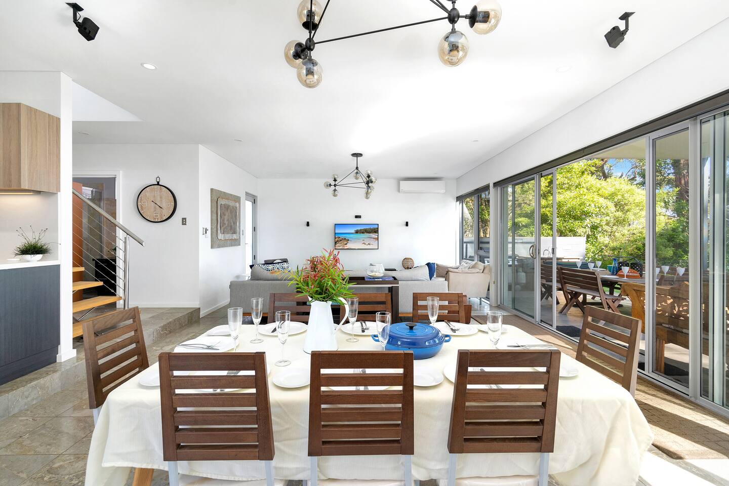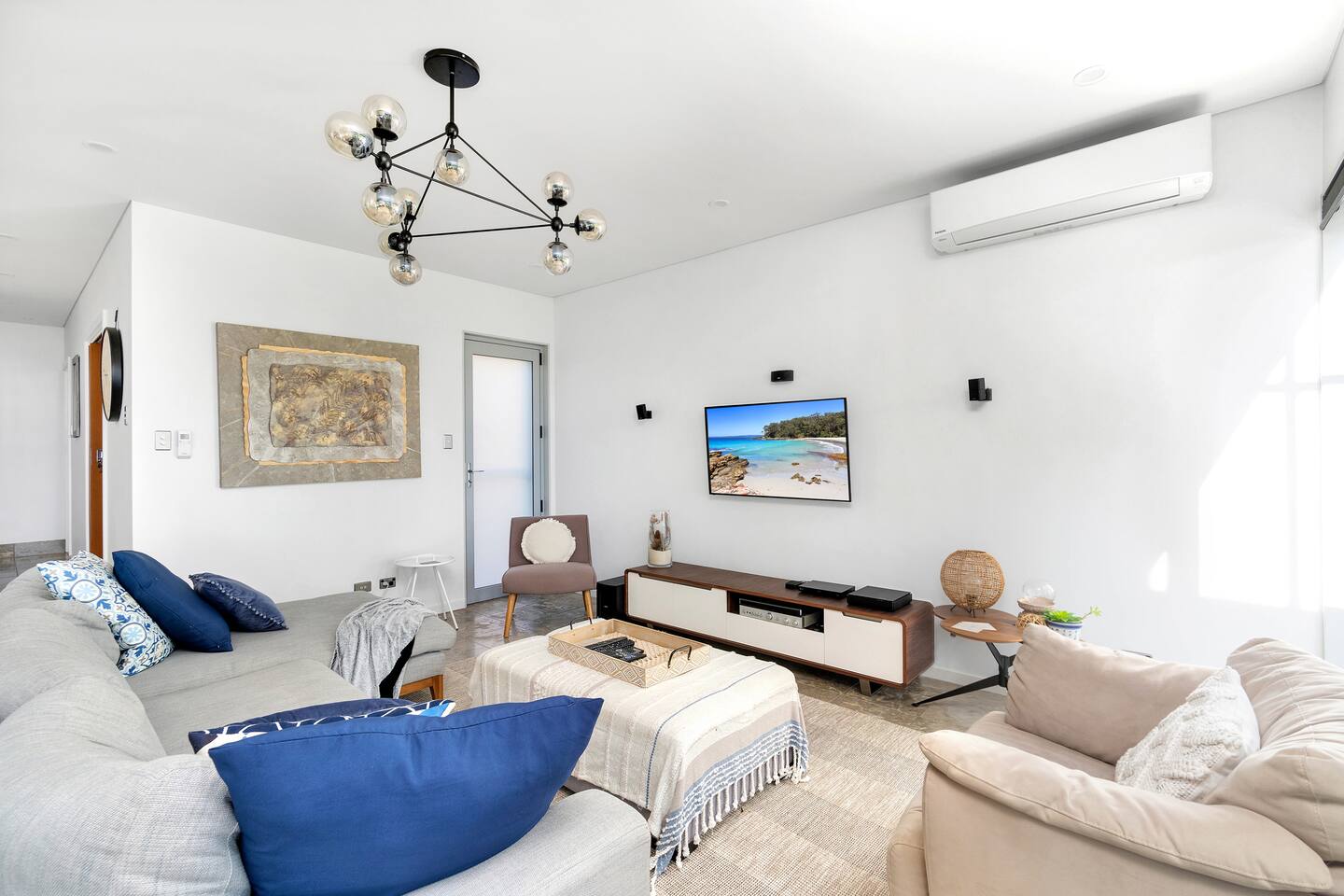 * LATE CHECK OUT OF 3PM AVAILABLE SUNDAY TO THURSDAY UNTIL SEPTEMBER 24TH 2026 EXCLUDING JULY SCHOOL HOLIDAYS. SUBJECT TO AVAILABILITY. PLEASE CONFIRM AT TIME OF BOOKING. * You will not beat this location! Rigel, managed by The FAM Holiday Property Management, is one of just a few properties in Jervis Bay with direct, private access from its backyard to the beach. Walk out the back gate and the top of the beach is just a few steps away, what's more Orion Beach is one of the quietest, local secrets in the Bay. Enjoy calm, crystal clear water, white sands, visits from local dolphins and sometimes seals and best of all, often not many other people! Named after the brightest star in the Orion constellation 'Rigel', a blue and white, prominent and powerful star that defines the recognisable shape of Orion, the property promises to shine! Enjoy beautiful skies over the ocean from sunrise to sunset before watching the night sky with incredible star gazing opportunities. The house itself is a modern, high quality build featuring luxury finishes, added extras like a home cinema room, and plenty of space for everyone to relax. The multiple living spaces suit multigenerational or large families or couples wishing to travel together but have enough space to relax in private. The main suite with a luxury corner bath, balcony and incredible water views is simply sublime (so if you're the one booking, call dibs now!) whilst the three other bedrooms are equipped with comfortable beds and plenty of space. With three bathrooms and four living / breakout areas, everyone can enjoy the space and entertainment. If you're ever ready to come in from the beach and water views, enjoy relaxing nights in the home movie room or fun gaming comps on the Nintendo console. Or if life insists on working while on holiday, utilise the home office space and NBN WiFi. The large, quality kitchen is fully set up with every amenity you could need including induction cooktop and Nespresso coffee machine, whilst outside, enjoying BBQ'ing while overlooking the water and soaking up that ocean air. Aside from its direct beach access, Rigel is an easy 1.5km walk to local shops, cafes and restaurants in Vincentia, whilst the walking track that runs along the water's edge from Huskisson to Hyams Beach, including the famous White Sands Walk is right on your doorstep. It's just a 5 minute drive to Huskisson and its bustling cafes, boutique shops, breweries and whale, dolphin, diving and snorkelling tours. * Best bits of Rigel * - Absolute beachfront on Orion Beach, rare and sought after location on Jervis Bay's most peaceful beach with private, direct beach access from the backyard - Spacious and modern, high quality home - Four living / break out spaces including home movie room, gaming area and home office space with desk. Main living and dining area looks out to the backyard and enjoys beautiful water and bush views - Quality kitchen and appliances, fully equipped with Nespresso coffee machine, dishwasher, induction stove - Central to everything Jervis Bay has to offer, with quick access to the walking track that runs from Hyams Beach to Huskisson, local shops just minutes away, Huskisson's cafes, shops, restaurants and breweries as well as the Booderee National Park a short drive - Tea, coffee, basic pantry supplies, natural cleaning products & luxury Two Good Co toiletries provided. Local barista coffee voucher, handmade chocolates and Silos Estate wine for every guest - All linen and bath towels are provided - The very insider local tips shared in our in house magazine * Need to know * - Sleeps 8 plus infant in 4 bedrooms, three queen, one with two single beds - The third bathroom was thoughtfully designed with little ones in mind, featuring a vanity set at a lower height for easy access - AC throughout all of the property except the downstairs queen bedroom - Internal laundry with washer-dryer - NBN WiFi