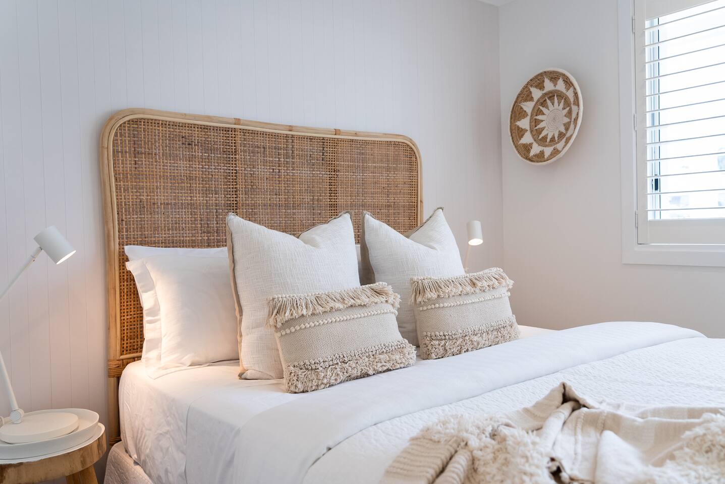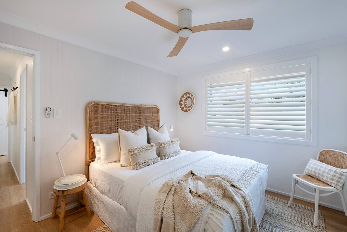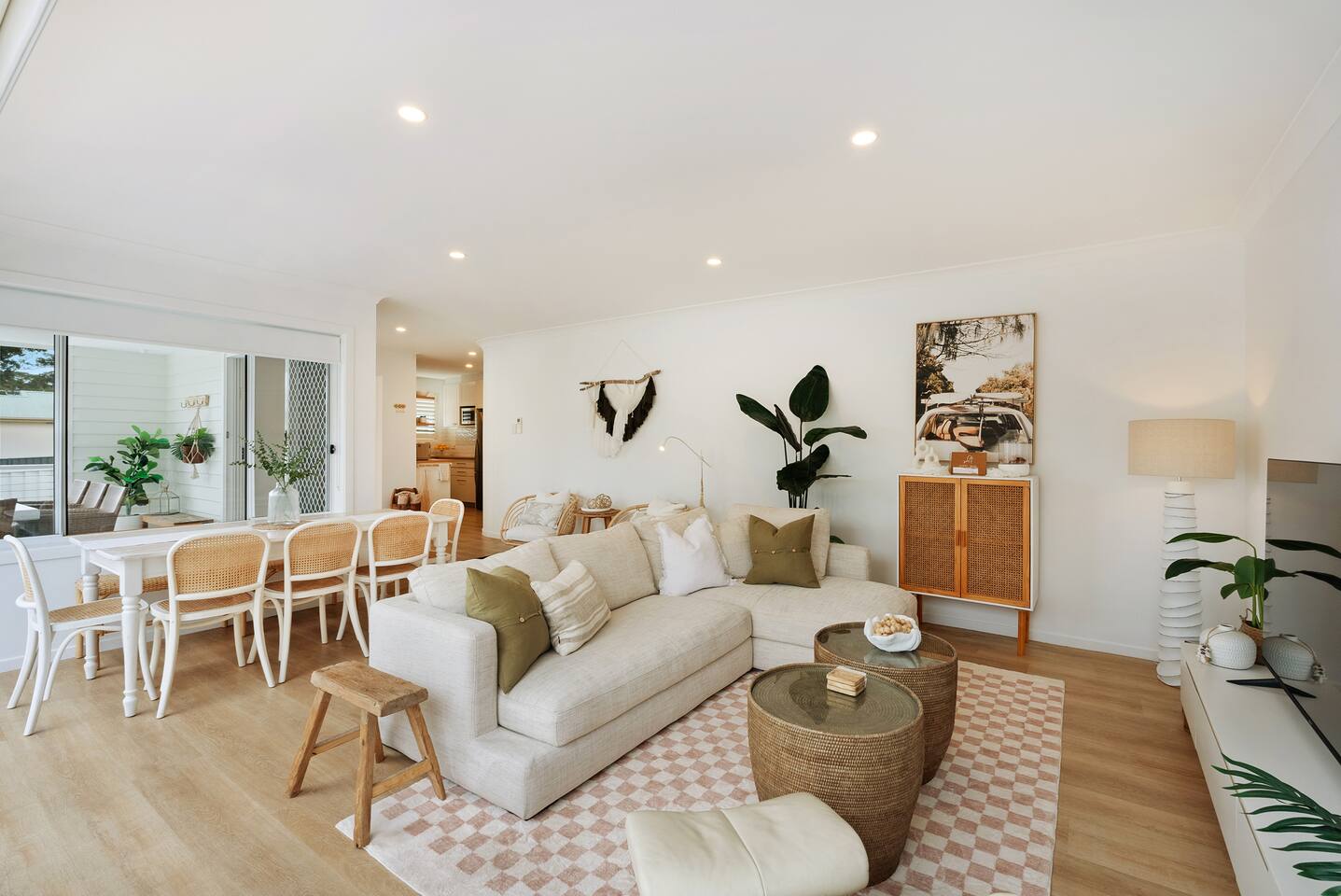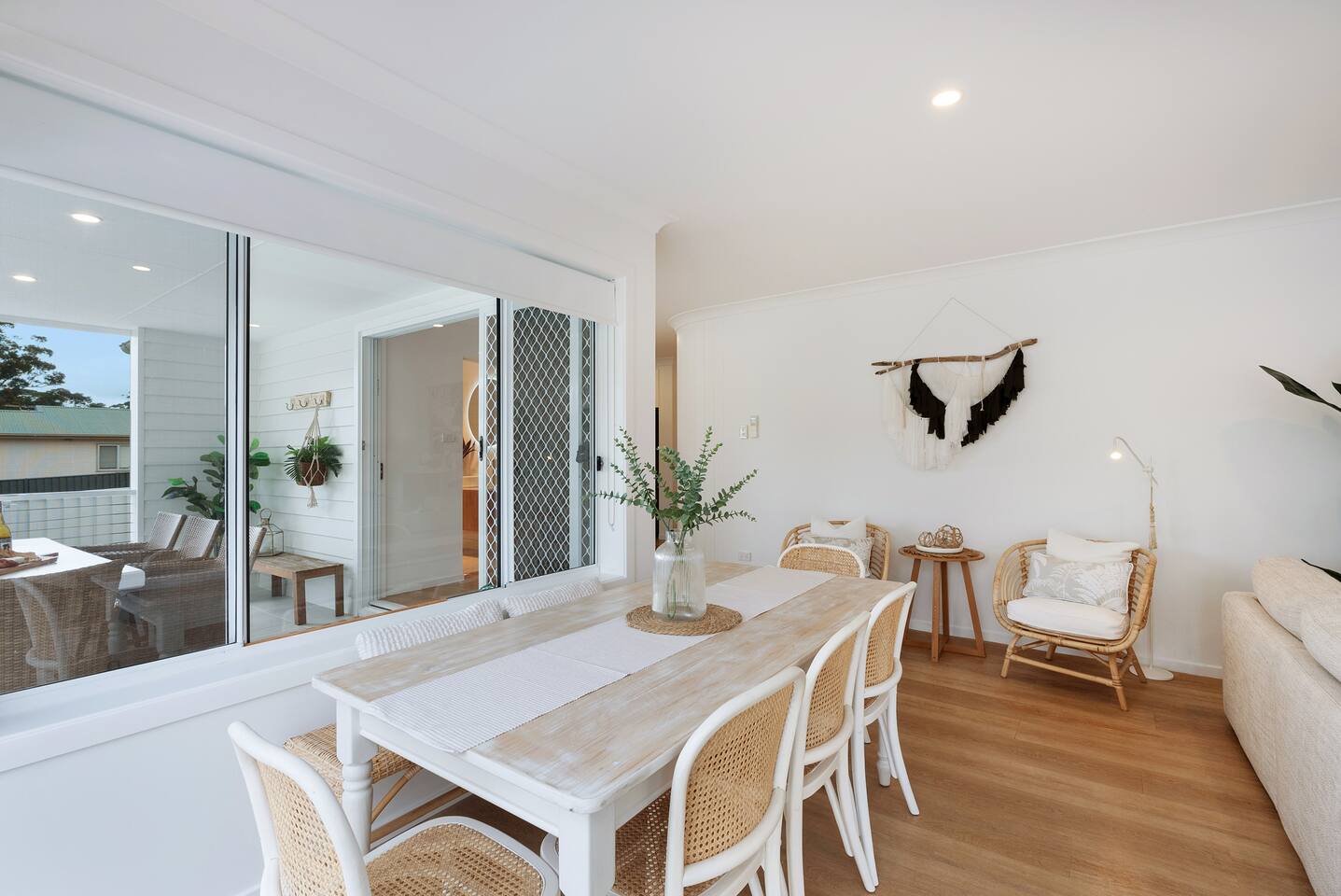 Welcome to Salt, a quintessential boho beach house in the most convenient of Jervis Bay locations that is sure to steal your heart, managed by The FAM Holiday Property Management in Jervis Bay, . Salt is quite simply beautiful at every corner. Stunning furniture, design and details set the tone for this stylish retreat with whites, neutrals, timber and rattan creating a beachside vibe. Outside, the yard is crowned by a beautiful, large deck overlooking our fully landscaped fenced garden, fire pit area and, the icing on the cake, our awesome additional rumpus room ensuring there’s space for everyone. Having recently been fully renovated to a quality finish, the property is modern, fresh and functional with every amenity you could need. All just a few mins to local cafes for your morning barista coffee fix or the white sands of Jervis Bay. * Best bits of Salt * - Fully renovated, high quality property with fresh and modern interior - Truly beautiful, boho coastal style makes for a stunning backdrop to your Jervis Bay escape - Sundrenched living space, filled with natural light and beautiful garden views. Large lounge with chaise, TV including Apple TV connection - Stunningly landscaped backyard and sundeck, enjoy alfresco living at its best with our inside/outside feel, BBQ and beautiful firepit area. Undercover outdoor dining area with glimpses of Jervis Bay's crystal clear water - Fully equipped kitchen with electric stove & oven, Nespresso coffee machine - Additional living space in our rumpus room with TV, workspace and bar fridge. Perfect for multigenerational families or those travelling with friends looking for some space to spread out and relax or a spot to catch up on work if required - 4 bedrooms with hotel quality linen, towels and spare beach towels provided - Hot outdoor shower - Furry friends welcome and enclosed in our fenced yard - Just a couple of minutes to local shops, cafes, restaurants and children’s play area at Vincentia Village. 250m to the sands of Collingwood Beach and the walking/bike track that runs from Huskisson and on to Hyams Beach. 5 minutes drive to Huskisson, less than 10 to Hyams Beach and The Boodereee National Park - Tea, coffee, basic pantry supplies, natural cleaning products & luxury Two Good Co toiletries provided. Local barista coffee voucher, handmade chocolates and Silos Estate wine for every guest - The very insider local tips shared in our in house magazine * Need to know * - Sleeps 8 in 4 bedrooms, 3 x queen, 1 x twin single - 2 brand new, beautiful bathrooms. Main includes large walk-in shower and oversized vanity - AC in living space, ceiling fans and additional heaters/portable fans to ensure your comfort - NBN Wifi - Games, toys and Bluetooth speaker - Euro laundry featuring washing machine, dryer, sink and dishwasher