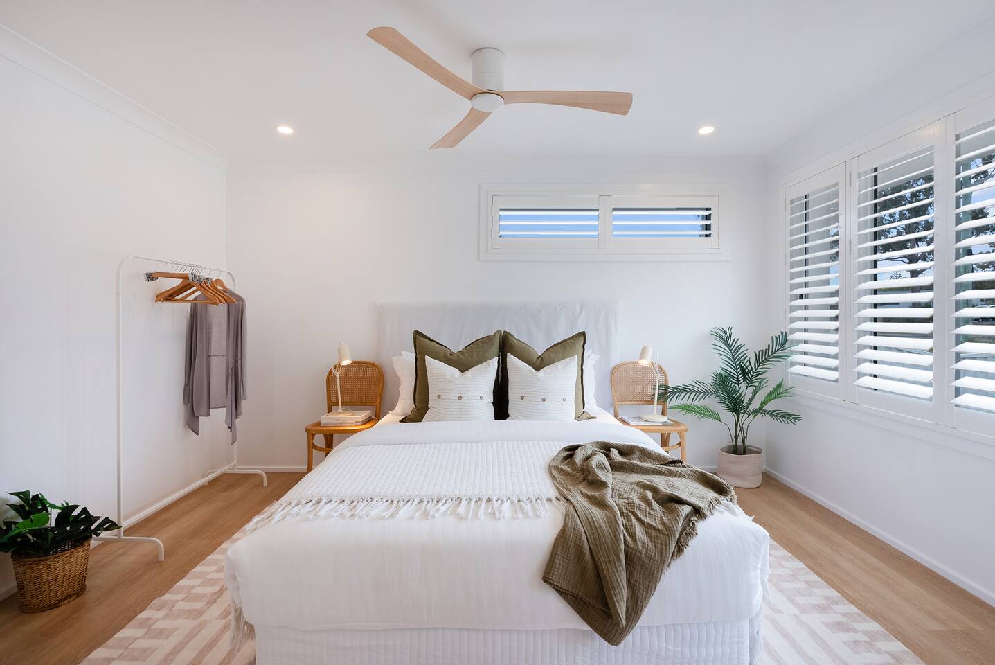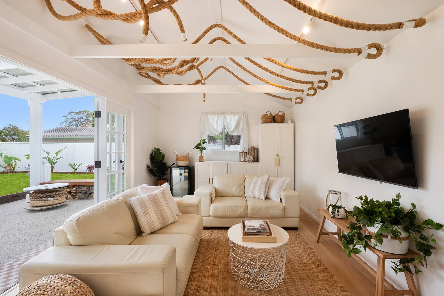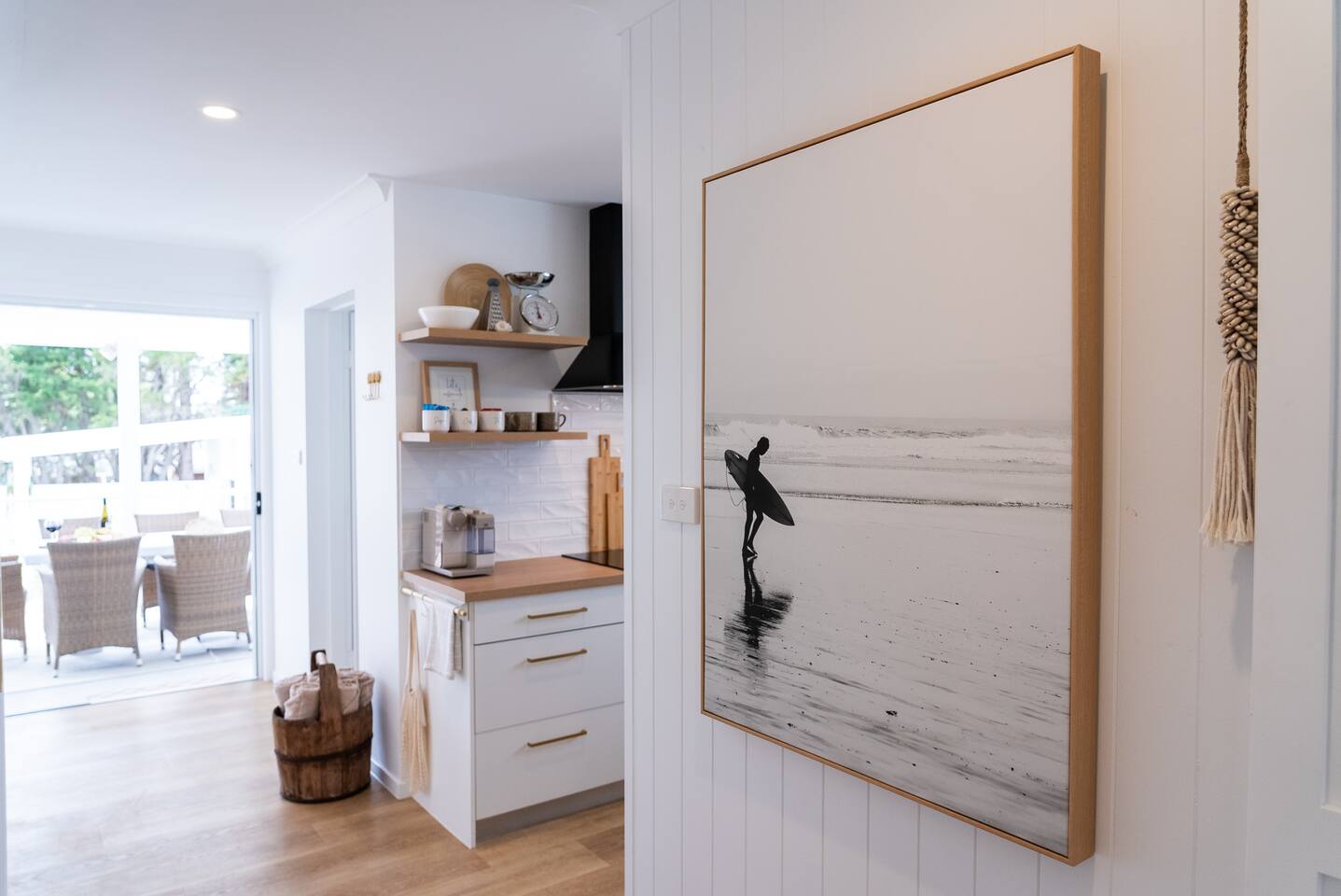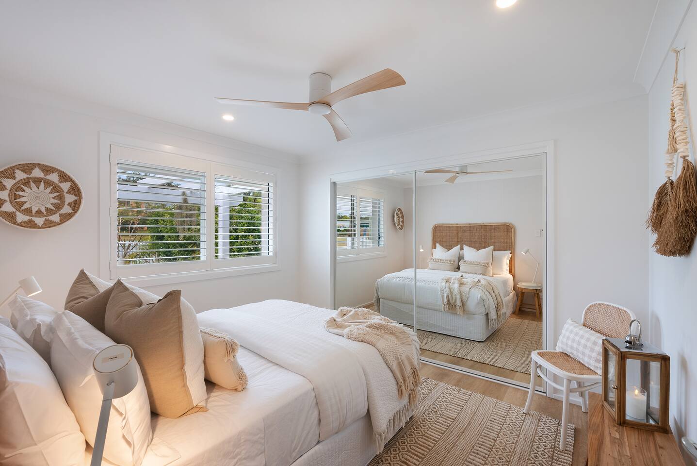 Welcome to Salt, a quintessential boho beach house in the most convenient of Jervis Bay locations that is sure to steal your heart, managed by The FAM Holiday Property Management in Jervis Bay, . Salt is quite simply beautiful at every corner. Stunning furniture, design and details set the tone for this stylish retreat with whites, neutrals, timber and rattan creating a beachside vibe. Outside, the yard is crowned by a beautiful, large deck overlooking our fully landscaped fenced garden, fire pit area and, the icing on the cake, our awesome additional rumpus room ensuring there’s space for everyone. Having recently been fully renovated to a quality finish, the property is modern, fresh and functional with every amenity you could need. All just a few mins to local cafes for your morning barista coffee fix or the white sands of Jervis Bay. * Best bits of Salt * - Fully renovated, high quality property with fresh and modern interior - Truly beautiful, boho coastal style makes for a stunning backdrop to your Jervis Bay escape - Sundrenched living space, filled with natural light and beautiful garden views. Large lounge with chaise, TV including Apple TV connection - Stunningly landscaped backyard and sundeck, enjoy alfresco living at its best with our inside/outside feel, BBQ and beautiful firepit area. Undercover outdoor dining area with glimpses of Jervis Bay's crystal clear water - Fully equipped kitchen with electric stove & oven, Nespresso coffee machine - Additional living space in our rumpus room with TV, workspace and bar fridge. Perfect for multigenerational families or those travelling with friends looking for some space to spread out and relax or a spot to catch up on work if required - 4 bedrooms with hotel quality linen, towels and spare beach towels provided - Hot outdoor shower - Furry friends welcome and enclosed in our fenced yard - Just a couple of minutes to local shops, cafes, restaurants and children’s play area at Vincentia Village. 250m to the sands of Collingwood Beach and the walking/bike track that runs from Huskisson and on to Hyams Beach. 5 minutes drive to Huskisson, less than 10 to Hyams Beach and The Boodereee National Park - Tea, coffee, basic pantry supplies, natural cleaning products & luxury Two Good Co toiletries provided. Local barista coffee voucher, handmade chocolates and Silos Estate wine for every guest - The very insider local tips shared in our in house magazine * Need to know * - Sleeps 8 in 4 bedrooms, 3 x queen, 1 x twin single - 2 brand new, beautiful bathrooms. Main includes large walk-in shower and oversized vanity - AC in living space, ceiling fans and additional heaters/portable fans to ensure your comfort - NBN Wifi - Games, toys and Bluetooth speaker - Euro laundry featuring washing machine, dryer, sink and dishwasher