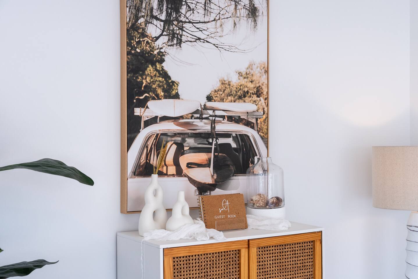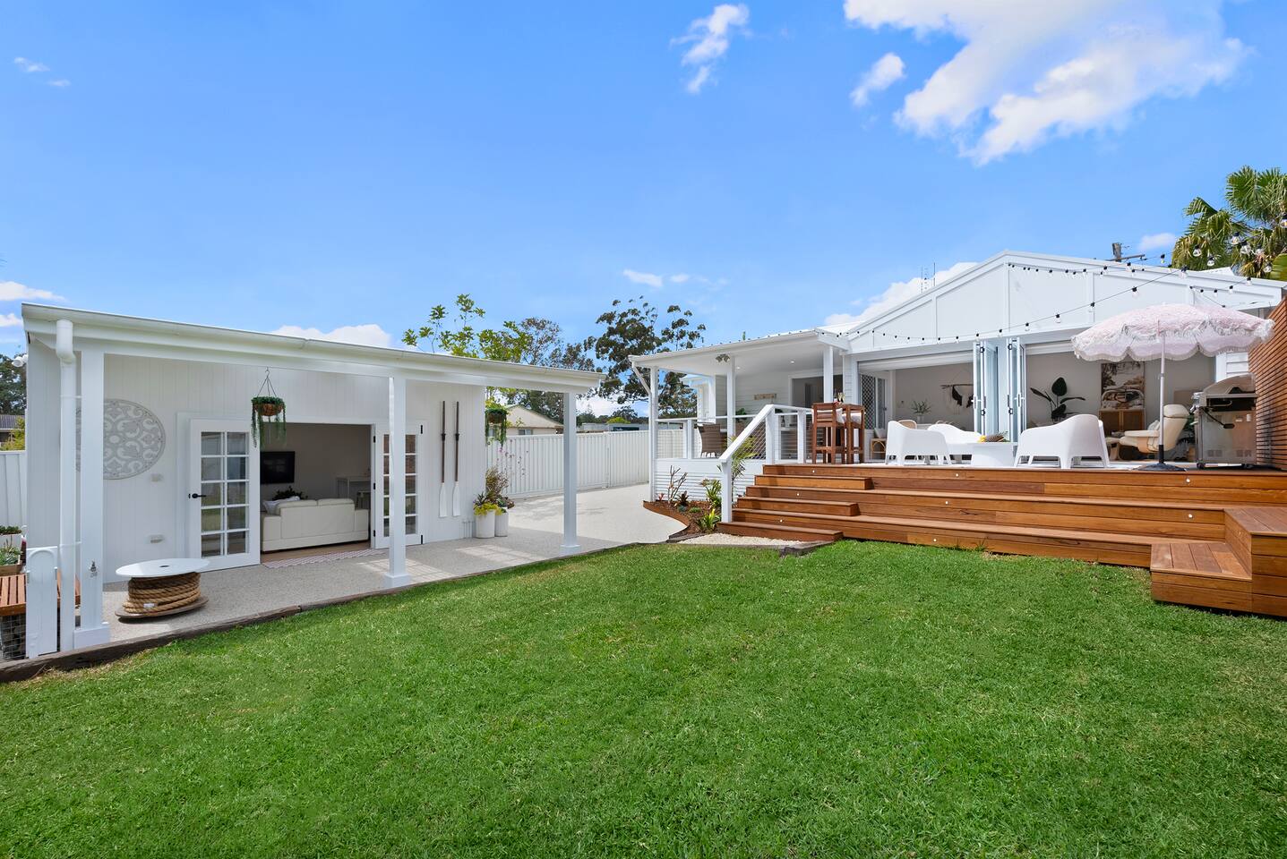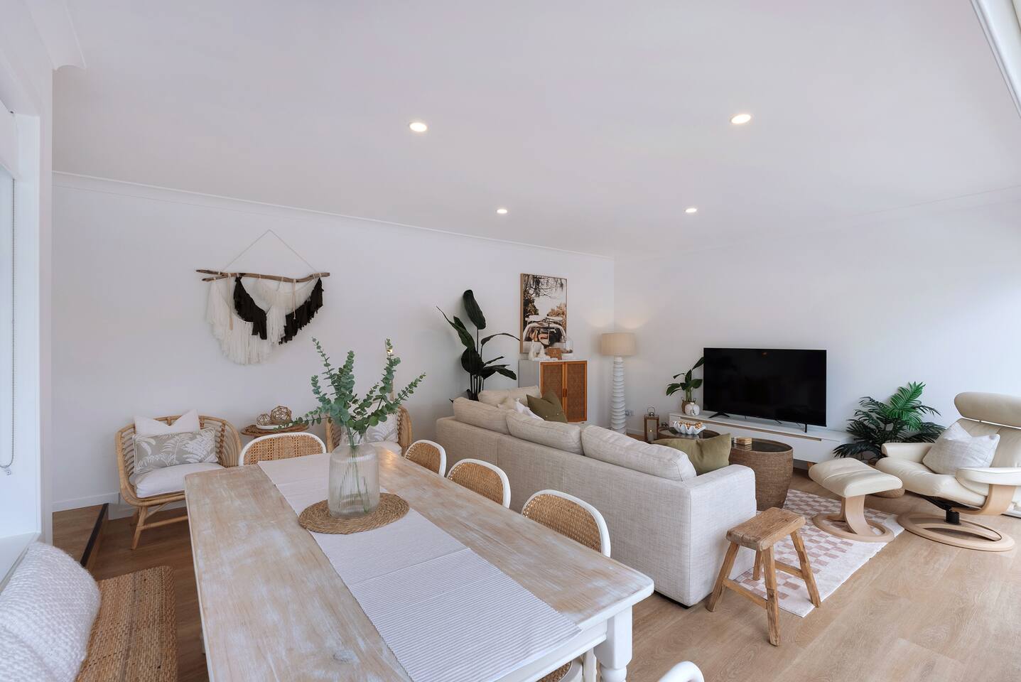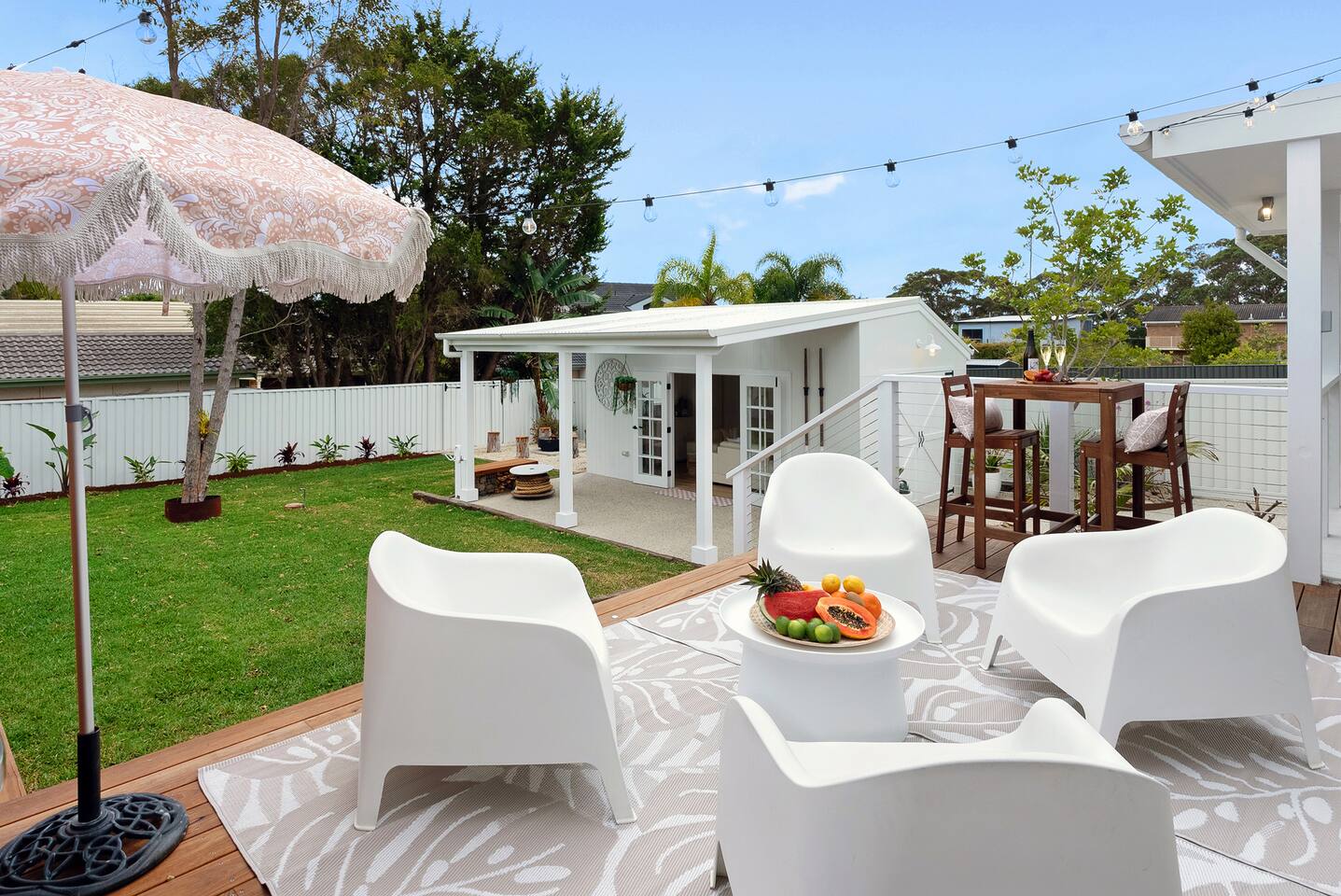 Welcome to Salt, a quintessential boho beach house in the most convenient of Jervis Bay locations that is sure to steal your heart, managed by The FAM Holiday Property Management in Jervis Bay, . Salt is quite simply beautiful at every corner. Stunning furniture, design and details set the tone for this stylish retreat with whites, neutrals, timber and rattan creating a beachside vibe. Outside, the yard is crowned by a beautiful, large deck overlooking our fully landscaped fenced garden, fire pit area and, the icing on the cake, our awesome additional rumpus room ensuring there’s space for everyone. Having recently been fully renovated to a quality finish, the property is modern, fresh and functional with every amenity you could need. All just a few mins to local cafes for your morning barista coffee fix or the white sands of Jervis Bay. * Best bits of Salt * - Fully renovated, high quality property with fresh and modern interior - Truly beautiful, boho coastal style makes for a stunning backdrop to your Jervis Bay escape - Sundrenched living space, filled with natural light and beautiful garden views. Large lounge with chaise, TV including Apple TV connection - Stunningly landscaped backyard and sundeck, enjoy alfresco living at its best with our inside/outside feel, BBQ and beautiful firepit area. Undercover outdoor dining area with glimpses of Jervis Bay's crystal clear water - Fully equipped kitchen with electric stove & oven, Nespresso coffee machine - Additional living space in our rumpus room with TV, workspace and bar fridge. Perfect for multigenerational families or those travelling with friends looking for some space to spread out and relax or a spot to catch up on work if required - 4 bedrooms with hotel quality linen, towels and spare beach towels provided - Hot outdoor shower - Furry friends welcome and enclosed in our fenced yard - Just a couple of minutes to local shops, cafes, restaurants and children’s play area at Vincentia Village. 250m to the sands of Collingwood Beach and the walking/bike track that runs from Huskisson and on to Hyams Beach. 5 minutes drive to Huskisson, less than 10 to Hyams Beach and The Boodereee National Park - Tea, coffee, basic pantry supplies, natural cleaning products & luxury Two Good Co toiletries provided. Local barista coffee voucher, handmade chocolates and Silos Estate wine for every guest - The very insider local tips shared in our in house magazine * Need to know * - Sleeps 8 in 4 bedrooms, 3 x queen, 1 x twin single - 2 brand new, beautiful bathrooms. Main includes large walk-in shower and oversized vanity - AC in living space, ceiling fans and additional heaters/portable fans to ensure your comfort - NBN Wifi - Games, toys and Bluetooth speaker - Euro laundry featuring washing machine, dryer, sink and dishwasher