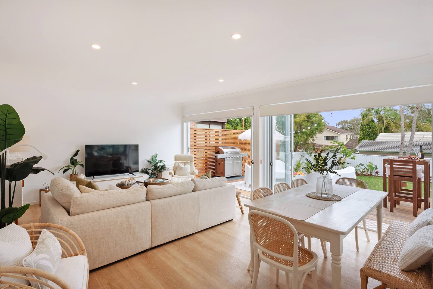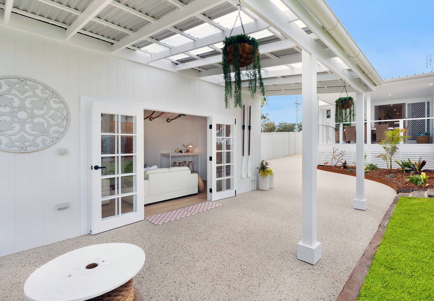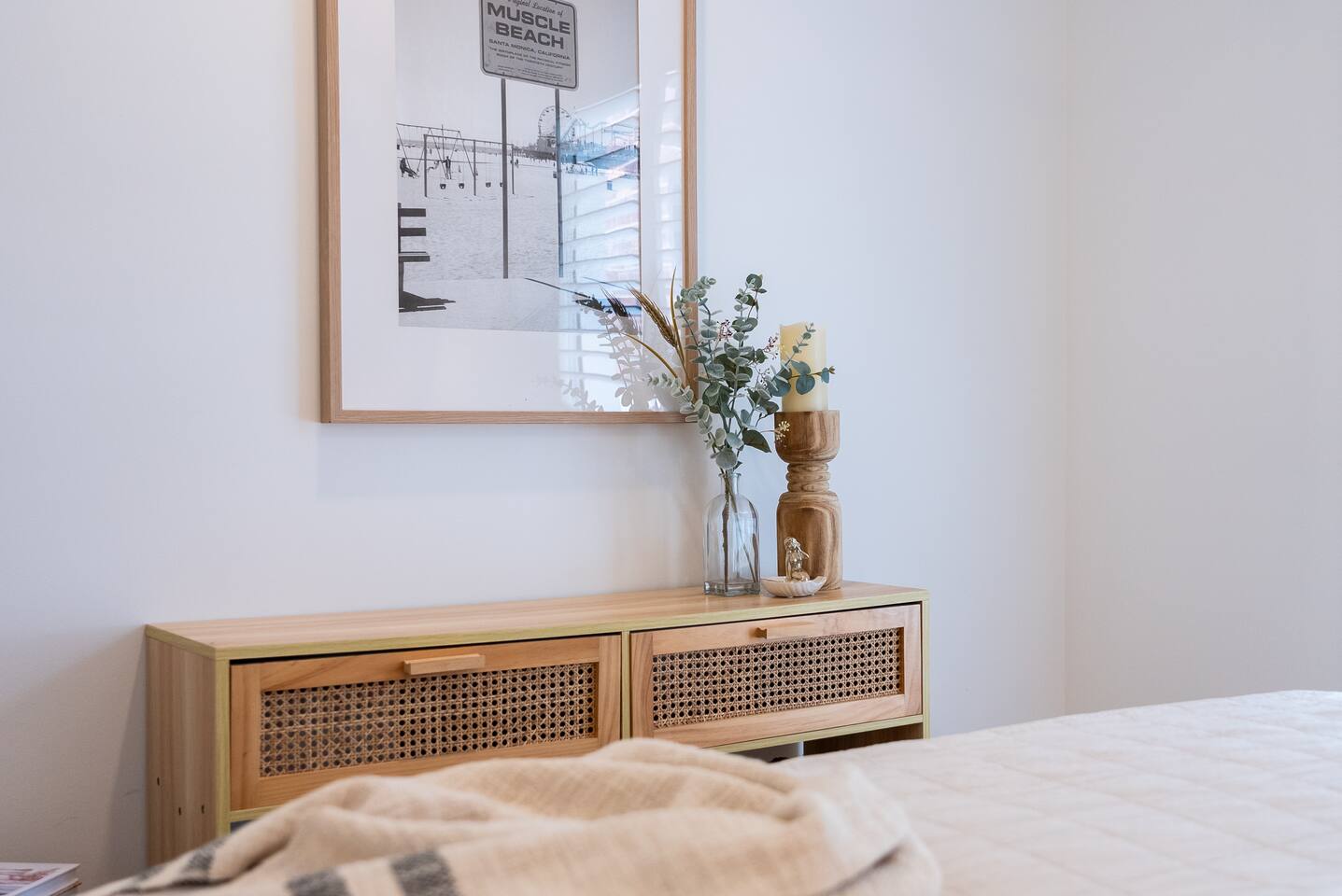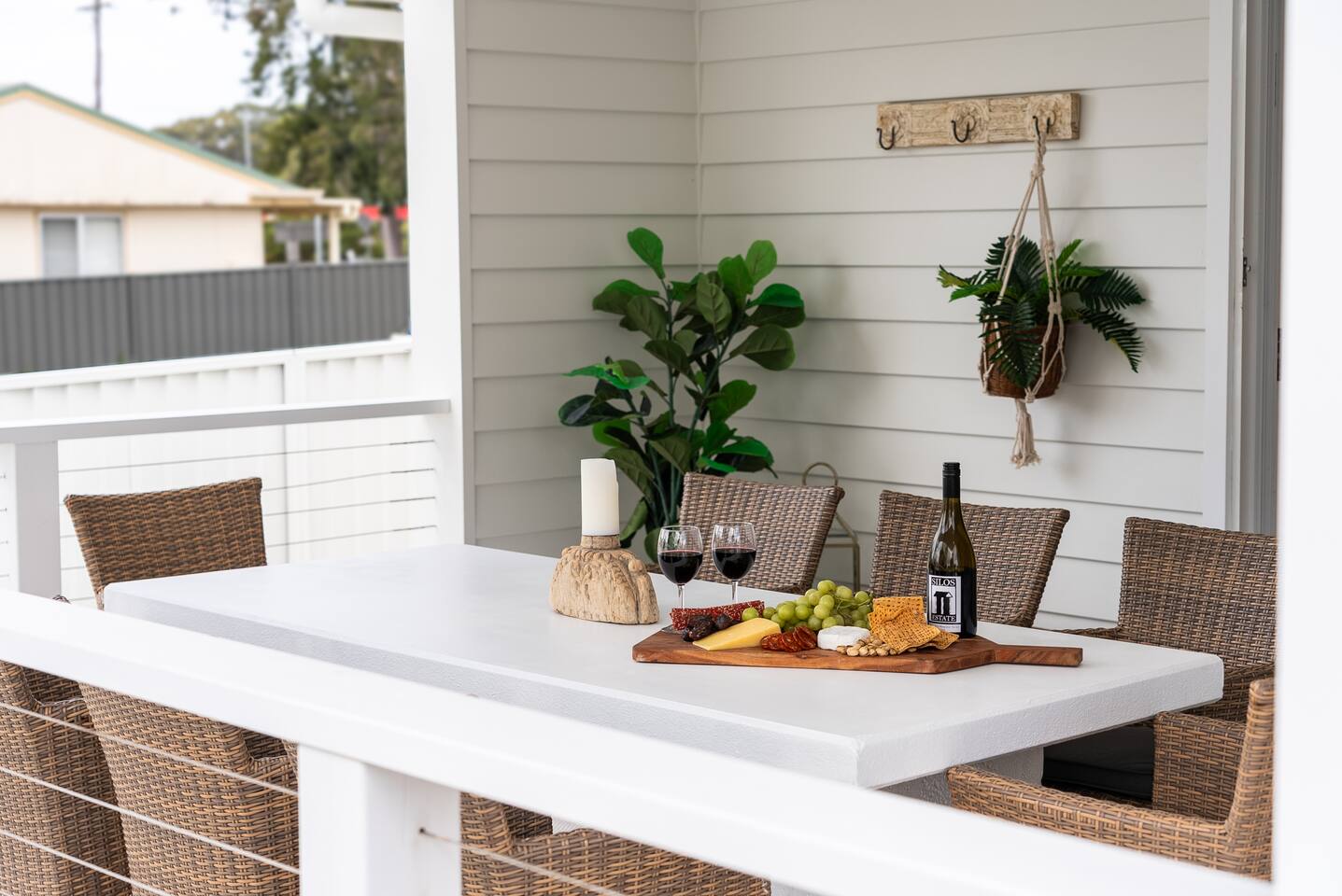 Welcome to Salt, a quintessential boho beach house in the most convenient of Jervis Bay locations that is sure to steal your heart, managed by The FAM Holiday Property Management in Jervis Bay, . Salt is quite simply beautiful at every corner. Stunning furniture, design and details set the tone for this stylish retreat with whites, neutrals, timber and rattan creating a beachside vibe. Outside, the yard is crowned by a beautiful, large deck overlooking our fully landscaped fenced garden, fire pit area and, the icing on the cake, our awesome additional rumpus room ensuring there’s space for everyone. Having recently been fully renovated to a quality finish, the property is modern, fresh and functional with every amenity you could need. All just a few mins to local cafes for your morning barista coffee fix or the white sands of Jervis Bay. * Best bits of Salt * - Fully renovated, high quality property with fresh and modern interior - Truly beautiful, boho coastal style makes for a stunning backdrop to your Jervis Bay escape - Sundrenched living space, filled with natural light and beautiful garden views. Large lounge with chaise, TV including Apple TV connection - Stunningly landscaped backyard and sundeck, enjoy alfresco living at its best with our inside/outside feel, BBQ and beautiful firepit area. Undercover outdoor dining area with glimpses of Jervis Bay's crystal clear water - Fully equipped kitchen with electric stove & oven, Nespresso coffee machine - Additional living space in our rumpus room with TV, workspace and bar fridge. Perfect for multigenerational families or those travelling with friends looking for some space to spread out and relax or a spot to catch up on work if required - 4 bedrooms with hotel quality linen, towels and spare beach towels provided - Hot outdoor shower - Furry friends welcome and enclosed in our fenced yard - Just a couple of minutes to local shops, cafes, restaurants and children’s play area at Vincentia Village. 250m to the sands of Collingwood Beach and the walking/bike track that runs from Huskisson and on to Hyams Beach. 5 minutes drive to Huskisson, less than 10 to Hyams Beach and The Boodereee National Park - Tea, coffee, basic pantry supplies, natural cleaning products & luxury Two Good Co toiletries provided. Local barista coffee voucher, handmade chocolates and Silos Estate wine for every guest - The very insider local tips shared in our in house magazine * Need to know * - Sleeps 8 in 4 bedrooms, 3 x queen, 1 x twin single - 2 brand new, beautiful bathrooms. Main includes large walk-in shower and oversized vanity - AC in living space, ceiling fans and additional heaters/portable fans to ensure your comfort - NBN Wifi - Games, toys and Bluetooth speaker - Euro laundry featuring washing machine, dryer, sink and dishwasher
