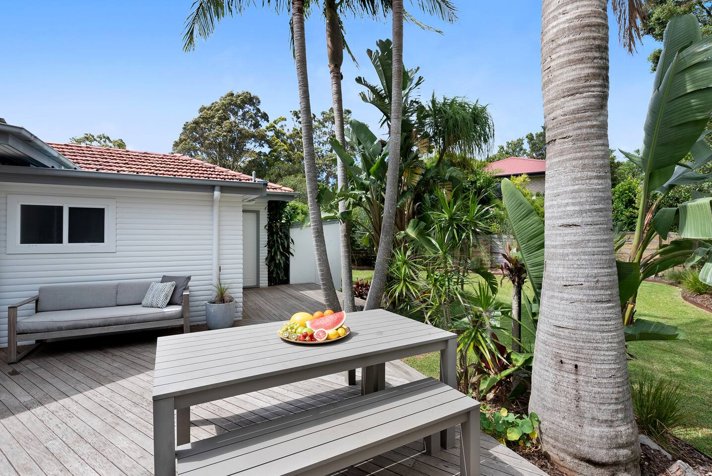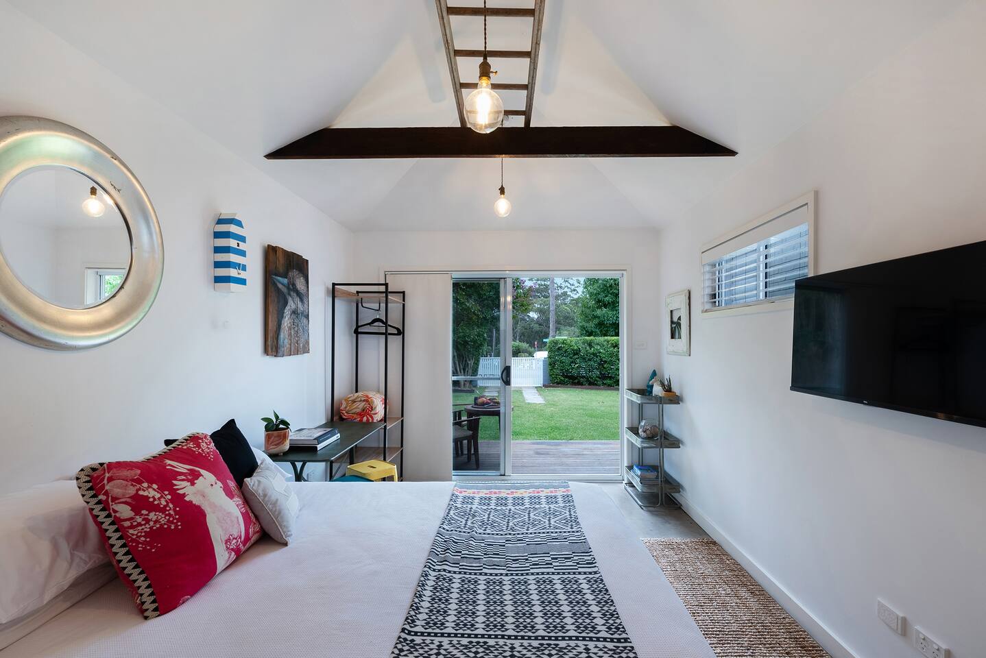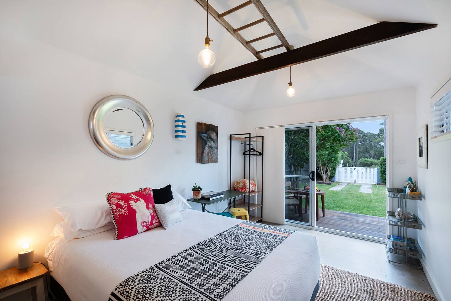 Enjoy something truly special when you stay at SiX Huskisson, managed by The FAM Holiday Property Management in Jervis Bay. This spacious retreat is one of a kind, from its prime position in the centre of town (walk everywhere and enjoy your own easy parking in Huskisson!) to its luxurious interior, impressive art collection and beautiful, mature gardens. There is so much to enjoy at this unique, high end property, SiX is guaranteed to impress. *Please note - SiX is having some refreshes - there are some minor artwork and furnishing changes. Two bathrooms (bathroom 2 and 3 - both ensuites) are being renovated and will be brand new prior to bookings opening January 2026. Please ask for further info if required before booking* An iconic property in Huskisson, SiX has a rich history as holiday accommodation and is drenched with character and charm. Now fully renovated and refreshed, the property has luxurious finishes, four ensuite bedrooms (one being a separate ensuite studio with kitchenette - perfect for multi generational families or couples), high end appliances, ducted AC and log fire - as well as four TVs, Wifi and everything else you could need. The spacious home boasts large rooms including two living areas and is drenched with natural light. Curated with a creative flair and plenty of personality, SiX is a visual delight. What's more, enjoy an incredible display of artworks from local Indigenous artists to quirky photographers and international creatives. Outside, the gardens are a work of art too. Enjoy mature, native plants and established grounds as well as three outdoor living areas, outdoor shower and BBQ. All this in the heart of Huskisson, yet in complete privacy. The centre of town is a short, flat walk to cafes, restaurants, shops and breweries whilst Huskisson's beaches, Currambene Creek and Woollamia boat ramp are also close by. Local markets are held across the street, the Jervis Bay Maritime Museum and mangrove board walk are on your doorstep. It's also just a short drive to larger supermarkets, Vincentia and Hyams beaches and the Booderee National Park. You will not be disappointed at SiX! * Best bits of SiX * - Luxurious, statement, Huskisson retreat - Four bedrooms, all ensuite. Three of which are in the main house (one king master, one queen, one with queen and single) and one is a separate studio building with its own bathroom and kitchenette. This is great for those travelling with parents, relatives or friends who enjou their own private area. Meanwhile, inside our master suite is incredibly special with its king bed, stunning walk in shower and bathtub - Luxury finishes and incredible, unique and colourful style - Beautiful artworks and unique furniture including retro pieces - Fully equipped, luxury kitchen including stove, microwave, Nespresso machine, water cooler/ice maker - Log fire, AC - Multiple alfresco areas, BBQ, outdoor hot shower, incredible mature gardens - Water glimpses of Jervis Bay from the lounge and front deck - Short walk to Huskisson town centre, short drive to all of Jervis Bay's beaches and the Booderee National Park - Pets welcome - see our house rules for pet conditions. Fully fenced yard - All luxury linen, towels and spare beach towels provided - Tea, coffee, basic pantry supplies, natural cleaning products & luxury Two Good Co toiletries provided. Local barista coffee voucher, handmade chocolates and Silos Estate wine in our welcome gift - The very best insider local tips shared in our in house magazine * Need to know * - Wifi - Four TVs, three of which are smart - Internal laundry with washer and separate dryer. Further 5th toilet in the laundry - Pets welcome with conditions - see our house rules and enquire with any questions - Strict no party policy