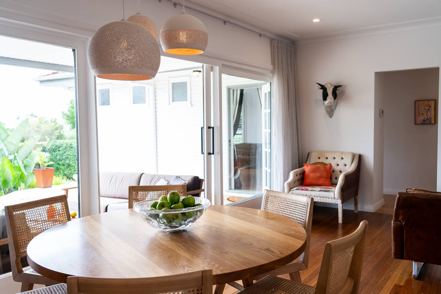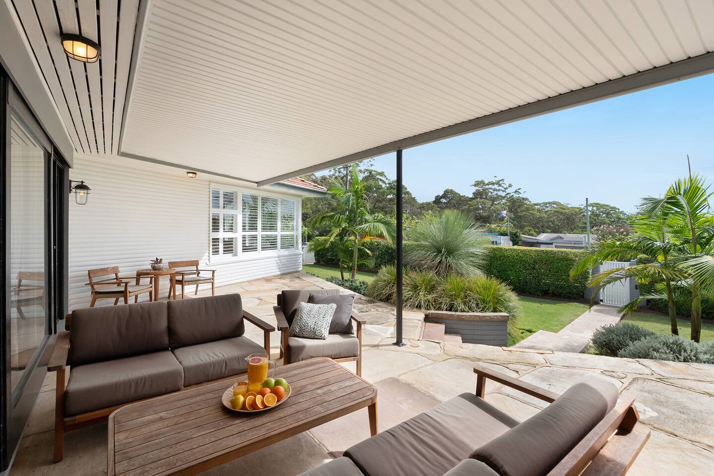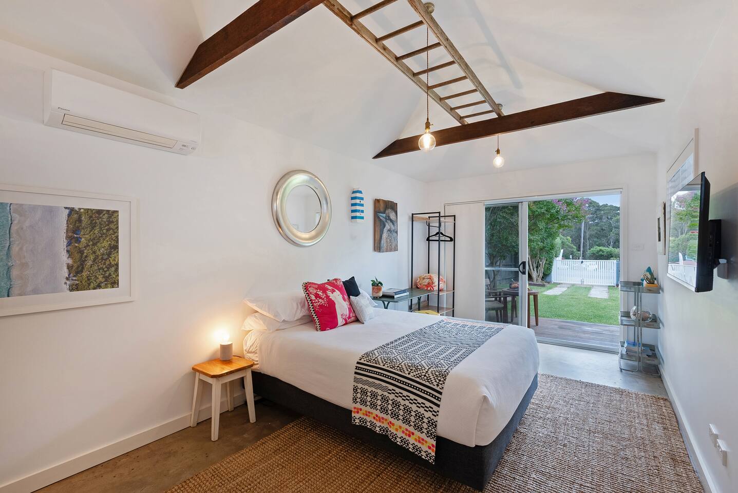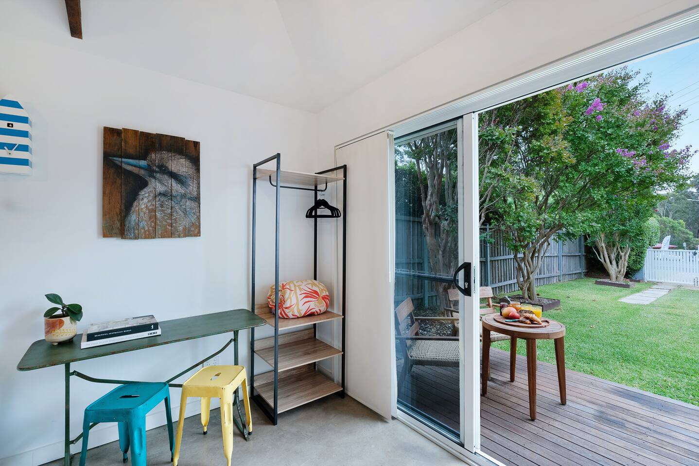 Enjoy something truly special when you stay at SiX Huskisson, managed by The FAM Holiday Property Management in Jervis Bay. This spacious retreat is one of a kind, from its prime position in the centre of town (walk everywhere and enjoy your own easy parking in Huskisson!) to its luxurious interior, impressive art collection and beautiful, mature gardens. There is so much to enjoy at this unique, high end property, SiX is guaranteed to impress. *Please note - SiX is having some refreshes - there are some minor artwork and furnishing changes. Two bathrooms (bathroom 2 and 3 - both ensuites) are being renovated and will be brand new prior to bookings opening January 2026. Please ask for further info if required before booking* An iconic property in Huskisson, SiX has a rich history as holiday accommodation and is drenched with character and charm. Now fully renovated and refreshed, the property has luxurious finishes, four ensuite bedrooms (one being a separate ensuite studio with kitchenette - perfect for multi generational families or couples), high end appliances, ducted AC and log fire - as well as four TVs, Wifi and everything else you could need. The spacious home boasts large rooms including two living areas and is drenched with natural light. Curated with a creative flair and plenty of personality, SiX is a visual delight. What's more, enjoy an incredible display of artworks from local Indigenous artists to quirky photographers and international creatives. Outside, the gardens are a work of art too. Enjoy mature, native plants and established grounds as well as three outdoor living areas, outdoor shower and BBQ. All this in the heart of Huskisson, yet in complete privacy. The centre of town is a short, flat walk to cafes, restaurants, shops and breweries whilst Huskisson's beaches, Currambene Creek and Woollamia boat ramp are also close by. Local markets are held across the street, the Jervis Bay Maritime Museum and mangrove board walk are on your doorstep. It's also just a short drive to larger supermarkets, Vincentia and Hyams beaches and the Booderee National Park. You will not be disappointed at SiX! * Best bits of SiX * - Luxurious, statement, Huskisson retreat - Four bedrooms, all ensuite. Three of which are in the main house (one king master, one queen, one with queen and single) and one is a separate studio building with its own bathroom and kitchenette. This is great for those travelling with parents, relatives or friends who enjou their own private area. Meanwhile, inside our master suite is incredibly special with its king bed, stunning walk in shower and bathtub - Luxury finishes and incredible, unique and colourful style - Beautiful artworks and unique furniture including retro pieces - Fully equipped, luxury kitchen including stove, microwave, Nespresso machine, water cooler/ice maker - Log fire, AC - Multiple alfresco areas, BBQ, outdoor hot shower, incredible mature gardens - Water glimpses of Jervis Bay from the lounge and front deck - Short walk to Huskisson town centre, short drive to all of Jervis Bay's beaches and the Booderee National Park - Pets welcome - see our house rules for pet conditions. Fully fenced yard - All luxury linen, towels and spare beach towels provided - Tea, coffee, basic pantry supplies, natural cleaning products & luxury Two Good Co toiletries provided. Local barista coffee voucher, handmade chocolates and Silos Estate wine in our welcome gift - The very best insider local tips shared in our in house magazine * Need to know * - Wifi - Four TVs, three of which are smart - Internal laundry with washer and separate dryer. Further 5th toilet in the laundry - Pets welcome with conditions - see our house rules and enquire with any questions - Strict no party policy