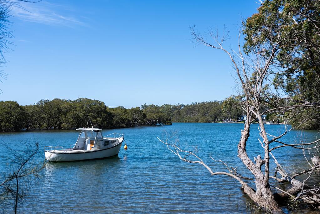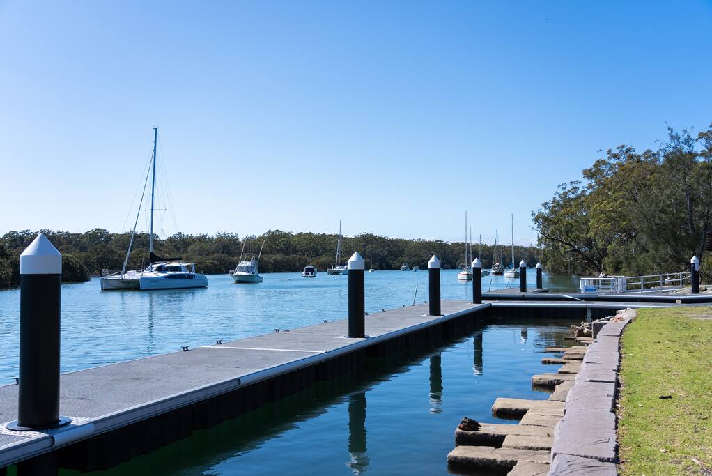 Love the water? Look no further than The Banks, managed by The FAM Holiday Property Management in Jervis Bay. With unrivalled access to Currambene Creek - the mouth of Jervis Bay - you'll be in heaven here! Located in a prime and sought after waterfront location, The Banks is the perfect luxury retreat for anyone who loves the water. Whether you're bringing your boat, love to fish, kayak, paddle board, birdwatch or just soak up the views of Currambene Creek, the mangroves and native wildlife, you'll love it here. The house itself is a grand, spacious and high quality architectural build - with high ceilings, plenty of natural light and luxury finishes including hard wood floors and spectacular stone top kitchen. The huge master suite enjoys stunning views of Currambene Creek, has its own balcony and oversized ensuite bathroom. Three further bedrooms and two further bathrooms are spacious, stylish and comfortable. Alongside the kitchen of your dreams, there are two living zones, dining area, huge back deck, indoor wood fire and outdoor fire pit. The Banks is fully fenced and pet friendly. With beautiful furnishings, artwork inspired by its location and all the necessary amenities thought of, there really is everything you need here. Launch your kayak from the reserve out the back of the house or take larger boats to local boat ramps nearby. What's more, it's a flat 1km walk to award winning breweries and artisan bakeries and 2km walk into the centre of Huskisson. Or take a ten minute drive to Vincentia or a little further to Hyams Beach and Booderee National Park. * Best bits of The Banks * - Waterfront property in prime location on the banks of Currambene Creek, the main tidal estuary to Jervis Bay - Stunning views of the water and bushland - Luxurious, high quality and spacious modern home - Over sized master suite enjoying incredible views, private balcony and ensuite - Further three bedrooms and two modern, high quality bathrooms - Large kitchen with gas stovetop, luxury 900mm oven, second microwave/oven/grill combo, French door fridge, dishwasher, Nespresso coffee machine. Stunning marble bench top and large kitchen island - Wood combustion fireplace - Fenced backyard with water views, fire pit, large undercover deck, BBQ and outdoor shower - Walk to the centre of Huskisson and local breweries, follow the concreted cycle path from outside the house all the way to Vincentia along the water's edge - Pets welcome - rules apply - All luxury linen, towels and spare beach towels provided - Tea, coffee, basic pantry supplies, natural cleaning products & luxury Two Good Co toiletries provided. Local barista coffee voucher, handmade chocolates and Silos Estate wine in our welcome gift - The very best insider local tips shared in our in house magazine * Need to know * - Sleeps 10 in 4 large bedrooms. Ensuite queen master, 2 queen rooms, 1 room with queen and single bunks. We prefer a maximum of 8 adults and 2 children due to the bunk beds. Note adults should not sleep on the top bunk - Wifi and Smart TV - AC in living space, wood fire, additional ceiling fans - Laundry with washing machine and dryer