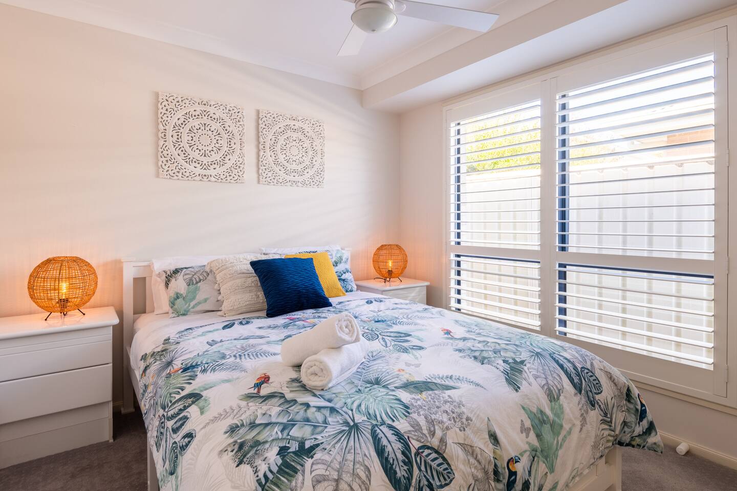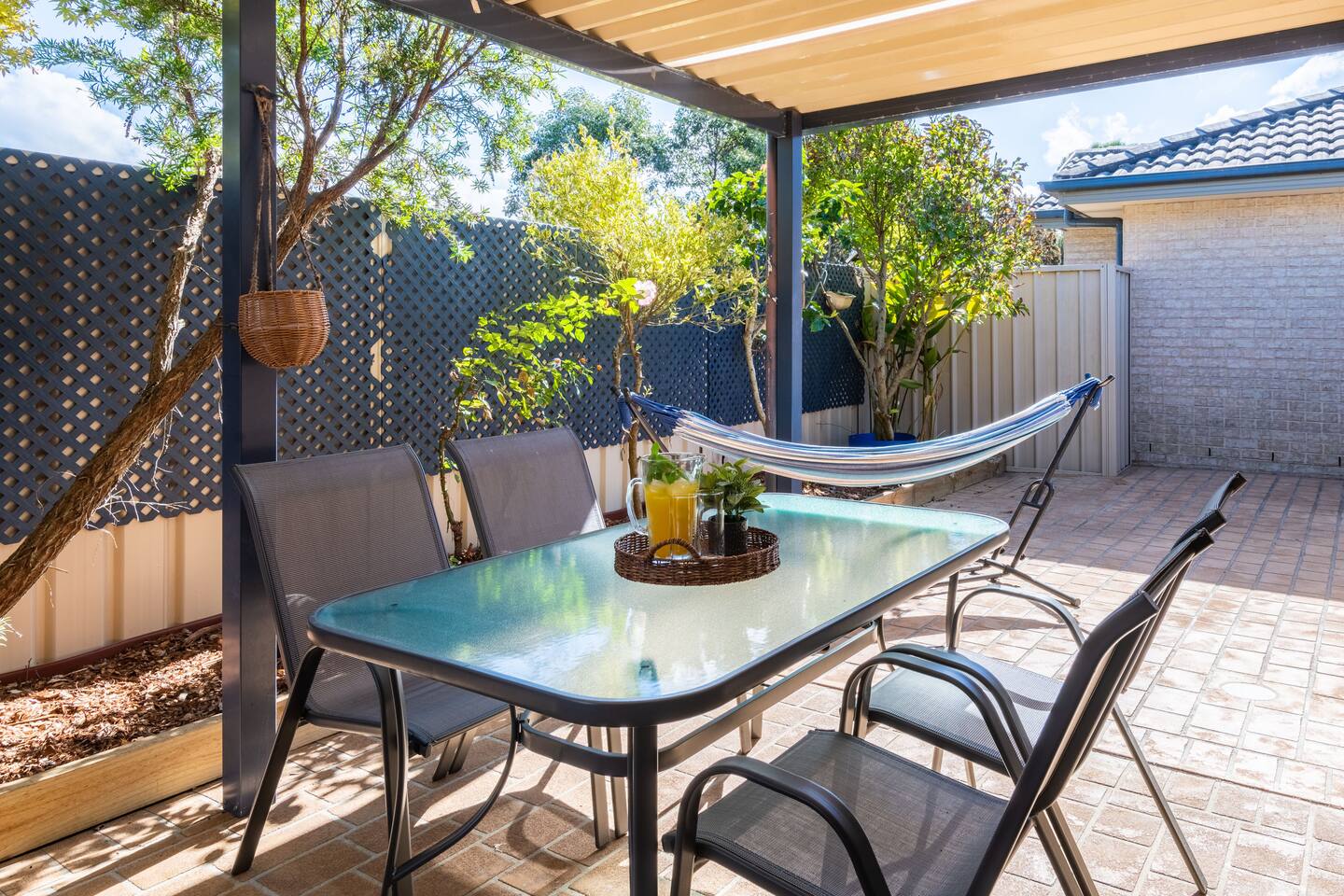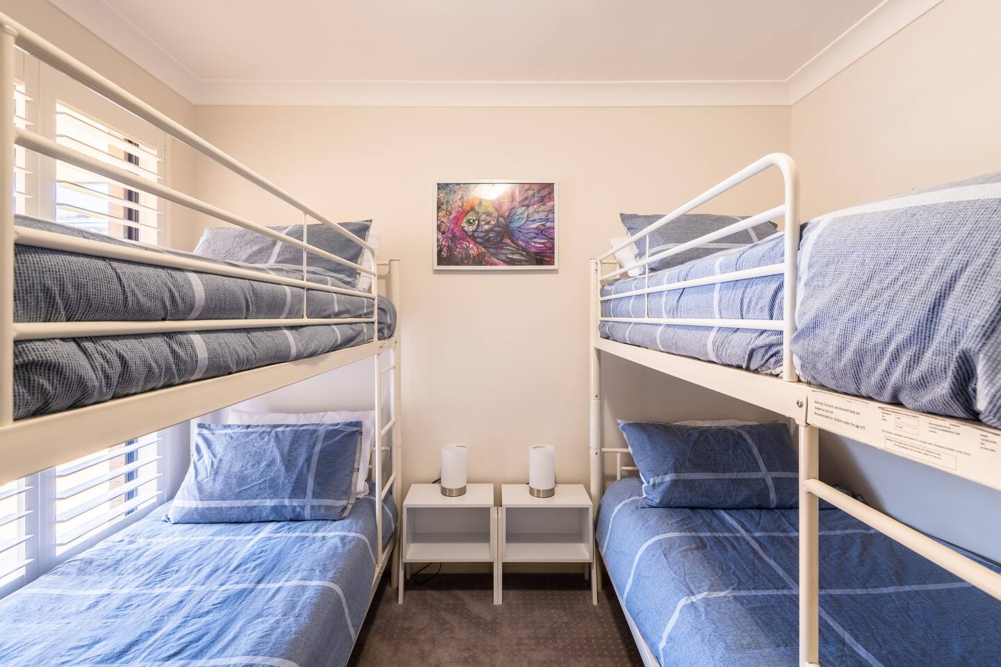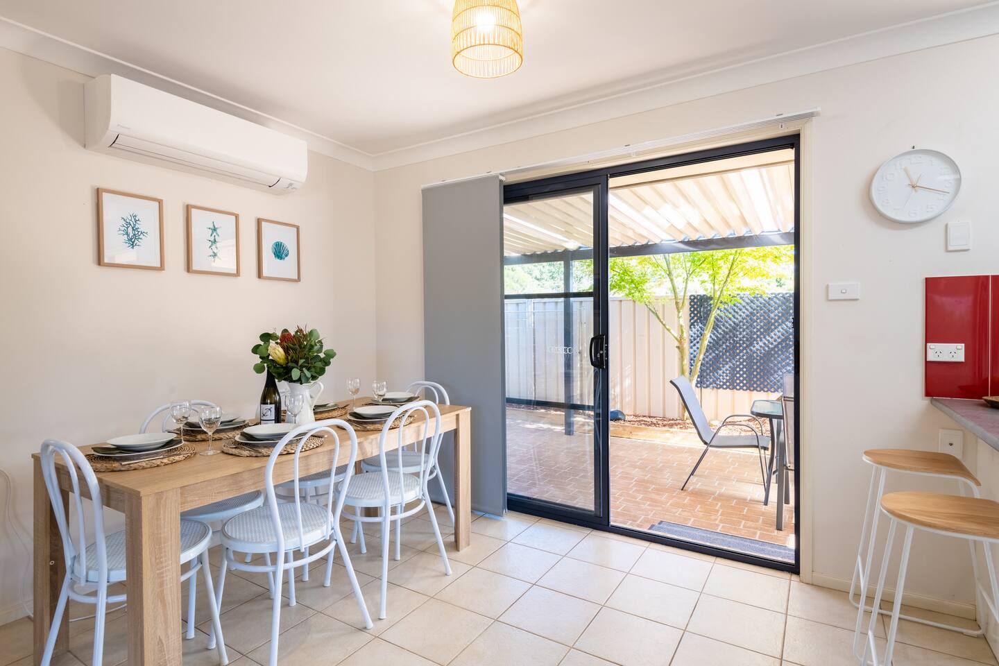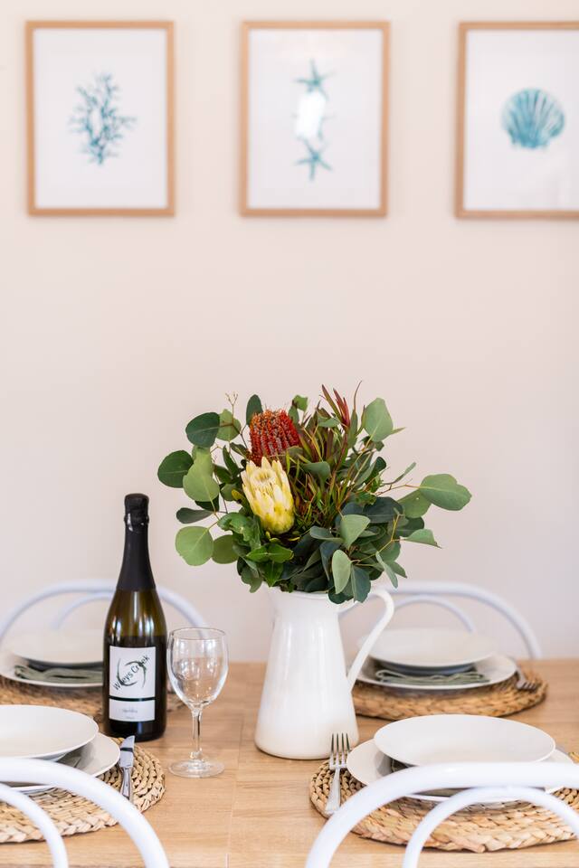 Situated at the end of a peaceful cul de sac and nestled against the bush yet still just moments from everything Jervis Bay has to offer, The Bay Villa is tranquil, welcoming, fully equipped and well presented, managed by The FAM Holiday Property Management in Jervis Bay. Designed for families to make holidays with kids enjoyable and easy and located in a great spot for bike rides, walks, visiting shops or cafes plus easy beach access. We have three bedrooms (1 x King, 1 x Queen and 1 with 4 x Single Bunks), sleeping 8 in total but prefer a maximum of 4 adults and 4 children. Please send a message to us before booking stays for more than 4 adults. We only accept family groups. We also have a porta cot for infants under the age of 2. Best bits of The Bay Villa - Calm and peaceful oasis with beautiful courtyard, hammock, outdoor dining area, large bbq - Newly furnished property, beautifully styled and well presented - Modern and full equipped kitchen, Nespresso coffee, tea, sugar provided - Equipped with everything to make family holidays a breeze - including travel cot, highchair and kids bunk room - Air conditioning in main living area and ceiling fans in two bedrooms, additional heater and fan - Master bedroom features King bed and TV - Plantation shutters throughout bedrooms and living area - Wifi, Smart TV as well as kids toys and board games to keep everyone entertained - All linen & bath towels provided with a few spare beach towels - Just a couple of minutes drive or less than ten minutes walk to Collingwood and Orion beach, Vincentia shops, cafes and restaurants - Less than ten minutes to Huskisson, Hyams Beach and the Booderee National Park - Quiet cul de sac location, easy walk to beach and waterside walking track to Huskisson or Hyams beach makes for great family adventures, perfect for scooters or bikes - Many local playgrounds in Vincentia and Huskisson close by, indoor swimming pool with large, fun waterslide, kids and 25m pool, less than 5 minutes drive - All guests receive complimentary local wine and handmade chocolates as well as luxury body wash, hand wash, cleaning and laundry supplies - Highly detailed guest information booklet with extensive local tips to make the most of your stay Need to know - 3 bedrooms with master featuring a King bed, second Queen room and third room sleeping 4 children in 2 sets of single bunk beds. All include built in robes - Immaculate, well equipped kitchen with new appliances including Nespresso coffee machine, microwave, toaster, large fridge/freezer and dishwasher - Bathroom with bath and separate shower - Large barbeque and outdoor dining area - Internal laundry with large top loader washer. Additional toilet and sink in laundry - nbn wifi