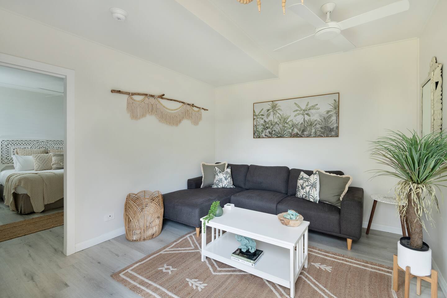 The Cottage at Bayside, managed by The FAM Holiday Property Management in Jervis Bay, is a stunning retreat right on Collingwood Beach, Jervis Bay. Wake up just seconds from the white sand and enjoy the sunrise over the bay before strolling along the waterside walking track that passes the property. What's more it's just moments walk from Vincentia shops and cafes and a short drive to bustling Huskisson with its boutique shops, brunch and brewery scene, Hyams Beach and the Booderee National Park. The space has been beautifully styled with a designer, coastal feel whilst comfort is abundant with an indulgent queen bed, luxury linens and cosy lounge. With a Smart TV and access to many streaming apps, AC, Nespresso machine and basic kitchenette you're equipped with everything you need to enjoy a restful, convenient stay. * Best bits of the Cottage at Bayside * - Absolute beachfront location - direct access to the beach out the back gate, across a small public walk way and onto the beach - Spectacular styling and interior design - a true luxury oasis with beauty at every corner - Queen bedroom and separate lounge/dining area with kitchenette facilities - Nespreso coffee machine, kettle, toaster, microwave and basic kitchen utensils/crockery/cutlery - Modern bathroom with shower - Smart TV with streaming apps in bedroom - Direct access to the waterside walking track that runs from Hyams Beach to Huskisson - soak up the best of Jervis Bay without getting in the car! - 1 minute drive to local boat ramp - Short walk to local shops, cafes and restaurants, short drive to Huskisson, Hyams Beach, The Booderee National Park - Detailed in house booklet with the best insider local tips to make the most of your stay - All linen & towels, luxury toiletries as well as household supplies provided. BYO beach towels - Complimentary Silos Estate wine, local handmade chocolates & barista cafe coffee voucher for guests * Need to know * - Wifi - AC - Our kitchenette is limited - and please note you will need to wash up in the bathroom sink as it's more of a hotel room style set up - The Cottage at Bayside is part of a larger property - there is a four bedroom separate house that will not be occupied during your stay here too