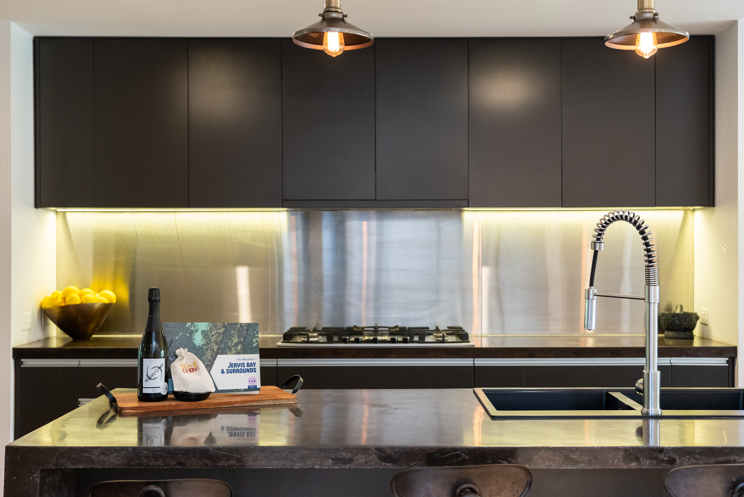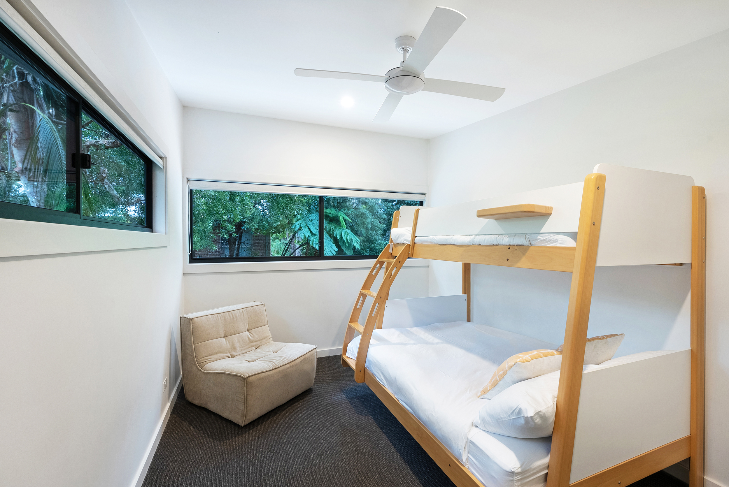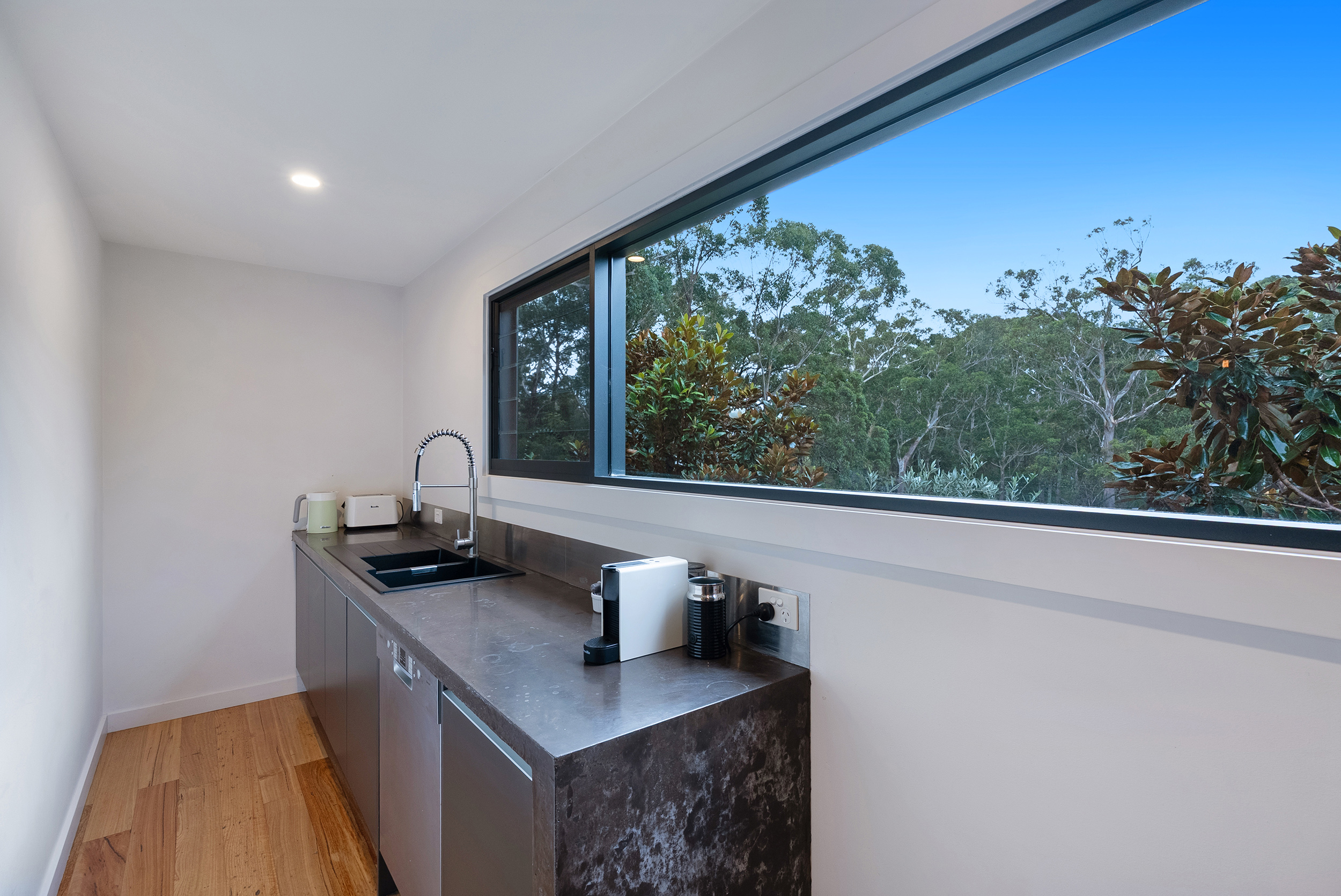 * LATE CHECK OUT OF 3PM AVAILABLE SUNDAY TO THURSDAY UNTIL SEPTEMBER 24TH 2026 EXCLUDING JULY SCHOOL HOLIDAYS. SUBJECT TO AVAILABILITY. PLEASE CONFIRM AT TIME OF BOOKING. * Escape to designer luxury and architectural style at The Twig, a unique, stunning home nestled amongst native trees above Blenheim Beach, Jervis Bay. On one of Vincentia's most peaceful streets, The Twig enjoys peaceful surroundings with national park, the beautiful White Sands Walk and secluded beaches just minutes away whilst local shops and cafes are a short drive and bustling Huskisson with its boutique stores, award winning breweries, wildlife watching tours and restaurants, Hyams Beach and the Booderee National Park are less than 10 minutes away. A one of a kind home, The Twig enjoys a stunning palette of timber, exposed concrete and striking black design with a breathtaking floor to ceiling glass entry and natural light flooding in throughout. The main suite is unmissable with its luxury ensuite, shower and bath looking out over a private, leafy courtyard with outdoor shower - you'll feel like you're at an exclusive resort! At the heart of the home is the beautiful, fully equipped kitchen with gas stove and walk in pantry. Flowing from here are stunning living spaces, with a dining area (featuring kids and adults tables!) and cosy lounge with fire place opening onto the leafy back yard and undercover alfresco dining area with gas BBQ. Alongside this, enjoy two further bedrooms, main bathroom, powder room, laundry, second lounge with sofa bed and in the garage, you'll find a home gym. Outside, greenery is in abundance from the native trees that surround the property to grassy back yard with fire pit area. You really will feel a million miles from the hustle and bustle of everyday life at this beautiful home! * Best bits of The Twig * - Architecturally designed, luxury build with stunning style - Incredible main suite with resort feeling, overlooking private leafy courtyard and outdoor shower, walk in shower and bath - Spacious, open plan living area opening onto alfresco deck and leafy yard. Wood fire and Smart TV making for cosy evenings anytime of the year - Two further bedrooms, one with double bed and one with double/single bunk combo - Fully equipped luxury kitchen with stone bench top, gas stove and walk in pantry - Second lounge with further Smart TV and double sofa bed - note this room has no door or window coverings - Undercover deck with BBQ and dining area - Grassy back yard and fire pit area - Further main bathroom and downstairs powder room - Garage with parking for one car and home gym set up - Enjoy visits from local native birds and incredible leafy views - Tea, coffee, basic pantry supplies, natural cleaning products and luxury Two Good Co toiletries provided - Local barista coffee voucher, handmade chocolates and Silos Estate wine for every booking - All linen and bath towels provided - Insider local tips shared in our in-house magazine * Need to know * - Sleeps 7 plus infants or 9 if using sofa bed - available only on prior request. Maximum of 6 adults plus children at any time - no adults are allowed on top bunk or sofa bed. Main bedroom has a queen bed, further double bedroom, double/single bunk and sofa bed - The main suite is downstairs with main living, kitchen, dining, alfresco spaces, laundry and powder room. Further two bedrooms, bathroom and lounge are upstairs, so whilst this property has stairs it would be possible for guests with accessibility needs to use the ground floor facilities - Wifi, 2 Smart TVs - Wood fire, AC in living space, ceiling fans and heaters for bedrooms - Internal laundry with washing machine and dryer