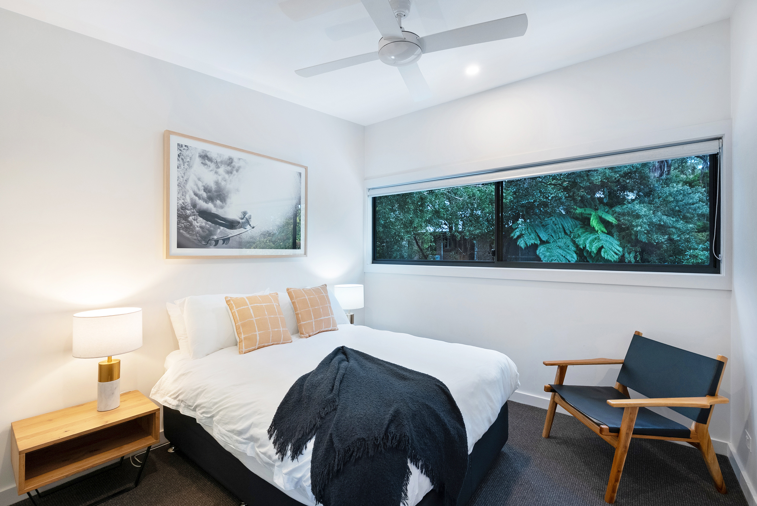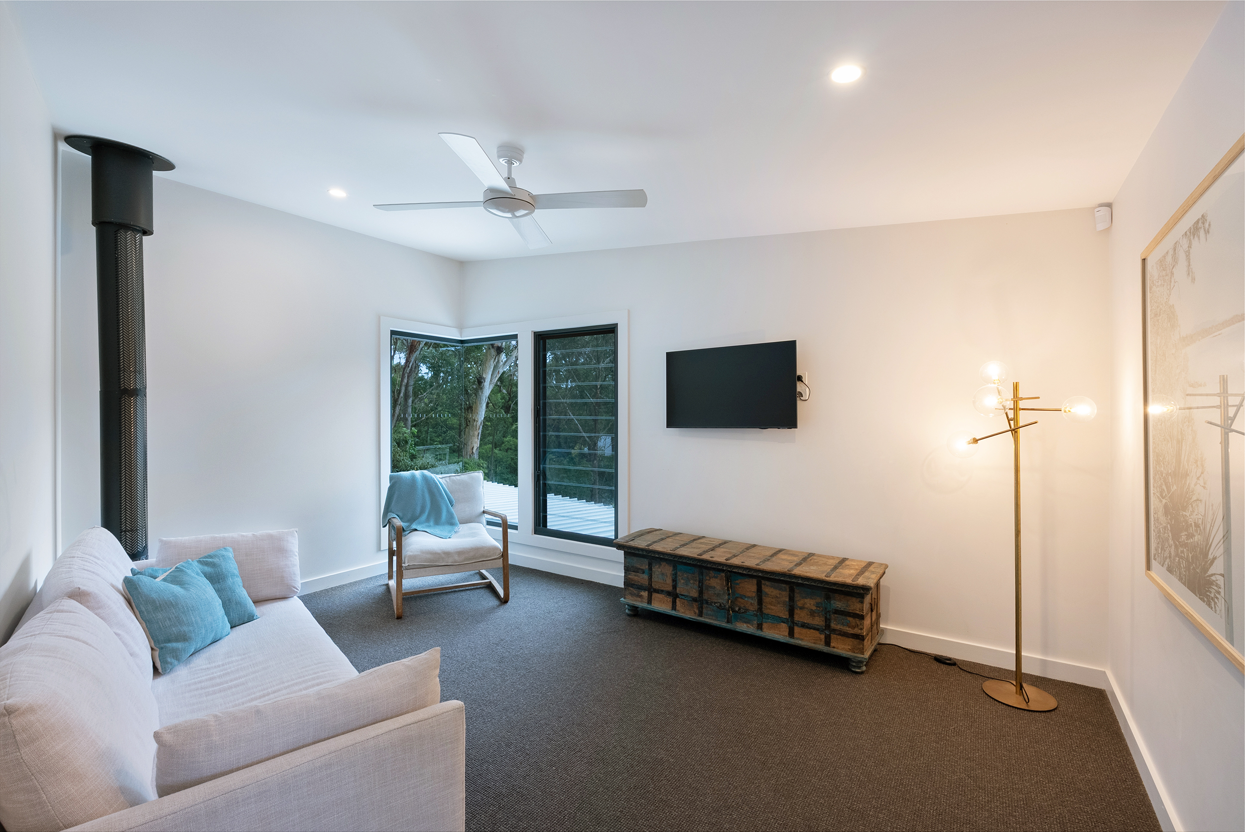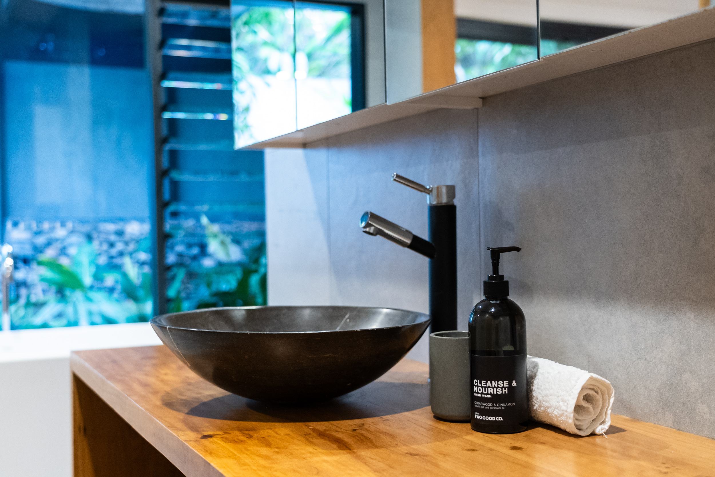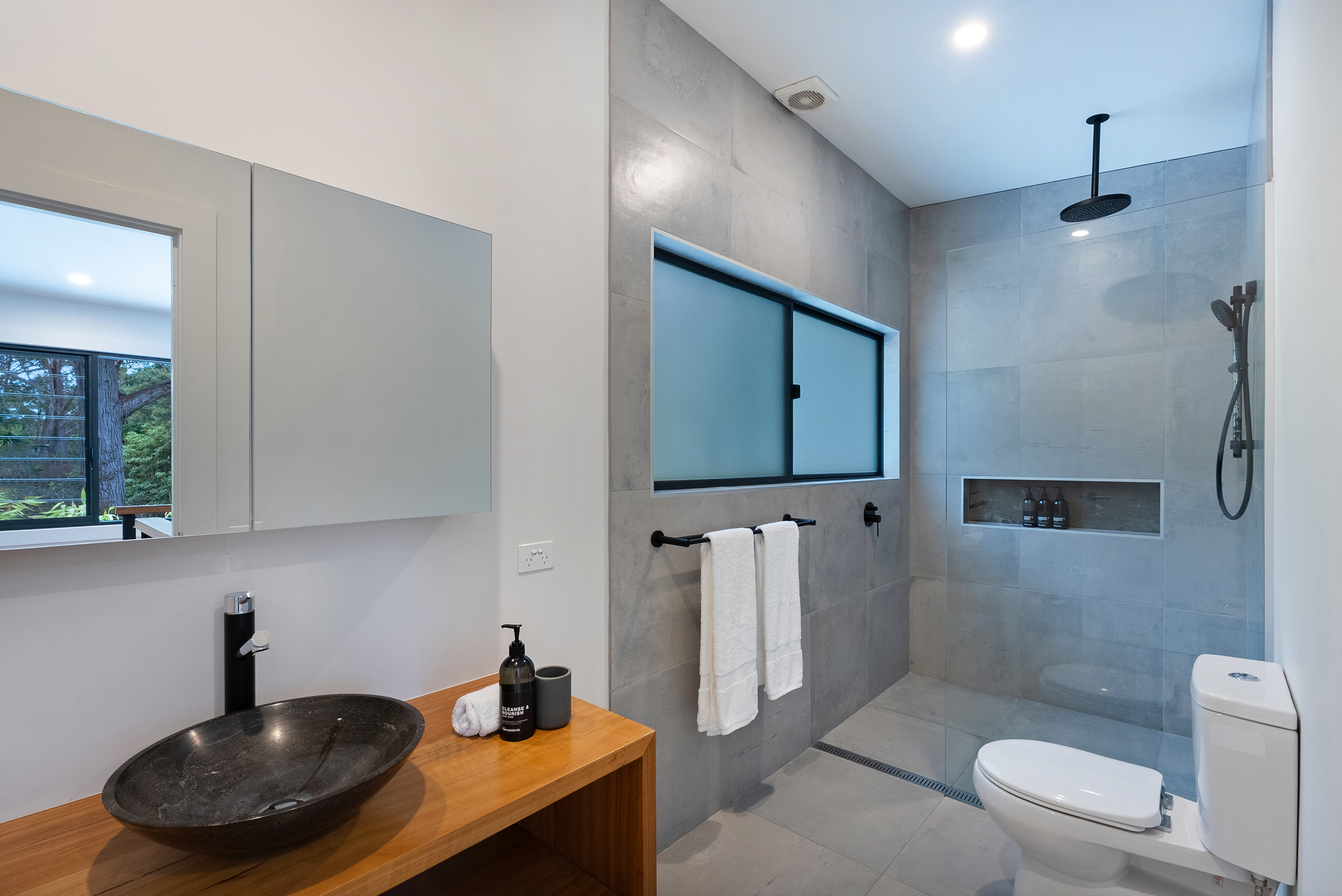 * LATE CHECK OUT OF 3PM AVAILABLE SUNDAY TO THURSDAY UNTIL SEPTEMBER 24TH 2026 EXCLUDING JULY SCHOOL HOLIDAYS. SUBJECT TO AVAILABILITY. PLEASE CONFIRM AT TIME OF BOOKING. * Escape to designer luxury and architectural style at The Twig, a unique, stunning home nestled amongst native trees above Blenheim Beach, Jervis Bay. On one of Vincentia's most peaceful streets, The Twig enjoys peaceful surroundings with national park, the beautiful White Sands Walk and secluded beaches just minutes away whilst local shops and cafes are a short drive and bustling Huskisson with its boutique stores, award winning breweries, wildlife watching tours and restaurants, Hyams Beach and the Booderee National Park are less than 10 minutes away. A one of a kind home, The Twig enjoys a stunning palette of timber, exposed concrete and striking black design with a breathtaking floor to ceiling glass entry and natural light flooding in throughout. The main suite is unmissable with its luxury ensuite, shower and bath looking out over a private, leafy courtyard with outdoor shower - you'll feel like you're at an exclusive resort! At the heart of the home is the beautiful, fully equipped kitchen with gas stove and walk in pantry. Flowing from here are stunning living spaces, with a dining area (featuring kids and adults tables!) and cosy lounge with fire place opening onto the leafy back yard and undercover alfresco dining area with gas BBQ. Alongside this, enjoy two further bedrooms, main bathroom, powder room, laundry, second lounge with sofa bed and in the garage, you'll find a home gym. Outside, greenery is in abundance from the native trees that surround the property to grassy back yard with fire pit area. You really will feel a million miles from the hustle and bustle of everyday life at this beautiful home! * Best bits of The Twig * - Architecturally designed, luxury build with stunning style - Incredible main suite with resort feeling, overlooking private leafy courtyard and outdoor shower, walk in shower and bath - Spacious, open plan living area opening onto alfresco deck and leafy yard. Wood fire and Smart TV making for cosy evenings anytime of the year - Two further bedrooms, one with double bed and one with double/single bunk combo - Fully equipped luxury kitchen with stone bench top, gas stove and walk in pantry - Second lounge with further Smart TV and double sofa bed - note this room has no door or window coverings - Undercover deck with BBQ and dining area - Grassy back yard and fire pit area - Further main bathroom and downstairs powder room - Garage with parking for one car and home gym set up - Enjoy visits from local native birds and incredible leafy views - Tea, coffee, basic pantry supplies, natural cleaning products and luxury Two Good Co toiletries provided - Local barista coffee voucher, handmade chocolates and Silos Estate wine for every booking - All linen and bath towels provided - Insider local tips shared in our in-house magazine * Need to know * - Sleeps 7 plus infants or 9 if using sofa bed - available only on prior request. Maximum of 6 adults plus children at any time - no adults are allowed on top bunk or sofa bed. Main bedroom has a queen bed, further double bedroom, double/single bunk and sofa bed - The main suite is downstairs with main living, kitchen, dining, alfresco spaces, laundry and powder room. Further two bedrooms, bathroom and lounge are upstairs, so whilst this property has stairs it would be possible for guests with accessibility needs to use the ground floor facilities - Wifi, 2 Smart TVs - Wood fire, AC in living space, ceiling fans and heaters for bedrooms - Internal laundry with washing machine and dryer