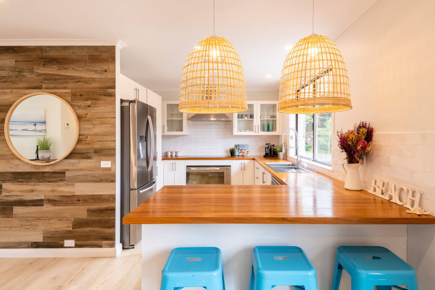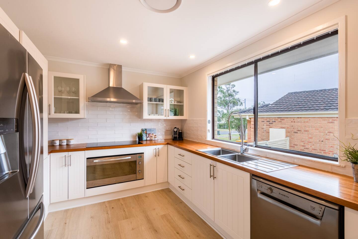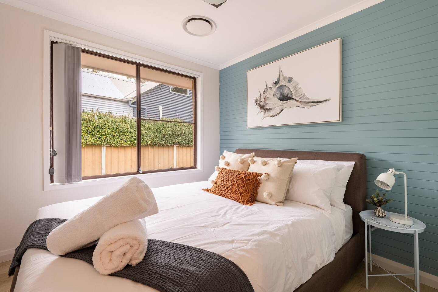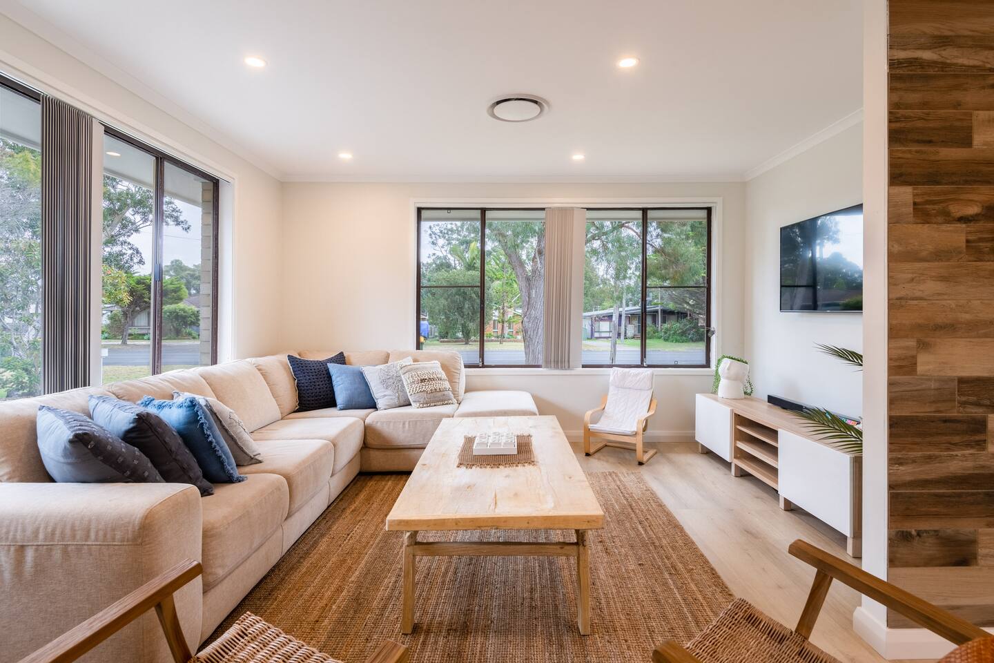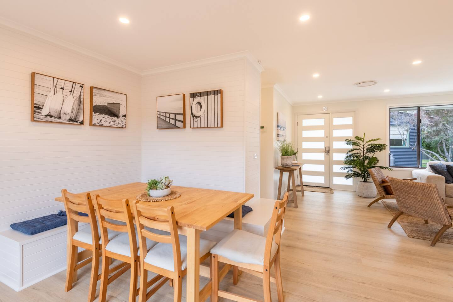 Welcome to Twenty Four at Beach, managed by The FAM Holiday Property Management in Jervis Bay, Beautifully styled, newly renovated & located just minutes from everything Jervis Bay has to offer, this beach house has it all. Fully set up for families, with everything from a highchair, stroller, changing mat & travel cot to play equipment in the backyard, whilst comfortable, stylish & relaxing for adults. Enjoy the multiple alfresco areas including an oversized sun deck & undercover dining area, cook up a storm in the large, extremely well equipped kitchen or simply relax on the comfy couch, all just moments from white sandy beaches. The shores of Collingwood & Orion beaches are just a few minutes stroll away, cafes, takeaways & shops in Vincentia a short walk, whilst Huskisson, Hyams Beach & the Booderee National Park are a few minutes by car. Twenty Four at Beach promises to be the perfect base for your next South Coast holiday. Best bits of Twenty Four at Beach - Newly renovated, freshly styled & furnished in a beautiful coastal theme - Large kitchen with breakfast bench, fully equipped with XL fridge/freezer, stove, oven, kettle, toaster, dishwasher, microwave, Nespresso coffee machine, sandwich press & large selection of utensils/cooking equipment - Spacious, sunny, fully fenced backyard with multiple dining/relaxing areas including large BBQ, undercover dining area, huge sun & outdoor couch, kids play equipment (slide and swings) and space to race bike or scooters on the drive - Modern bathroom with bath & separate shower. Additional toilet & sink in laundry - Open plan living area with comfy L shaped couch, TV and sound bar - Hot outdoor shower - Ducted air-conditioning throughout property - All linen & bath towels provided with a few spare beach towels - Complimentary local wine and chocolates for guests - Travel cot, highchair, stroller, toys, kids crockery/cutlery, folding change table & outdoor play area - Extremely detailed guest information booklet with extensive insider local tips to get the most from your visit to Jervis Bay Need to know - Sleeps max 8 adults and 3 children (11 total) in 4 bedrooms. 3 Queen rooms & 1 kids bunk room featuring Double/Single and Single/Single bunks. Double bed under bunk is suitable for adults but children only in single bunks please - Internal laundry with washer & separate dryer - Basic kitchen, toiletries & cleaning supplies provided - nbn Wifi & TV