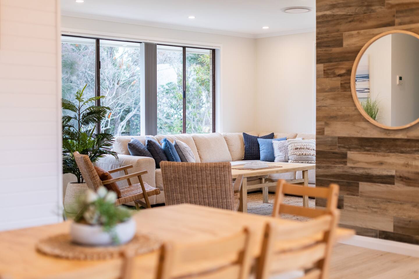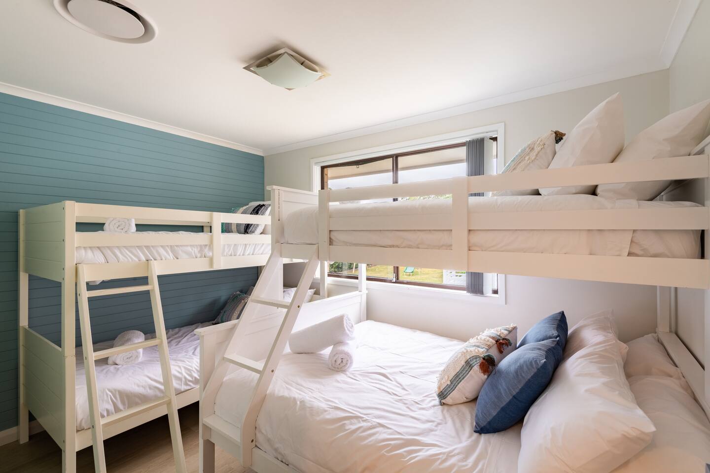Twenty Four @ Beach is a renovated, beautifully presented & fully equipped family beach house, a short stroll from the white sands of Jervis Bay, minutes to shops & cafes in Huskisson & Vincentia as well as beachfront walks & the Booderee National Park. Its coastal style, fresh furnishings & extensive alfresco areas promise a relaxing, comfy break for adults, whilst large backyard, play equipment, toys & bunks will keep kids happy for hours.
