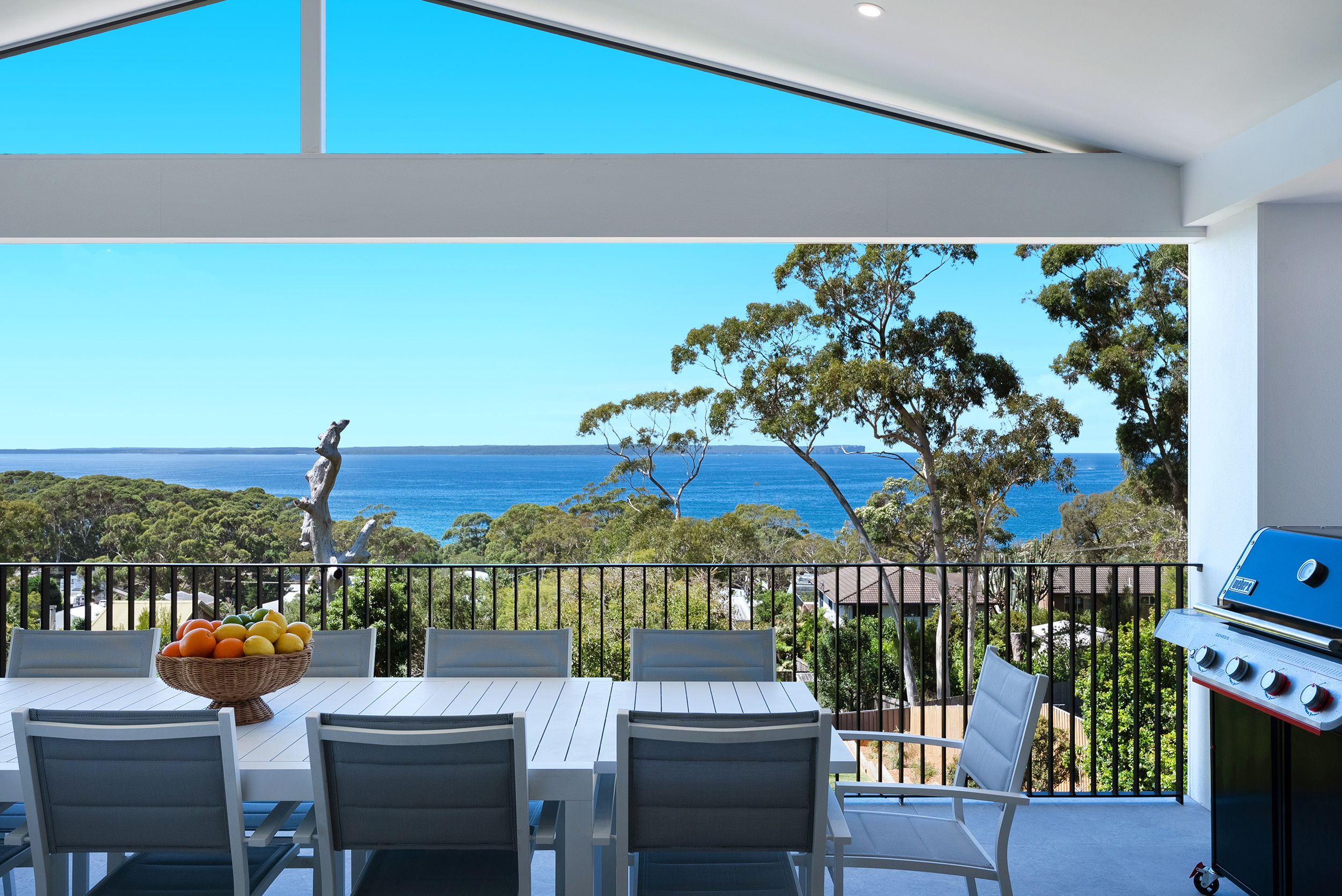 * LATE CHECK OUT OF 3PM AVAILABLE SUNDAY TO THURSDAY UNTIL SEPTEMBER 24TH 2026 EXCLUDING JULY SCHOOL HOLIDAYS. SUBJECT TO AVAILABILITY. PLEASE CONFIRM AT TIME OF BOOKING. * VUE is quite simply the house of your dreams! Fully renovated from head to toe, this incredible high-end property, managed by The FAM Holiday Property Management, has absolutely everything on offer for those looking for a truly luxurious, comfortable and stylish stay. Professionally designed, the interiors are impeccable, with natural tones and textures curated to create a luxurious yet relaxed, indulgent coastal style. Boasting some of the best views in Jervis Bay, VUE is perched above serene Blenheim Beach, where Jervis Bay National Park and the White Sands Walk meet the crystal-clear waters and white sands of the bay. From the moment you walk through the front door, you’ll be captivated by panoramic water views stretching all the way across the bay to the iconic Point Perpendicular cliffs. Seamlessly designed indoor and outdoor spaces maximise the view, allowing the ocean air and the feeling of being close to the water to relax you in seconds. Spread over two levels with 4 bedrooms, 3.5 bathrooms, 2 lounge rooms, a large dining area, a full luxury kitchen, a second kitchenette and dining space, as well as a pool table and garage, VUE offers ample space for large groups to enjoy both time together and apart. Upstairs, the main living space features a huge, comfortable lounge that will easily seat everyone for a movie night on the 75 inch TV, while the ambient fireplace sets the tone for cosy afternoons. The window bench seat overlooking the treetops and water promises the perfect spot to relax with a book. The large stone benchtop kitchen, complete with double oven, induction stove and luxury appliances, is equipped for you to cook up any meal as you come together to enjoy VUE. Downstairs, as well as a large second lounge with 55 inch TV, you can enjoy the pool table room (with third TV) or the second kitchenette with an additional French door fridge—perfect for stocking up for special occasions or setting up your own cocktail station. A good night’s sleep is guaranteed with two king rooms, including a large luxury main suite enjoying incredible water views, balcony, walk-in robe and ensuite, plus two further queen rooms (all with built-in robes) - with AC, ceiling fans and built in storage. All 3.5 bathrooms offer absolute luxury with rain shower heads, including a double walk-in shower in the upstairs main bathroom and a large bathtub in the downstairs main bathroom. The choice of tiles, colours, textures and tapware brings VUE’s bathrooms to a magazine-worthy level of style, while fluffy white towels and natural toiletries add to the feeling of indulgence. Set on a large 1000 square metre block, VUE’s landscaped gardens provide the perfect backdrop to this spectacular home. Enjoy games of cricket or tag on the spacious back lawn before toasting marshmallows under the stars around the fire pit. As well as the upstairs undercover balcony with an outdoor dining table overlooking the water, BBQ and two lounge areas, downstairs there is a further balcony with dining and lounge spaces. It’s easy for large groups to spread out and enjoy their own space at VUE before coming together when it counts. Situated in the heart of Vincentia, VUE is just a short stroll to peaceful Blenheim Beach, where bushland meets the beach and backs onto Jervis Bay National Park. You’ll feel a million miles away from the hustle and bustle of the world, with this beach looking more like a remote tropical paradise. Keep an eye out for dolphins or, in winter, whales visiting the bay during their annual migration. You may also spot sea eagles, echidnas, kangaroos, wallabies and sometimes even resident fur seals. At Blenheim Beach you can also join the famous White Sands Walk, which traces the shoreline to Hyams Beach, taking in beautiful secluded beaches and bushland. Alternatively, walk north all the way to Huskisson without leaving the water’s edge. The northern path is also easily accessible via a concreted walkway running from Vincentia to Huskisson—perfect for bikes, prams and scooters. Local shops, cafés and other amenities in the centre of Vincentia are just a couple of minutes’ drive or an easy walk from VUE. Bustling Huskisson, with its boutique shops, cafés, breweries and whale and dolphin watching tours, is only a 5-minute drive away. Booderee National Park and Hyams Beach are also just 10 minutes away. * Best bits of VUE * - Incredible panoramic Jervis Bay water views, including mesmerising sunrises over the Bay & Point Perpendicular - Wake to the sound of the waves, spot native birds or in winter keep an eye out for migrating whales coming into the Bay from VUE - Absolute luxury with modern designer finishes and furnishings, plus stunning interior design and styling - Indulgent main suite with walk-in robe and ensuite, a second king room, two queen rooms - Main living space with incredible views and indoor–outdoor living opening onto a large undercover deck with dining area, lounges and gas BBQ - 3.5 luxury bathrooms with high-end finishes and design - Ambient indoor fireplace and outdoor fire pit - Large landscaped gardens and grassy lawn - Luxury fully equipped kitchen with induction stove, double oven, two French door fridges, microwave, dishwasher and Nespresso coffee machine - Open-plan living with space for everyone to relax, plus second lounge, kitchenette, pool room and additional dining space - Three smart TVs, Sonos sound system and pool table - Ducted and split system air conditioning throughout the entire house, additional ceiling fans - Central location with easy access to the beach and local amenities - Tea, coffee, basic pantry supplies, natural cleaning products and luxury Two Good Co toiletries provided - Local barista coffee voucher, handmade chocolates and Silos Estate wine for every booking